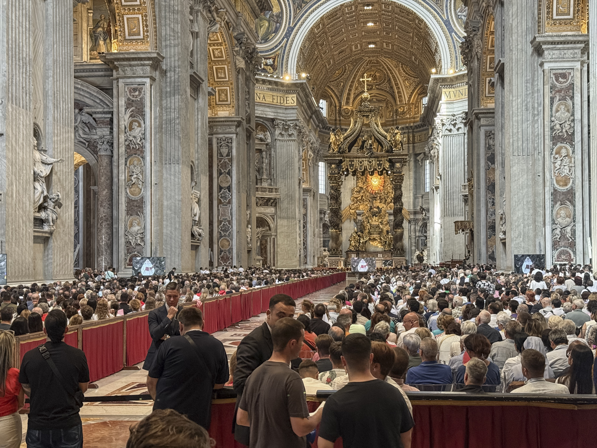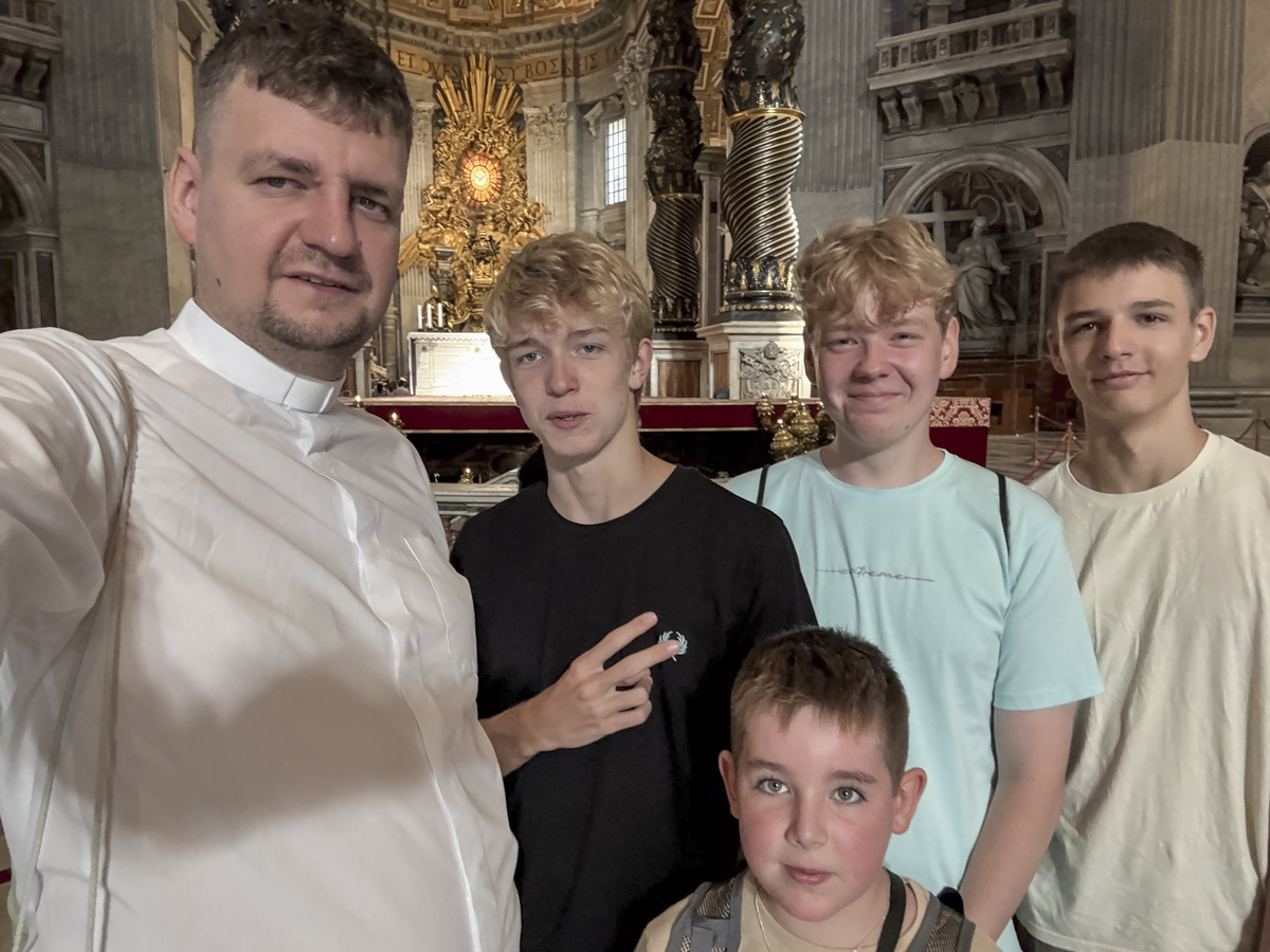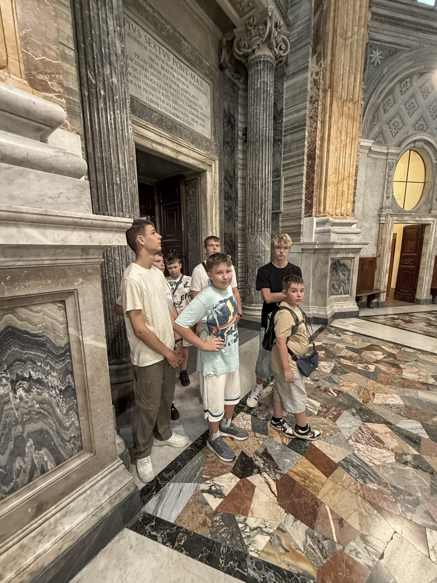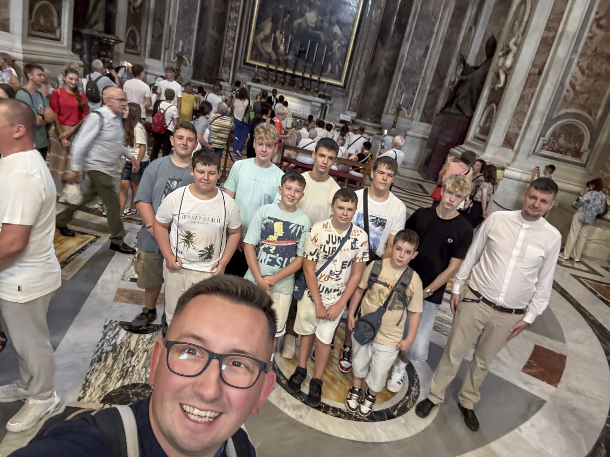 Największym wydarzeniem dla naszej grupy była środowa audiencja papieska, podczas której mieliśmy okazję zobaczyć papieża Leona XIV z bardzo bliska, a niektórzy z nas nawet podali mu rękę. Drugim ważnym momentem była msza święta w języku polskim przy grobie św. Jana Pawła II pośród wielu pielgrzymów z Polski. Po zakończonej mszy św. udało się nam wejść na chwilę do watykańskiej zakrystii, by podpatrzeć jak wygląda miejsce przygotowań celebracji papieskich.