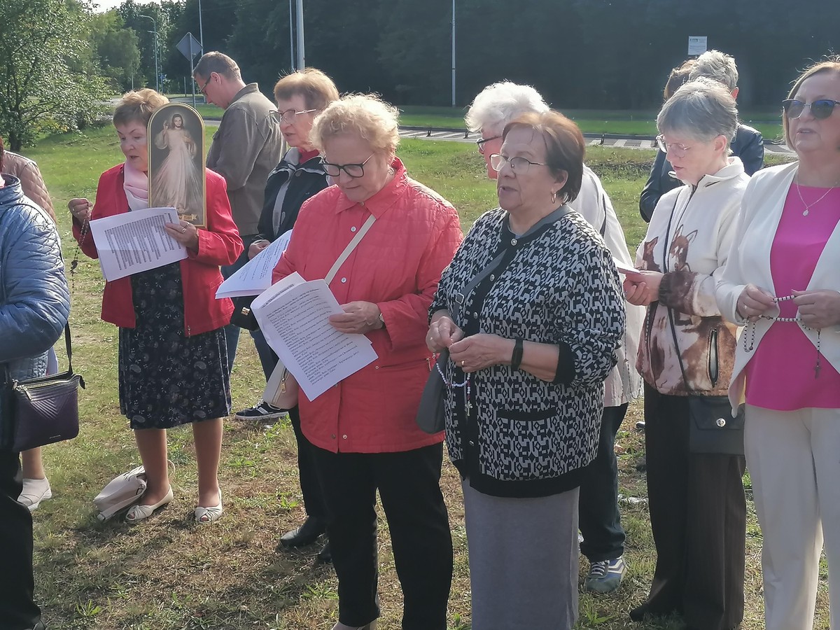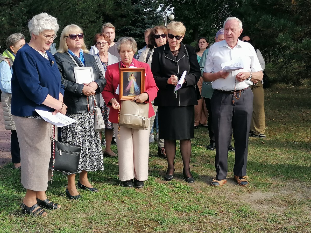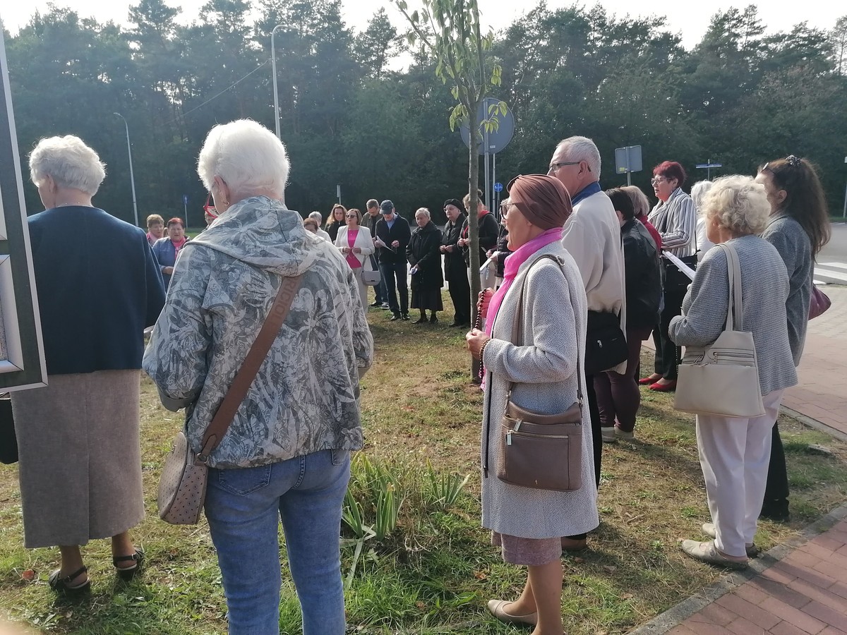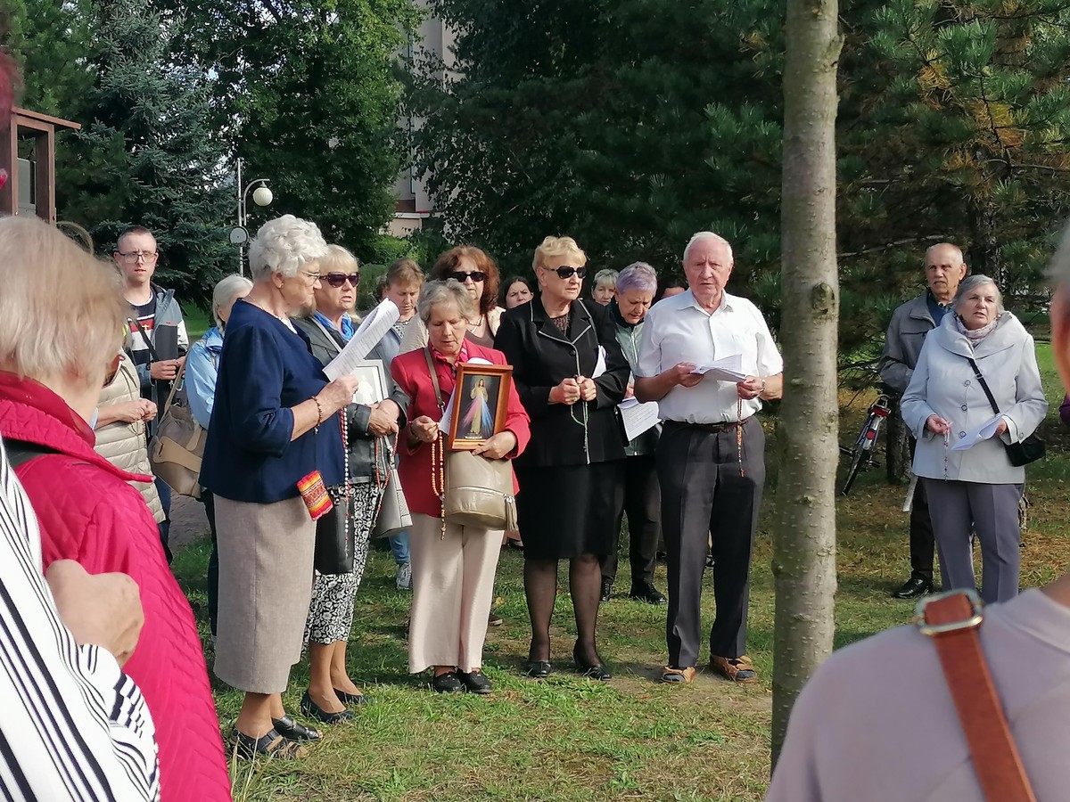 W tym roku już dziewiąty raz, w rocznicę beatyfikacji ks. Michała Sopoćki spotkaliśmy się 28 września o godzinie 15-tej na Osiedlu Piasty na drodze prowadzącej do kościoła od strony skrzyżowania Alei Ignacego Lisa i Bolesława Krzywoustego, aby wspólnie łączyć się z całym światem na odmawianiu koronki do Miłosierdzia Bożego. Kto tylko mógł zabrał z domu ze sobą obraz Jezusa Miłosiernego, by przypomniał, jak ważny jest Jezus Miłosierny dla świata całego i że tylko w miłosierdziu Bożym człowiek znajdzie oparcie i zbawienie. Zaczynaliśmy w 2017 roku od małej grupki kilkuosobowej. Teraz było nas już ok. 60 osób. Miejmy nadzieję, że każdego roku nas będzie coraz więcej, aby ta „Boża Iskra” szerzyła się coraz bardziej.