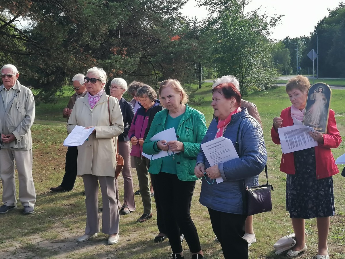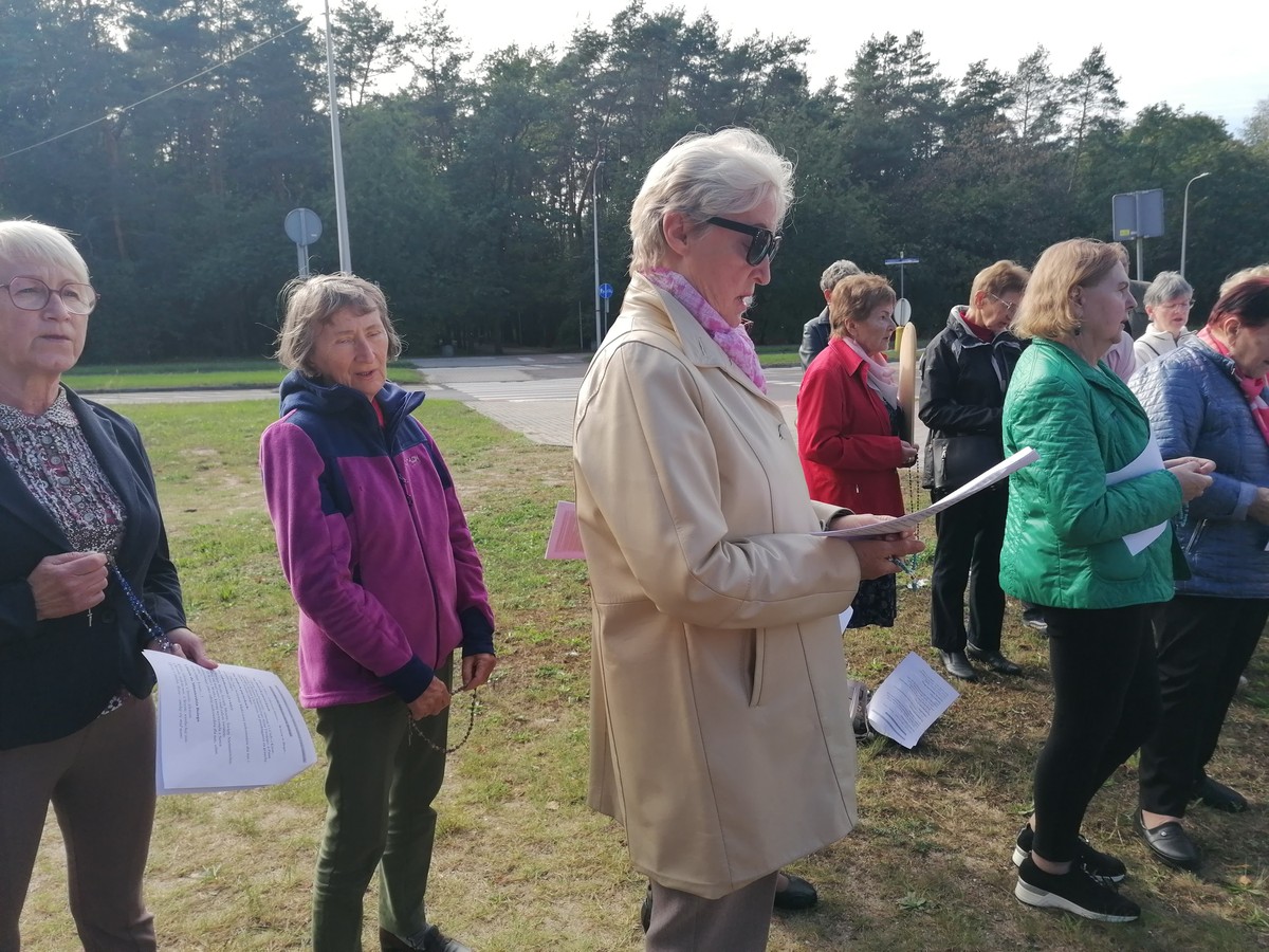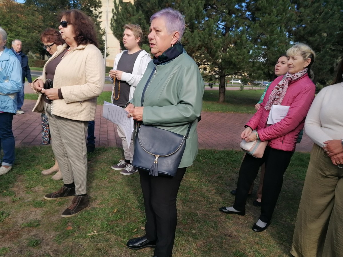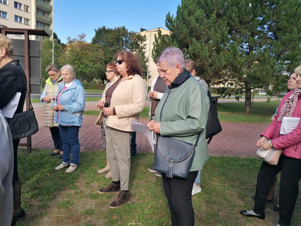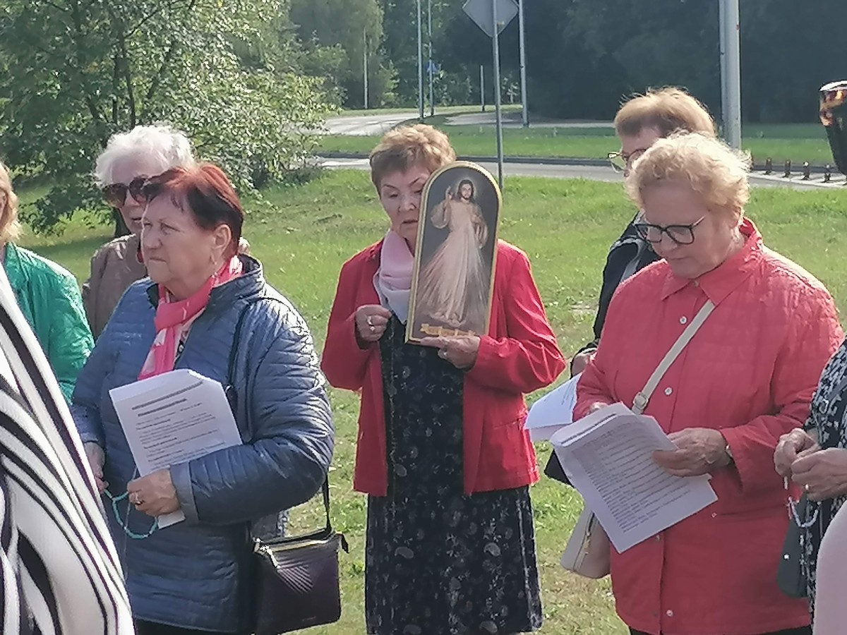 W tym roku już dziewiąty raz, w rocznicę beatyfikacji ks. Michała Sopoćki spotkaliśmy się 28 września o godzinie 15-tej na Osiedlu Piasty na drodze prowadzącej do kościoła od strony skrzyżowania Alei Ignacego Lisa i Bolesława Krzywoustego, aby wspólnie łączyć się z całym światem na odmawianiu koronki do Miłosierdzia Bożego. Kto tylko mógł zabrał z domu ze sobą obraz Jezusa Miłosiernego, by przypomniał, jak ważny jest Jezus Miłosierny dla świata całego i że tylko w miłosierdziu Bożym człowiek znajdzie oparcie i zbawienie. Zaczynaliśmy w 2017 roku od małej grupki kilkuosobowej. Teraz było nas już ok. 60 osób. Miejmy nadzieję, że każdego roku nas będzie coraz więcej, aby ta „Boża Iskra” szerzyła się coraz bardziej.