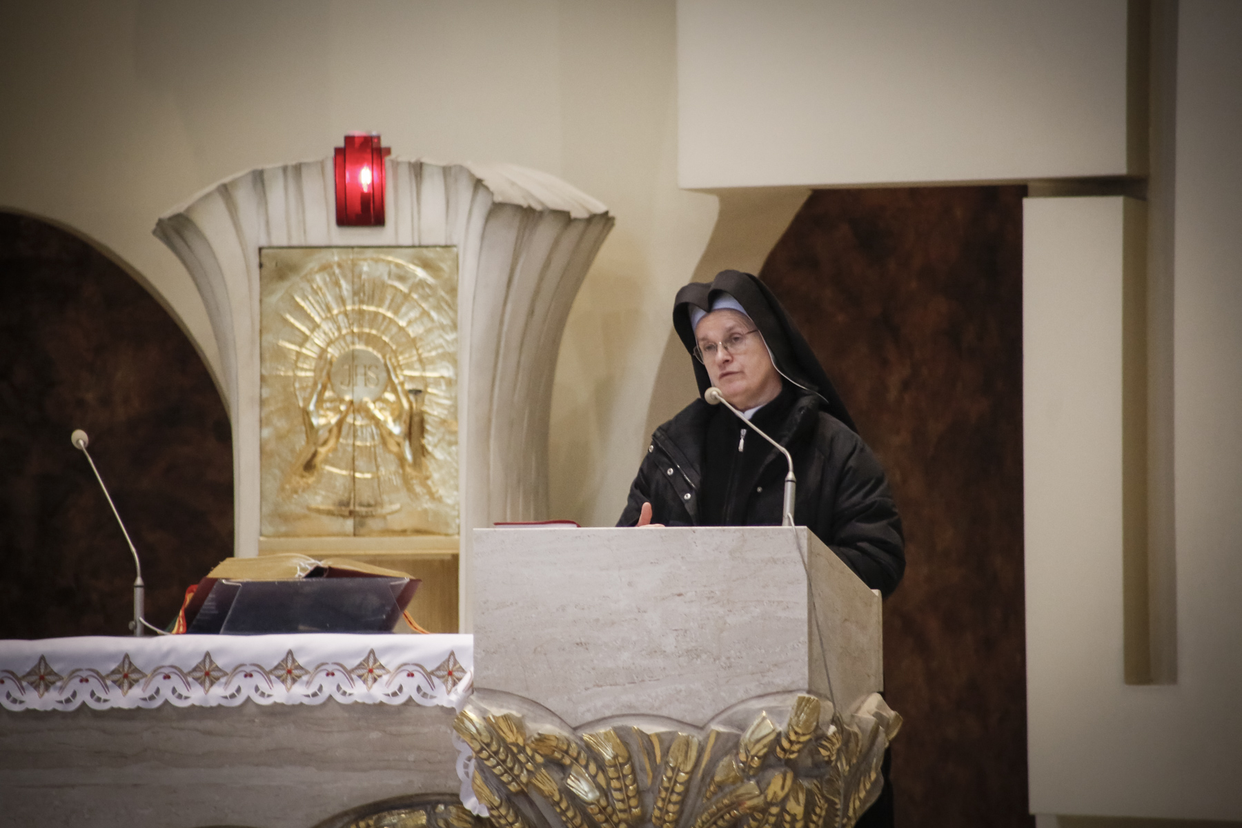Ta niedziela to również spotkanie z siostrą Krzysztofą, która skierowała dzisiaj do nas słowo przybliżając nam troski i potrzeby obszaru Betlejem i Jerozolimy. Po Mszach można było również nabyć pamiątki wykonane z drzewa oliwnego, których dochód jest przeznaczony na cele wsparcia katolików żyjących na terenie Izraela.