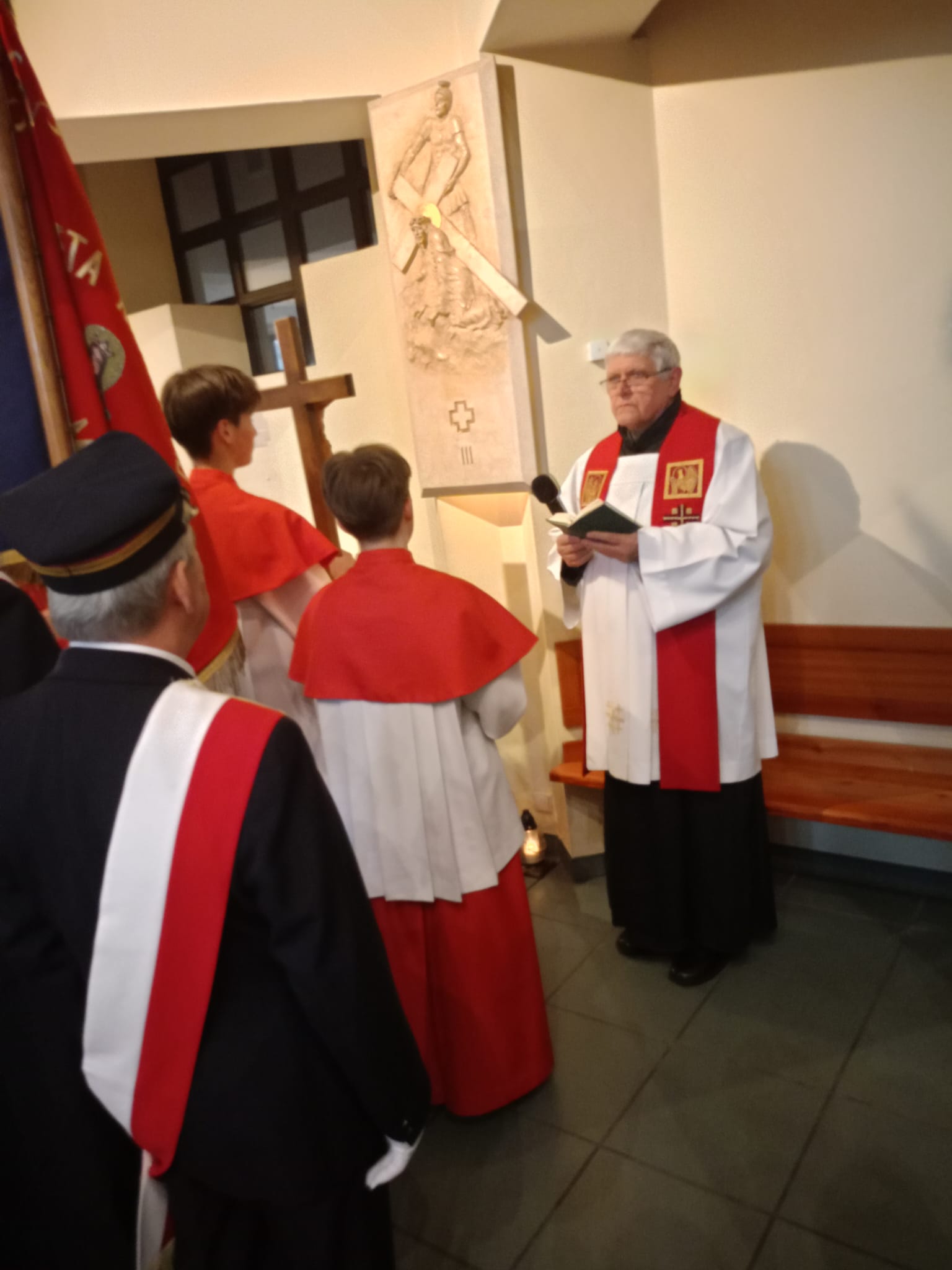 Od czasu kiedy w czwartek 18 lutego 2021r. o. Wiktor Lata, nasz parafianin, dokonał erygowania i poświęcenia Drogi Krzyżowej w naszym kościele, a kolejarze mieli swój udział w w jej odsłonięciu, każdego roku prowadzimy jako Katolickie Stowarzyszenie Kolejarzy Polskich w naszym kościele Drogę Krzyżową. W tym roku w tym nabożeństwie uczestniczyliśmy 13 marca o godz 17.15. Tradycyjnie kolejarze, którzy jeszcze mają mundury udział w tym nabożeństwie biorą w mundurach. Choć mundury te są już mocno wysłużone to jednak podkreślają rangę tego nabożeństwa. Zawsze w ten dzień zapalamy znicze przed poszczególnymi stacjami Drogi Krzyżowej, które pozostawiamy tam do ostatecznego wypalenia. Także zawsze towarzyszy nam sztandar kolejowy, o który od zarania powołania koła KSKP pieczołowicie dbamy, a którego zabieramy także na pogrzeby bliskich nam zmarłych kolejrzy, jak również na inne uroczystości patriotyczne. Ksiądz Edward, który jest naszym duszpasterzem koła wspólnie z nami modli się wokół kościoła przy każdej stacji, a jedna z naszych koleżanek od ołtarza czyta rozważania poszególnych stacji. Rozważania te rok rocznie są inne.