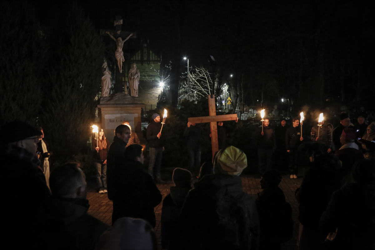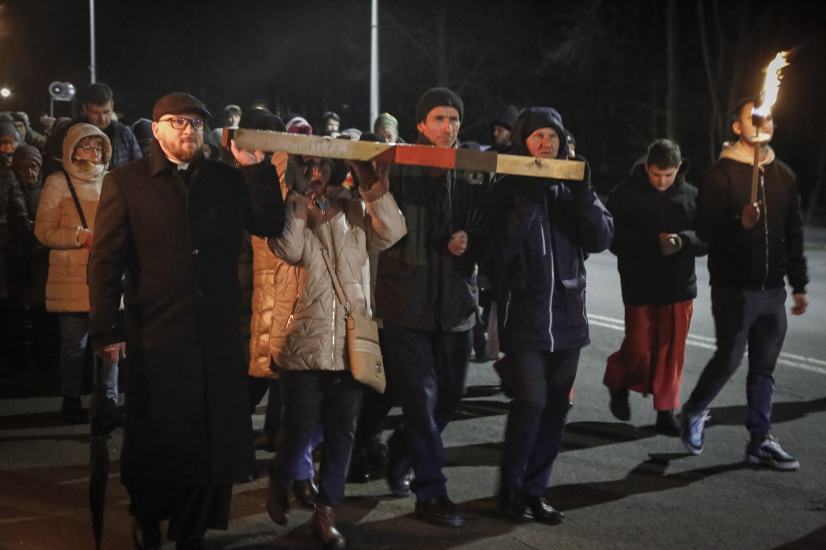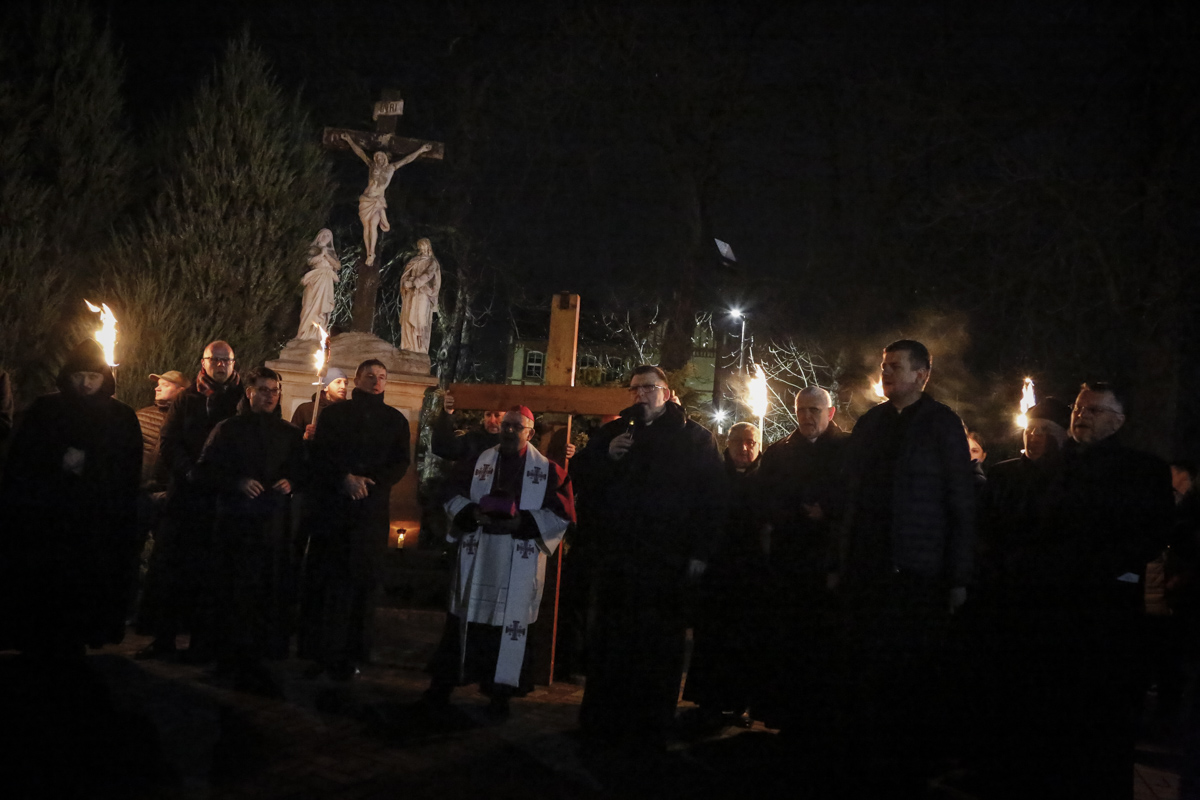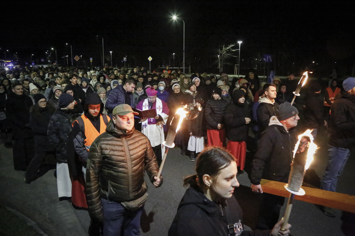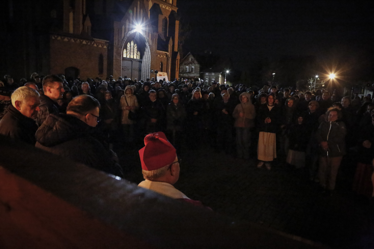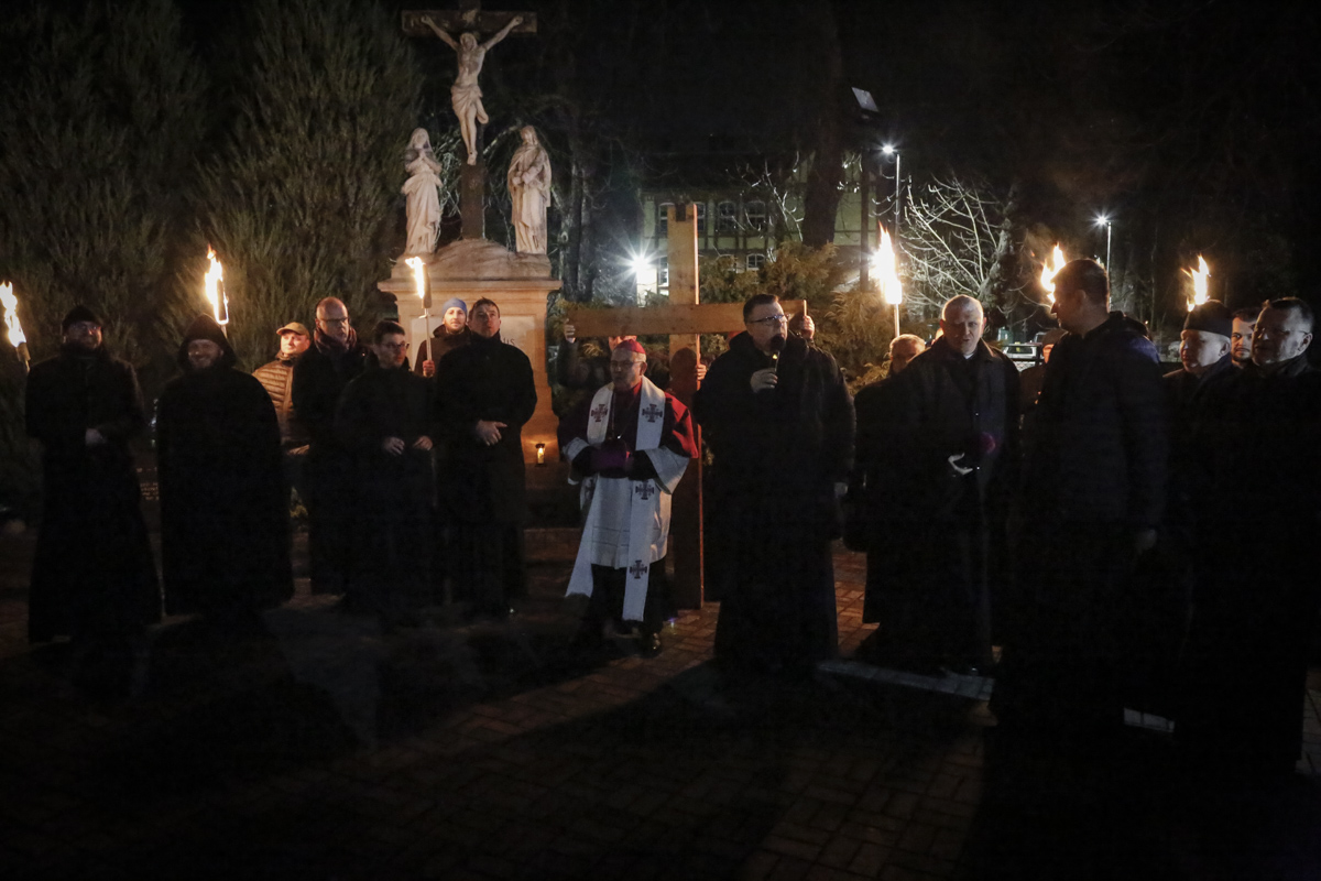 Dzisiejszy piątkowy wieczór był czasem, w którym mogliśmy dekanalnie przeżyć nabożeństwo Drogi Krzyżowej oraz razem uczestniczyć we Mszy Świętej sprawowanej przez naszego biskupa pomocniczego Rudolfa Pierskały w koncelebrze z księżmi z całego dekanatu. Podczas Mszy Świętej bp Rudolf skierował do nas słowa, które było wstępem do nabożeństwa Drogi Krzyżowej prowadzonego wśród ulic naszego miasta. W tym roku przeszliśmy z naszej parafii do parafii św. Mikołaja zatrzymując się przy stacjach Drogi Krzyżowej, która w 2007 została zatwierdzona przez papieża Benedykta XVI, a jej autorem był kardynał Gianfranco Ravasi. Stacje, które rozważaliśmy, pochodzą wyłącznie z Ewangelii. Każde wydarzenie tej drogi jest zapisane w Piśmie Świętym. Nie ma tu scen dopowiedzianych przez tradycję ani obrazów, które zrodziła pobożność kolejnych pokoleń. Jest tylko Ewangelia. To tak zwana biblijna Droga Krzyżowa. Przeszliśmy razem drogę Jezusa. Od ogrodu oliwnego aż po ciszę grobu. Ale ta droga nie kończy się tutaj. Bo krzyż nie jest ostatnim słowem Boga. Ostatnim słowem jest życie. "Kiedy wrócimy do swoich domów, do codziennych spraw, do zwyczajnych obowiązków, ta droga krzyżowa może zostać z nami w inny sposób. Może nauczy nas większej wrażliwości na ludzi, których spotykamy każdego dnia. Na tych, którzy niosą swoje krzyże w milczeniu. Na tych, którzy potrzebują pomocy. Na tych, którzy czekają na jedno dobre słowo. Bo droga Jezusa prowadzi przez ludzkie życie. Przez nasze ulice. Przez nasze domy. Przez nasze serca."