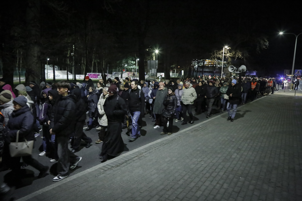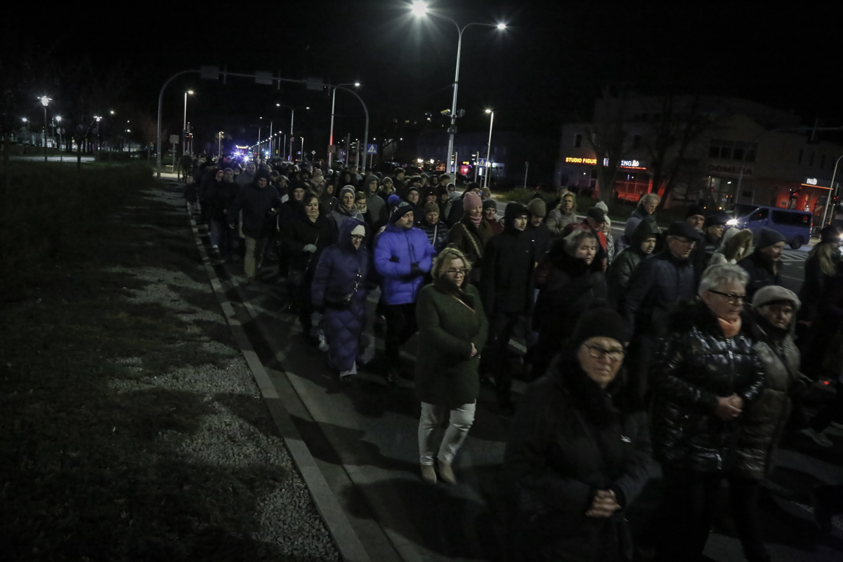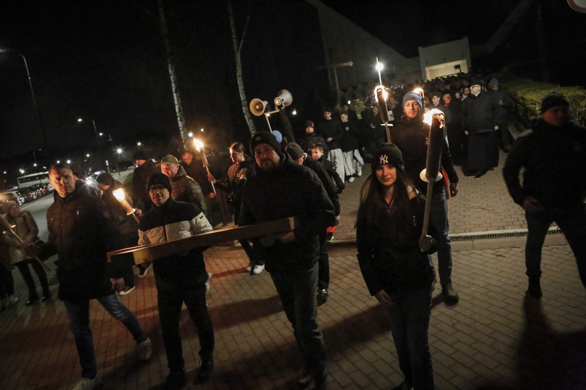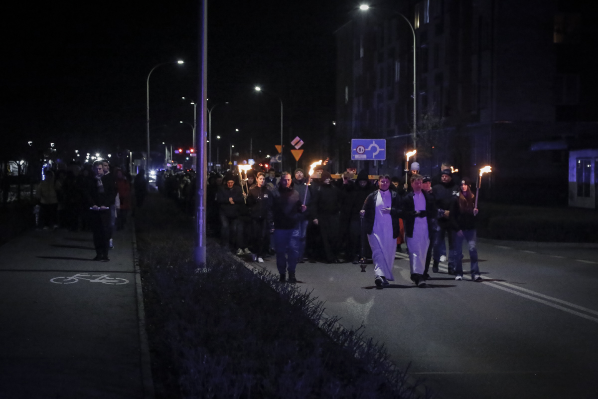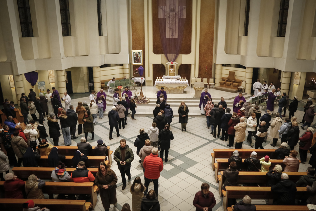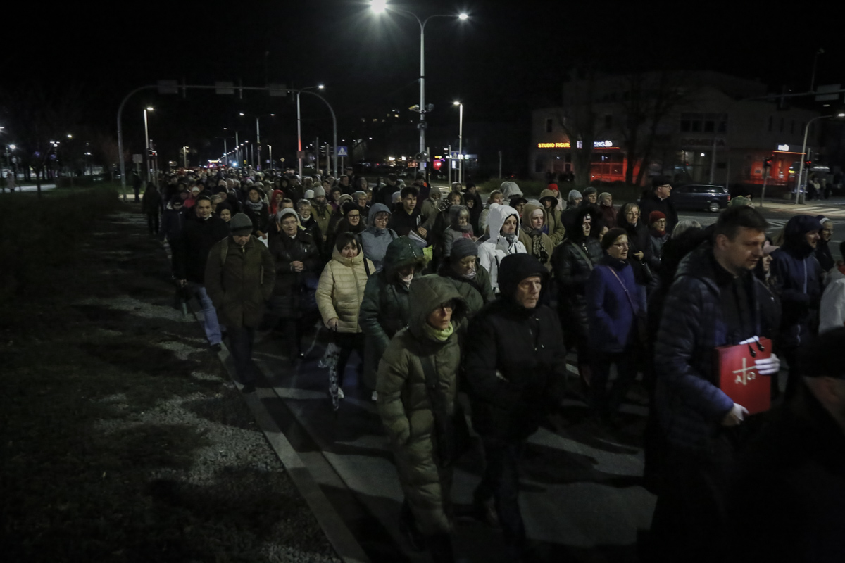 Dzisiejszy piątkowy wieczór był czasem, w którym mogliśmy dekanalnie przeżyć nabożeństwo Drogi Krzyżowej oraz razem uczestniczyć we Mszy Świętej sprawowanej przez naszego biskupa pomocniczego Rudolfa Pierskały w koncelebrze z księżmi z całego dekanatu. Podczas Mszy Świętej bp Rudolf skierował do nas słowa, które było wstępem do nabożeństwa Drogi Krzyżowej prowadzonego wśród ulic naszego miasta. W tym roku przeszliśmy z naszej parafii do parafii św. Mikołaja zatrzymując się przy stacjach Drogi Krzyżowej, która w 2007 została zatwierdzona przez papieża Benedykta XVI, a jej autorem był kardynał Gianfranco Ravasi. Stacje, które rozważaliśmy, pochodzą wyłącznie z Ewangelii. Każde wydarzenie tej drogi jest zapisane w Piśmie Świętym. Nie ma tu scen dopowiedzianych przez tradycję ani obrazów, które zrodziła pobożność kolejnych pokoleń. Jest tylko Ewangelia. To tak zwana biblijna Droga Krzyżowa. Przeszliśmy razem drogę Jezusa. Od ogrodu oliwnego aż po ciszę grobu. Ale ta droga nie kończy się tutaj. Bo krzyż nie jest ostatnim słowem Boga. Ostatnim słowem jest życie. "Kiedy wrócimy do swoich domów, do codziennych spraw, do zwyczajnych obowiązków, ta droga krzyżowa może zostać z nami w inny sposób. Może nauczy nas większej wrażliwości na ludzi, których spotykamy każdego dnia. Na tych, którzy niosą swoje krzyże w milczeniu. Na tych, którzy potrzebują pomocy. Na tych, którzy czekają na jedno dobre słowo. Bo droga Jezusa prowadzi przez ludzkie życie. Przez nasze ulice. Przez nasze domy. Przez nasze serca."