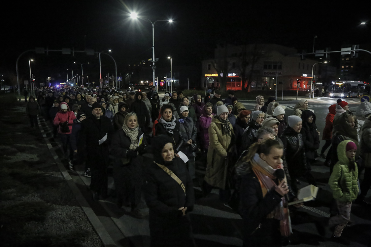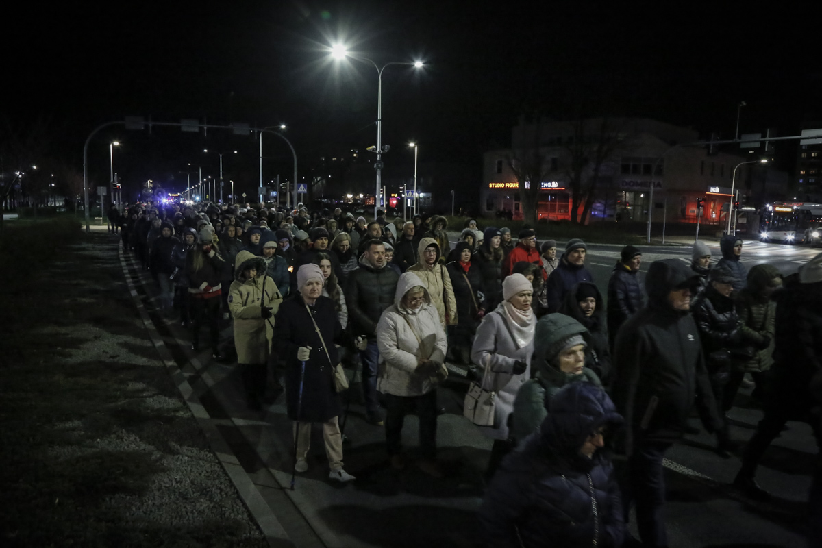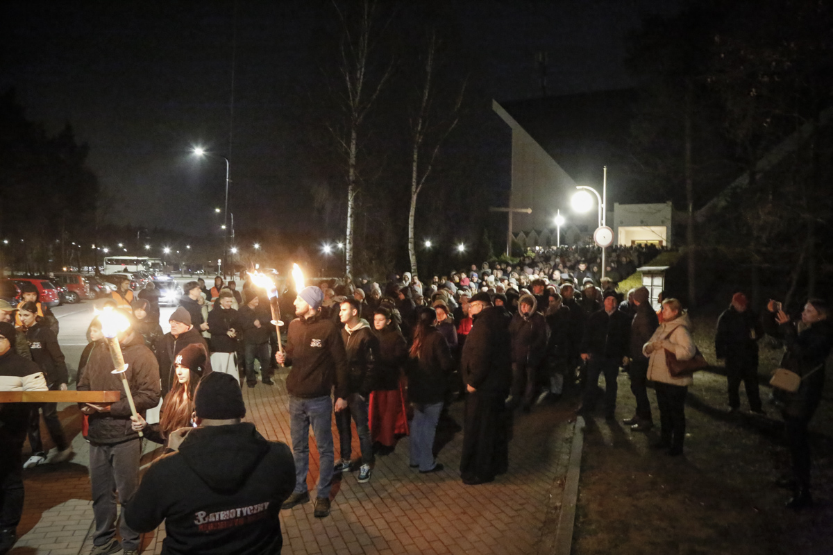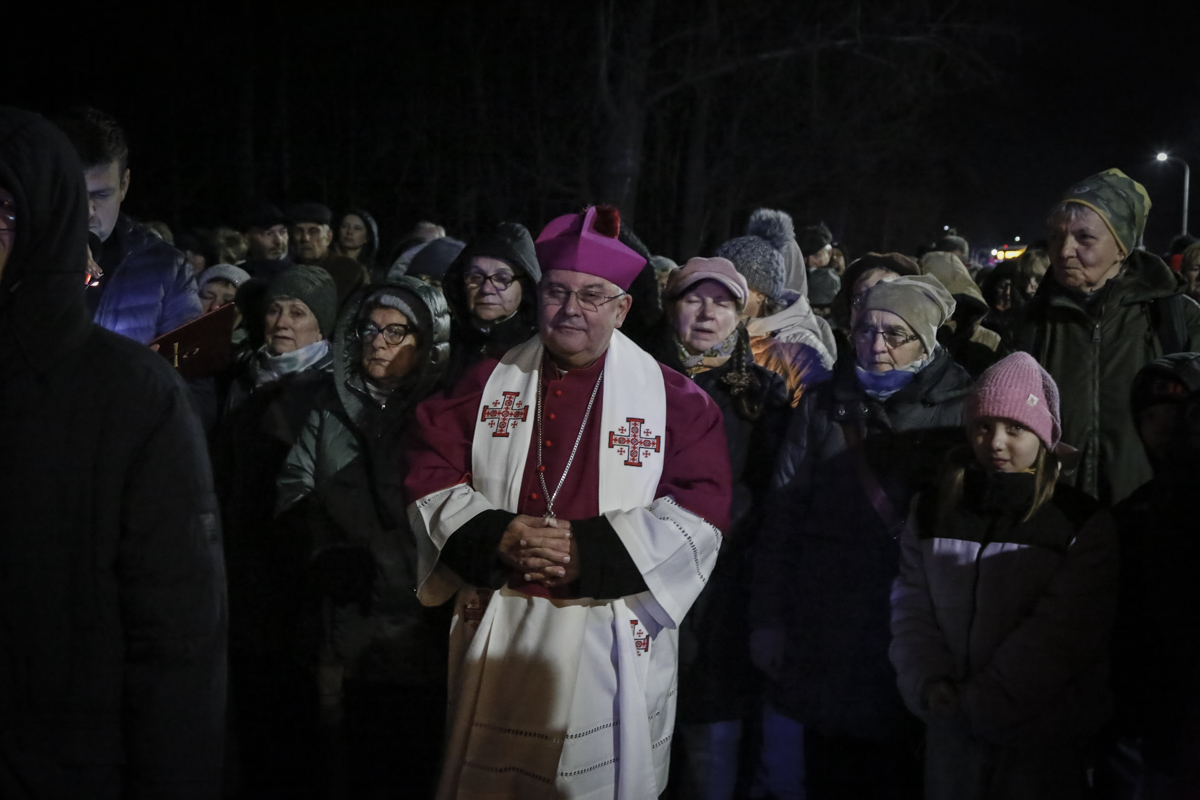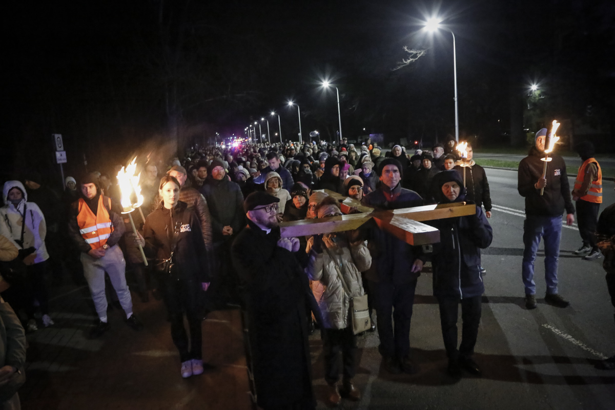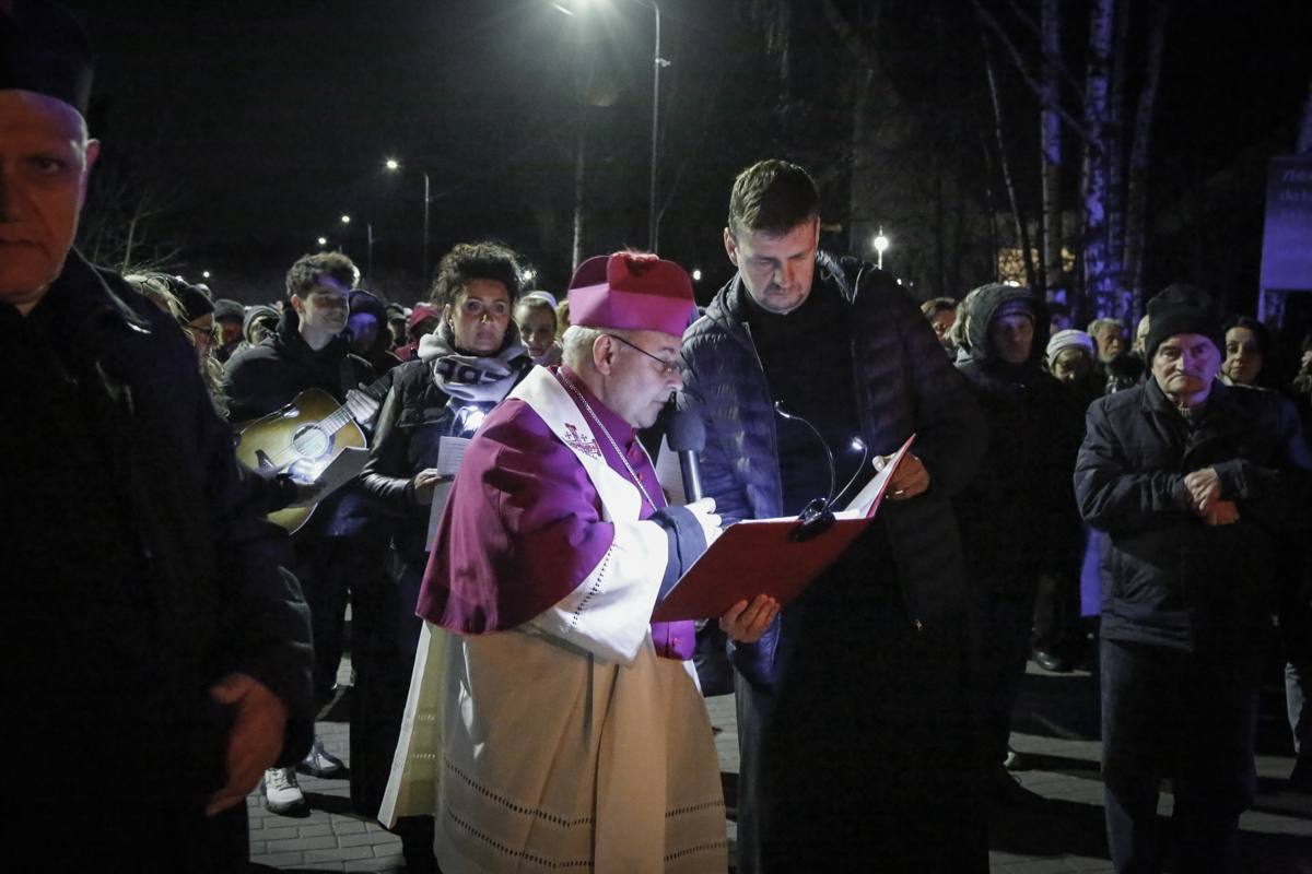 Dzisiejszy piątkowy wieczór był czasem, w którym mogliśmy dekanalnie przeżyć nabożeństwo Drogi Krzyżowej oraz razem uczestniczyć we Mszy Świętej sprawowanej przez naszego biskupa pomocniczego Rudolfa Pierskały w koncelebrze z księżmi z całego dekanatu. Podczas Mszy Świętej bp Rudolf skierował do nas słowa, które było wstępem do nabożeństwa Drogi Krzyżowej prowadzonego wśród ulic naszego miasta. W tym roku przeszliśmy z naszej parafii do parafii św. Mikołaja zatrzymując się przy stacjach Drogi Krzyżowej, która w 2007 została zatwierdzona przez papieża Benedykta XVI, a jej autorem był kardynał Gianfranco Ravasi. Stacje, które rozważaliśmy, pochodzą wyłącznie z Ewangelii. Każde wydarzenie tej drogi jest zapisane w Piśmie Świętym. Nie ma tu scen dopowiedzianych przez tradycję ani obrazów, które zrodziła pobożność kolejnych pokoleń. Jest tylko Ewangelia. To tak zwana biblijna Droga Krzyżowa. Przeszliśmy razem drogę Jezusa. Od ogrodu oliwnego aż po ciszę grobu. Ale ta droga nie kończy się tutaj. Bo krzyż nie jest ostatnim słowem Boga. Ostatnim słowem jest życie. "Kiedy wrócimy do swoich domów, do codziennych spraw, do zwyczajnych obowiązków, ta droga krzyżowa może zostać z nami w inny sposób. Może nauczy nas większej wrażliwości na ludzi, których spotykamy każdego dnia. Na tych, którzy niosą swoje krzyże w milczeniu. Na tych, którzy potrzebują pomocy. Na tych, którzy czekają na jedno dobre słowo. Bo droga Jezusa prowadzi przez ludzkie życie. Przez nasze ulice. Przez nasze domy. Przez nasze serca."