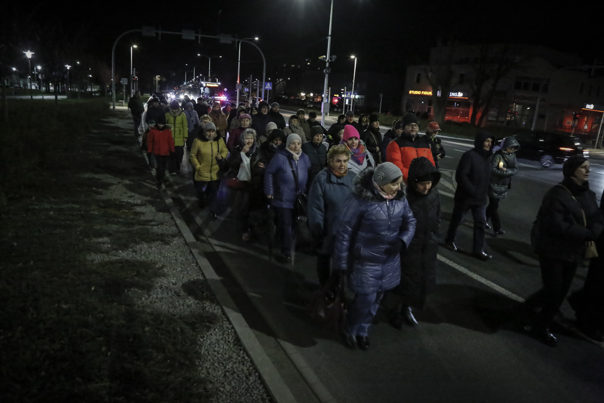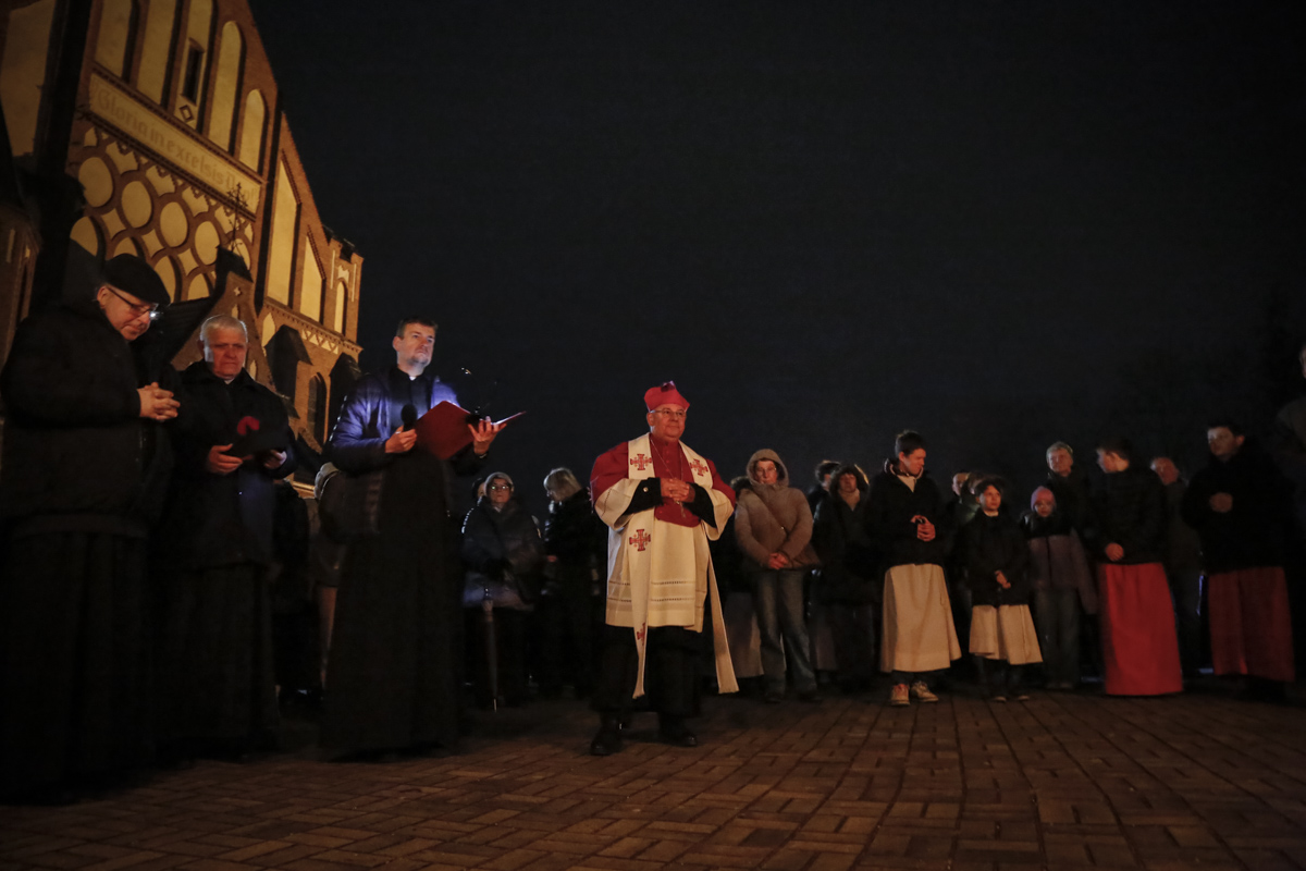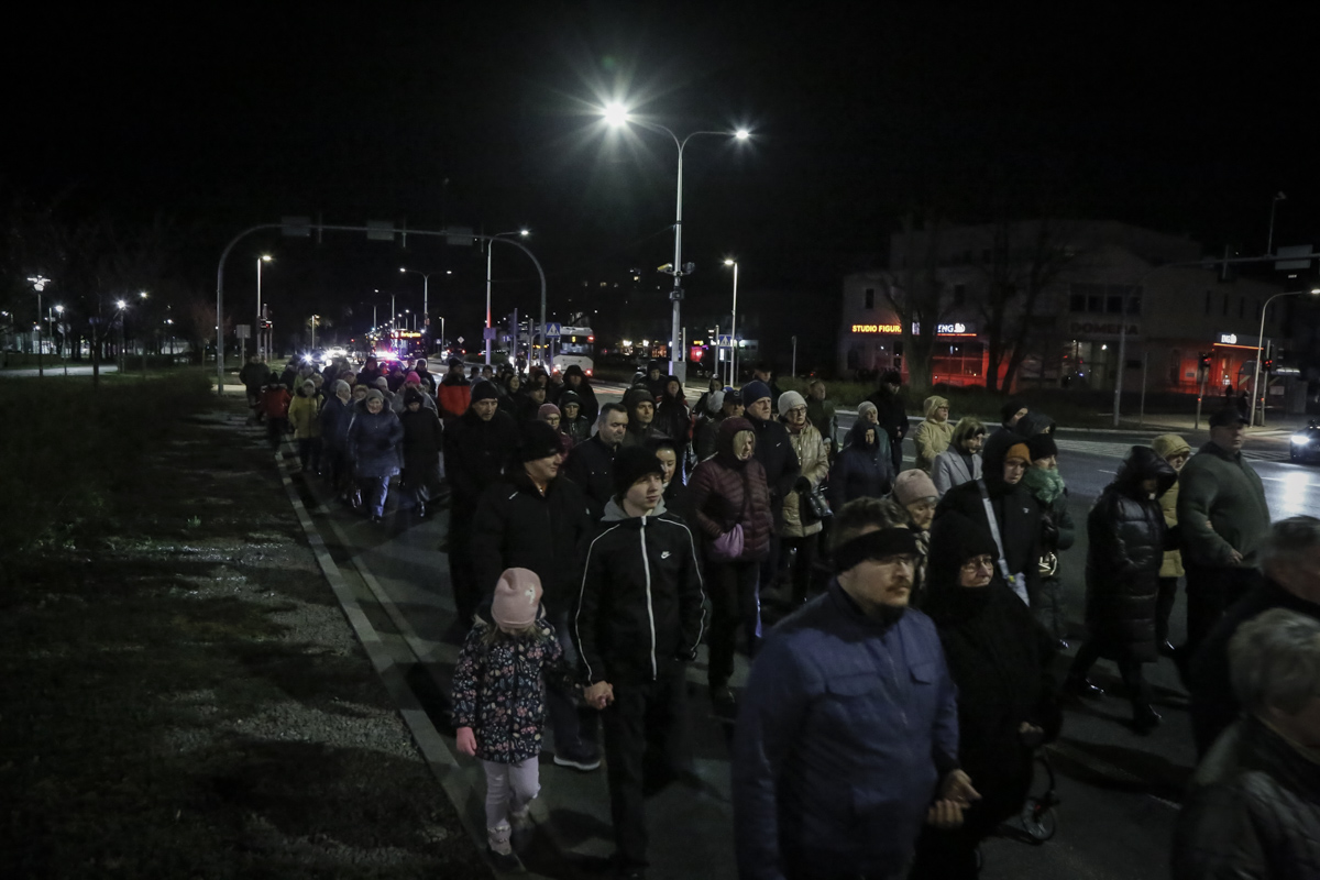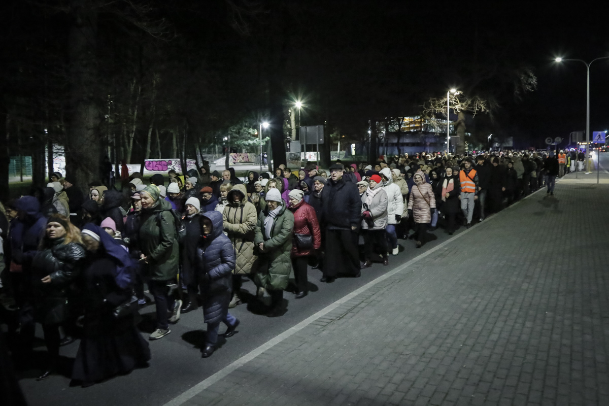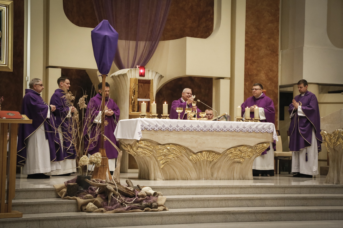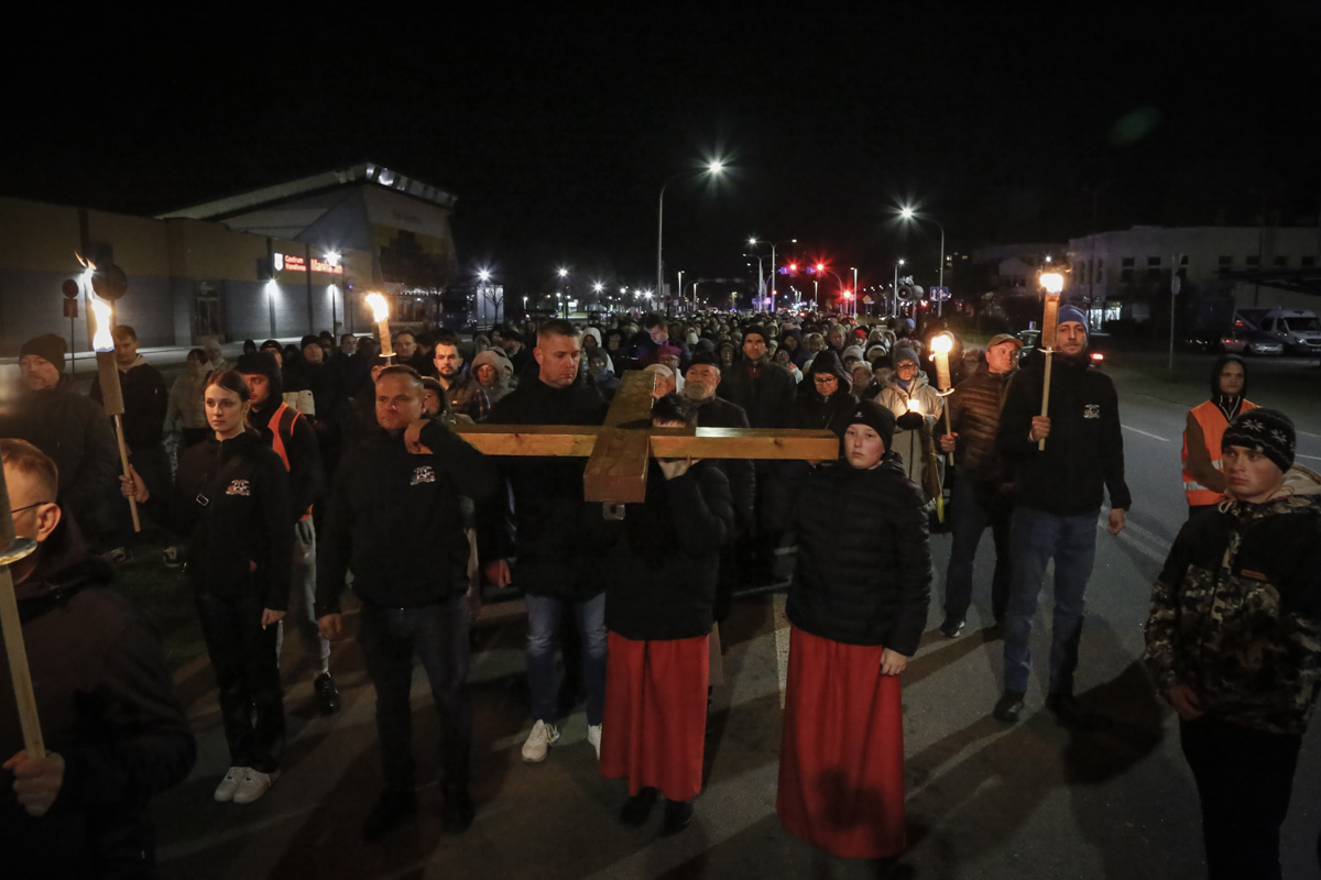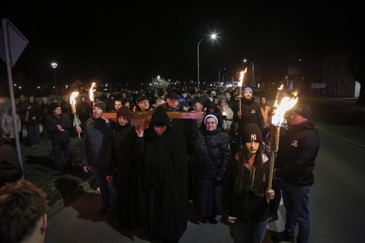 Dzisiejszy piątkowy wieczór był czasem, w którym mogliśmy dekanalnie przeżyć nabożeństwo Drogi Krzyżowej oraz razem uczestniczyć we Mszy Świętej sprawowanej przez naszego biskupa pomocniczego Rudolfa Pierskały w koncelebrze z księżmi z całego dekanatu. Podczas Mszy Świętej bp Rudolf skierował do nas słowa, które było wstępem do nabożeństwa Drogi Krzyżowej prowadzonego wśród ulic naszego miasta. W tym roku przeszliśmy z naszej parafii do parafii św. Mikołaja zatrzymując się przy stacjach Drogi Krzyżowej, która w 2007 została zatwierdzona przez papieża Benedykta XVI, a jej autorem był kardynał Gianfranco Ravasi. Stacje, które rozważaliśmy, pochodzą wyłącznie z Ewangelii. Każde wydarzenie tej drogi jest zapisane w Piśmie Świętym. Nie ma tu scen dopowiedzianych przez tradycję ani obrazów, które zrodziła pobożność kolejnych pokoleń. Jest tylko Ewangelia. To tak zwana biblijna Droga Krzyżowa. Przeszliśmy razem drogę Jezusa. Od ogrodu oliwnego aż po ciszę grobu. Ale ta droga nie kończy się tutaj. Bo krzyż nie jest ostatnim słowem Boga. Ostatnim słowem jest życie. "Kiedy wrócimy do swoich domów, do codziennych spraw, do zwyczajnych obowiązków, ta droga krzyżowa może zostać z nami w inny sposób. Może nauczy nas większej wrażliwości na ludzi, których spotykamy każdego dnia. Na tych, którzy niosą swoje krzyże w milczeniu. Na tych, którzy potrzebują pomocy. Na tych, którzy czekają na jedno dobre słowo. Bo droga Jezusa prowadzi przez ludzkie życie. Przez nasze ulice. Przez nasze domy. Przez nasze serca."