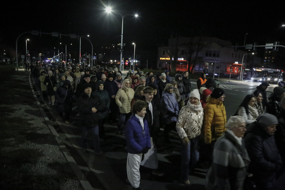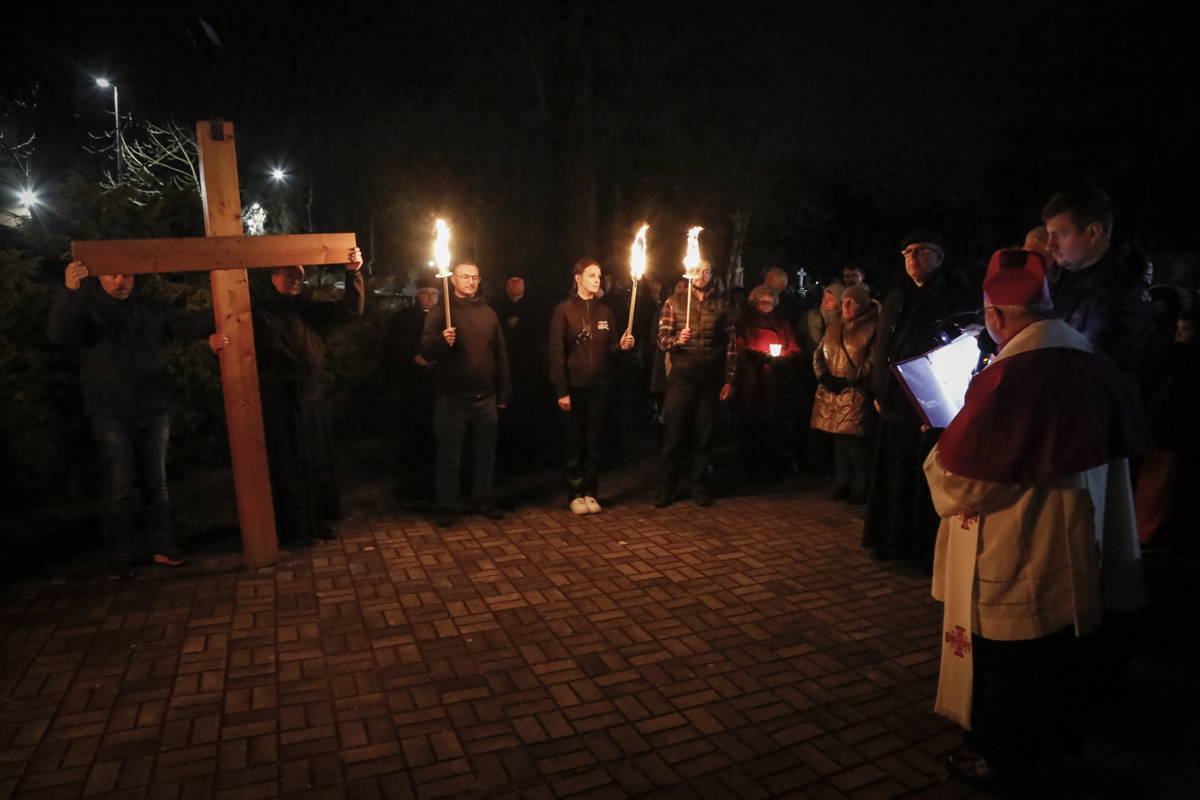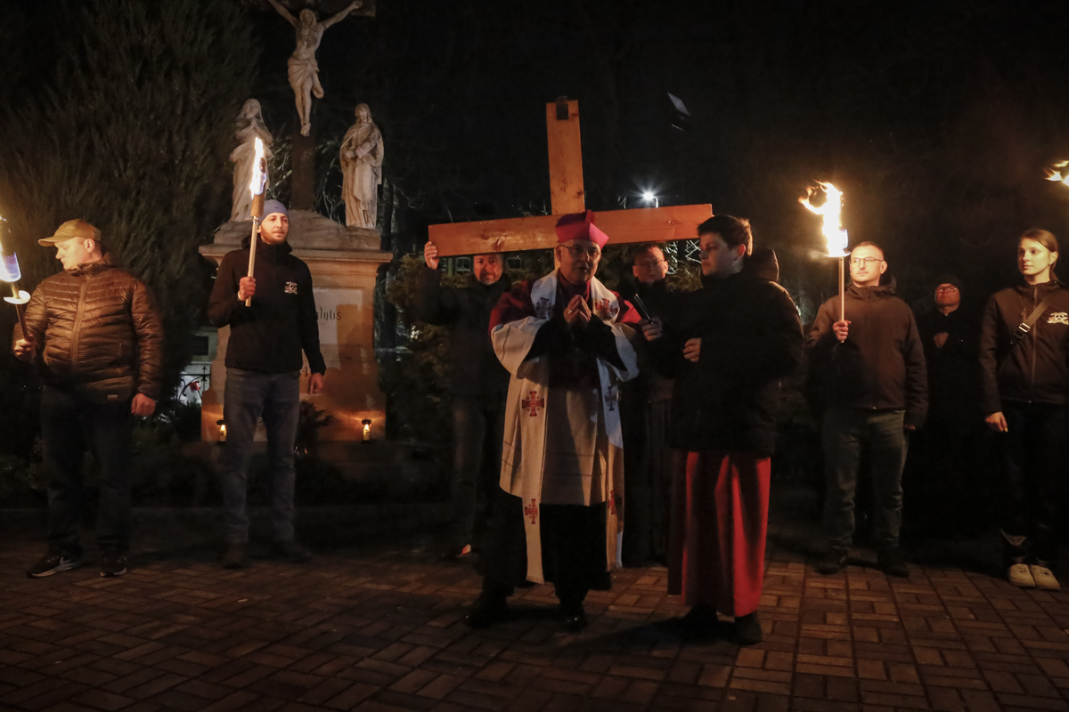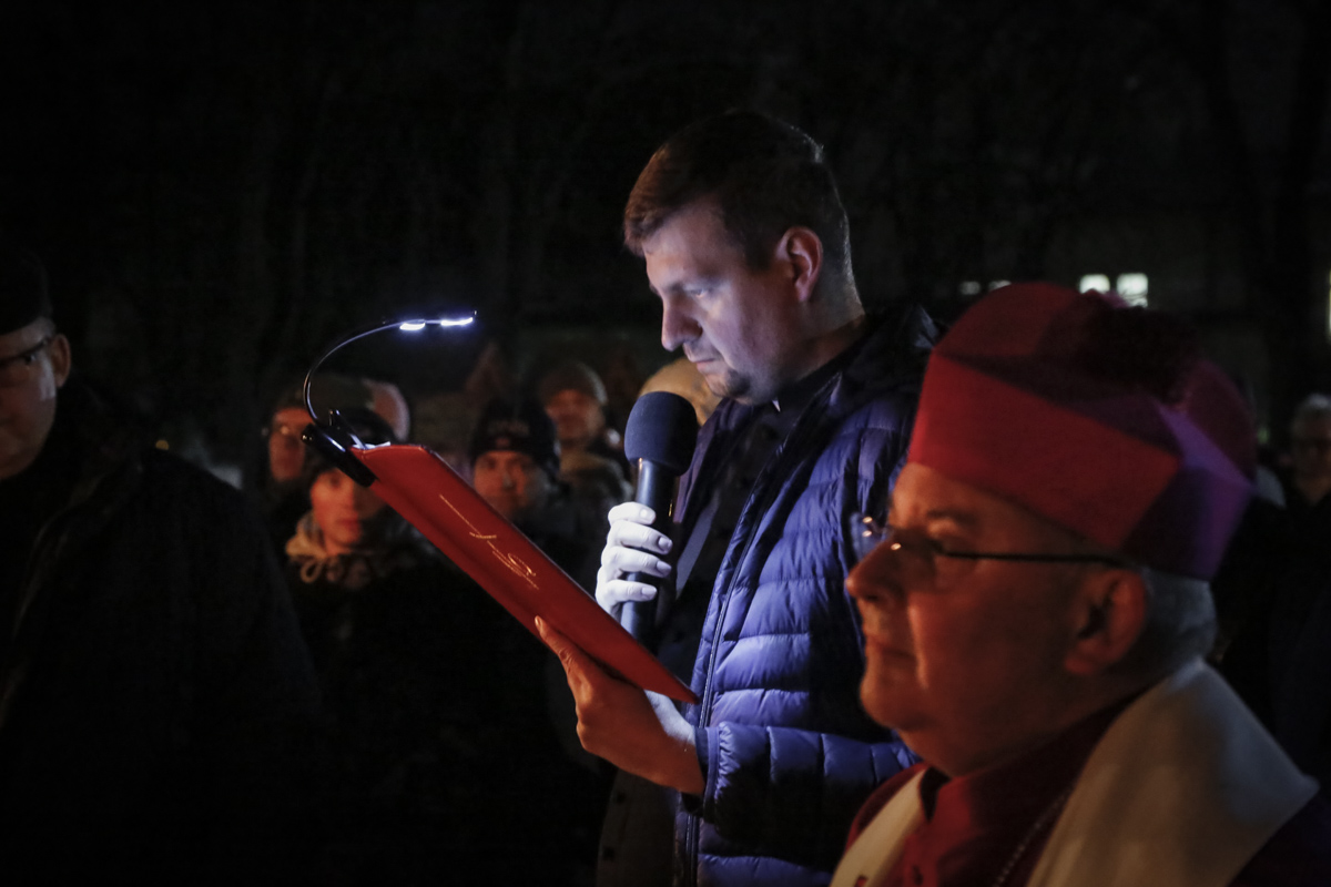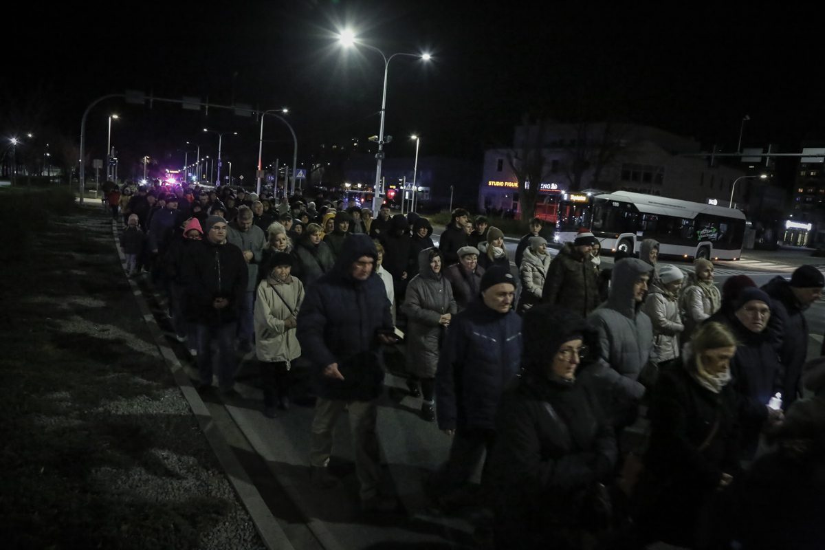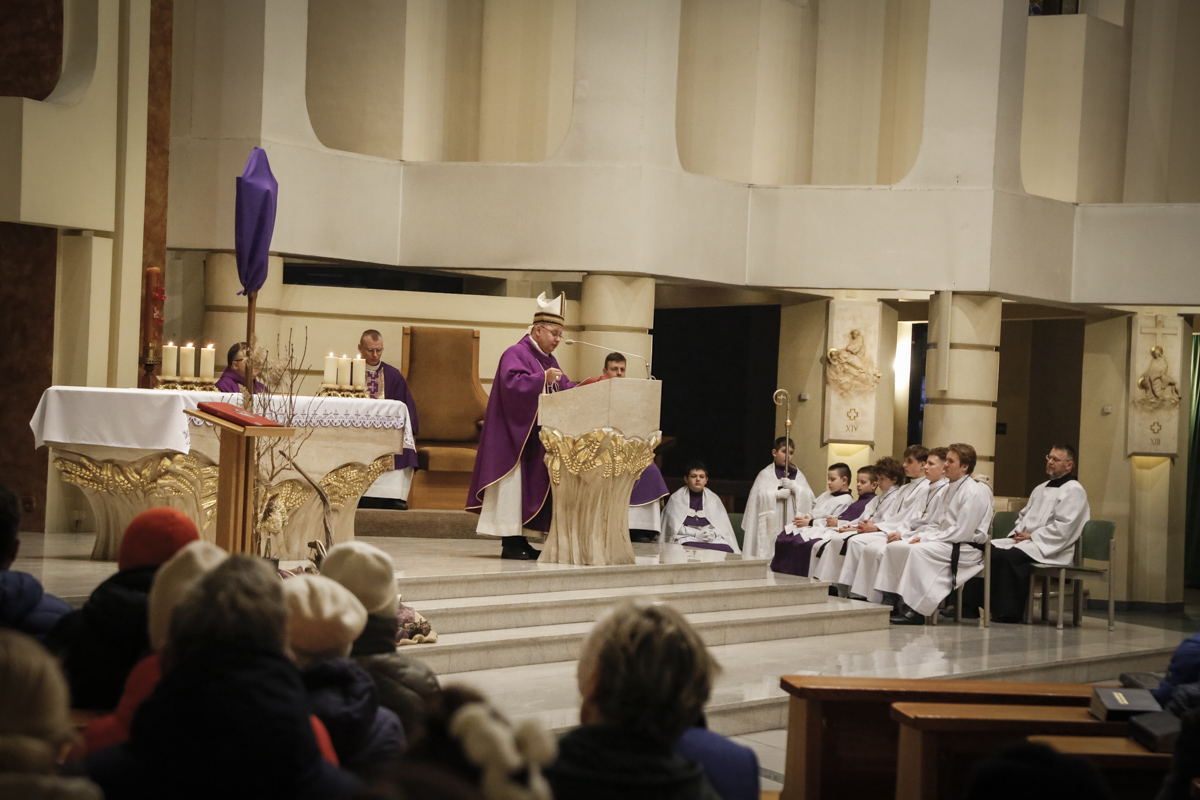 Dzisiejszy piątkowy wieczór był czasem, w którym mogliśmy dekanalnie przeżyć nabożeństwo Drogi Krzyżowej oraz razem uczestniczyć we Mszy Świętej sprawowanej przez naszego biskupa pomocniczego Rudolfa Pierskały w koncelebrze z księżmi z całego dekanatu. Podczas Mszy Świętej bp Rudolf skierował do nas słowa, które było wstępem do nabożeństwa Drogi Krzyżowej prowadzonego wśród ulic naszego miasta. W tym roku przeszliśmy z naszej parafii do parafii św. Mikołaja zatrzymując się przy stacjach Drogi Krzyżowej, która w 2007 została zatwierdzona przez papieża Benedykta XVI, a jej autorem był kardynał Gianfranco Ravasi. Stacje, które rozważaliśmy, pochodzą wyłącznie z Ewangelii. Każde wydarzenie tej drogi jest zapisane w Piśmie Świętym. Nie ma tu scen dopowiedzianych przez tradycję ani obrazów, które zrodziła pobożność kolejnych pokoleń. Jest tylko Ewangelia. To tak zwana biblijna Droga Krzyżowa. Przeszliśmy razem drogę Jezusa. Od ogrodu oliwnego aż po ciszę grobu. Ale ta droga nie kończy się tutaj. Bo krzyż nie jest ostatnim słowem Boga. Ostatnim słowem jest życie. "Kiedy wrócimy do swoich domów, do codziennych spraw, do zwyczajnych obowiązków, ta droga krzyżowa może zostać z nami w inny sposób. Może nauczy nas większej wrażliwości na ludzi, których spotykamy każdego dnia. Na tych, którzy niosą swoje krzyże w milczeniu. Na tych, którzy potrzebują pomocy. Na tych, którzy czekają na jedno dobre słowo. Bo droga Jezusa prowadzi przez ludzkie życie. Przez nasze ulice. Przez nasze domy. Przez nasze serca."