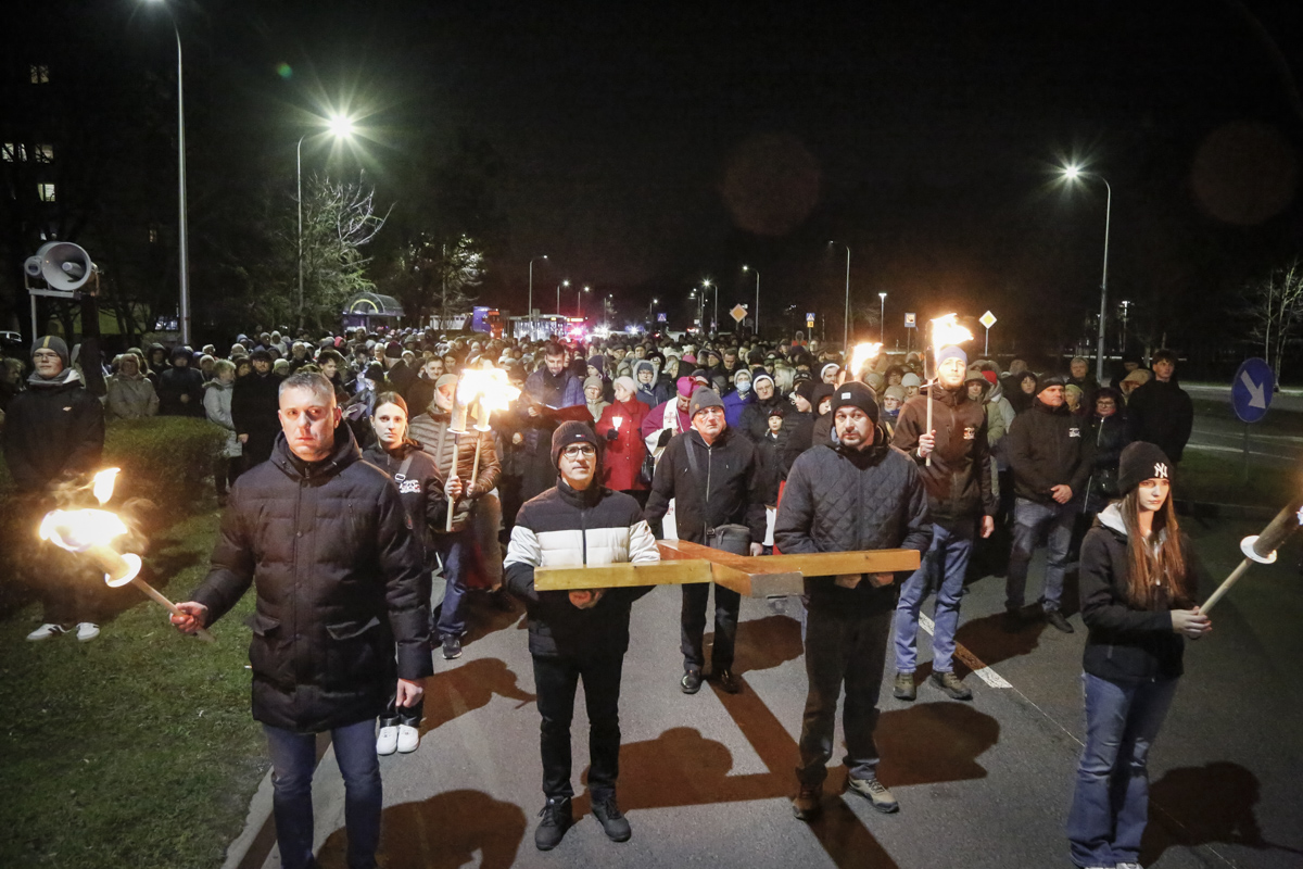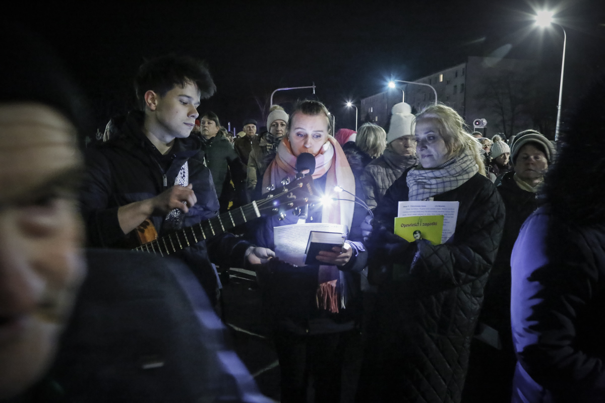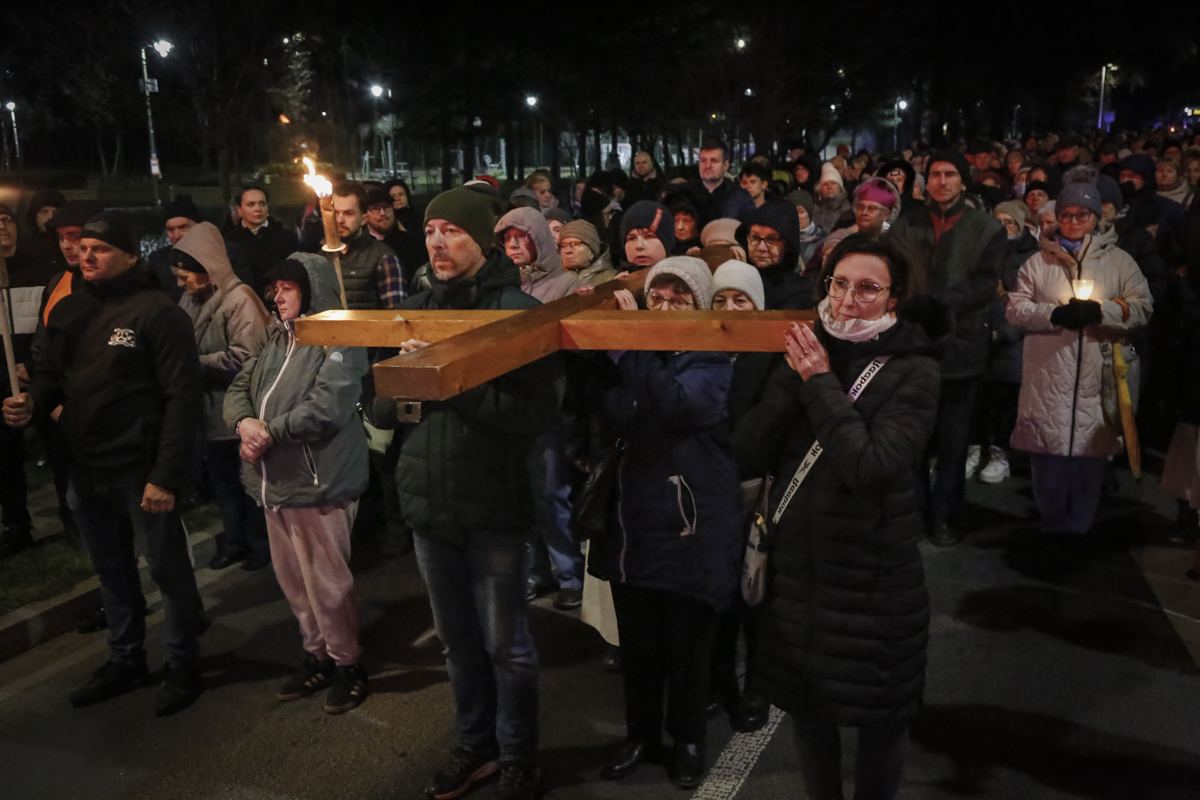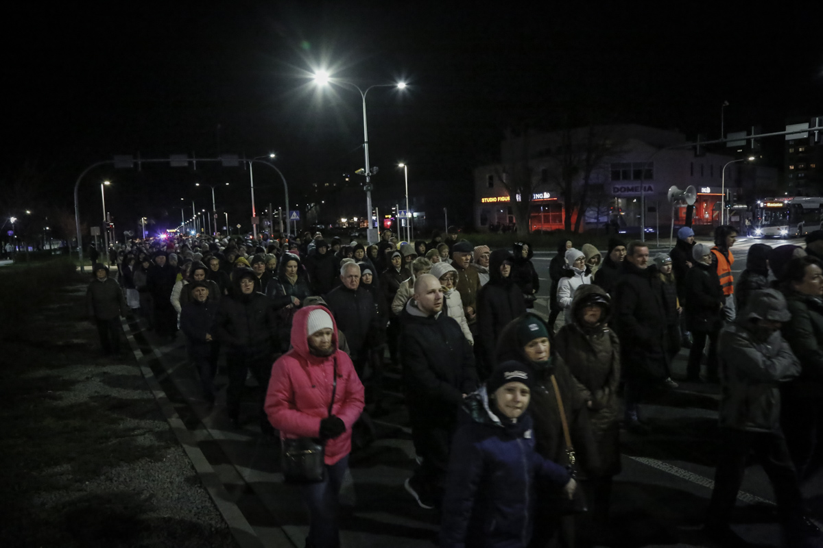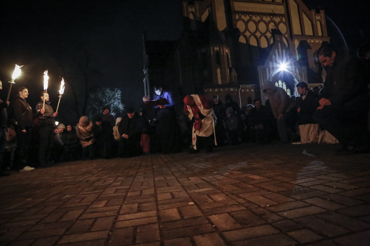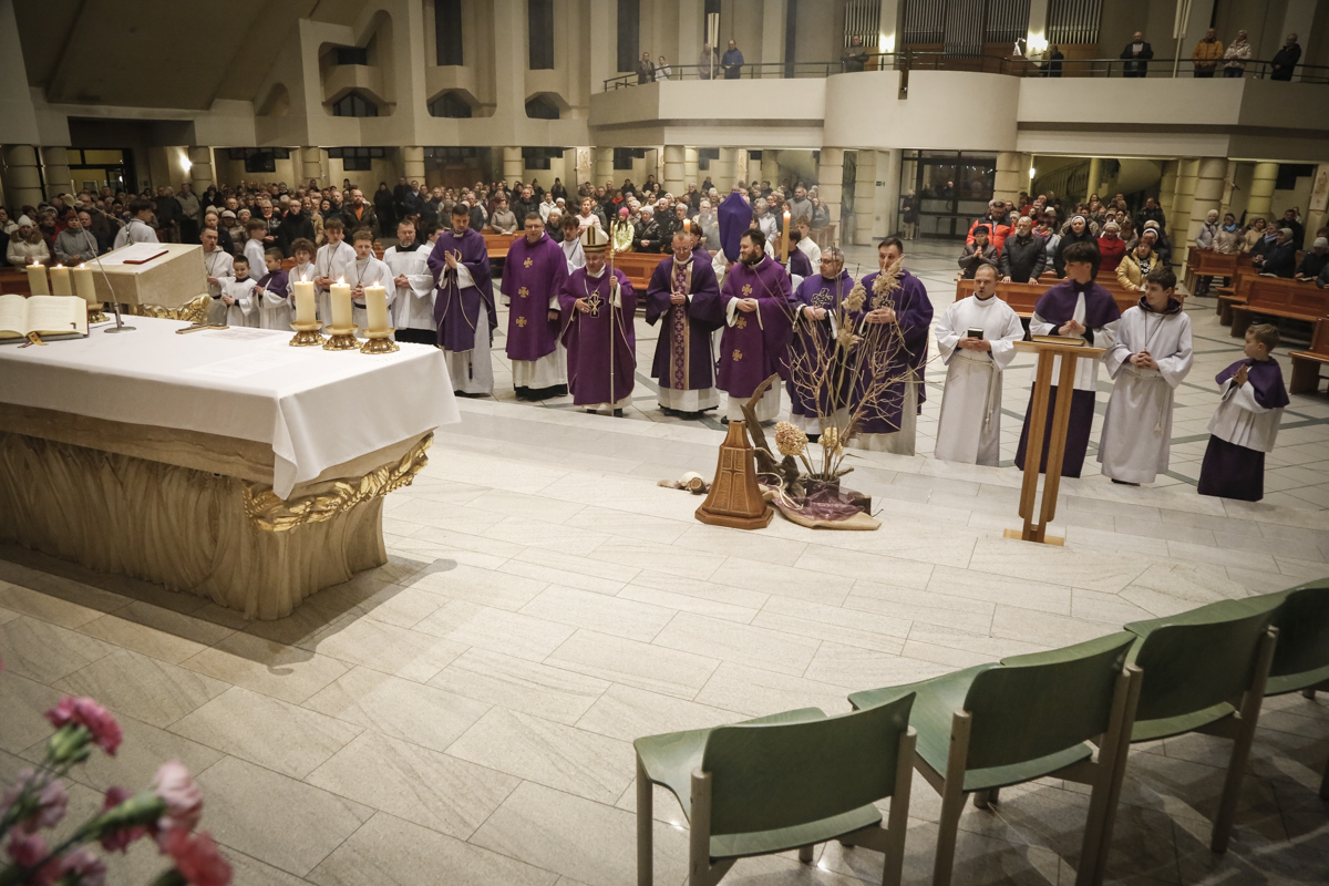 Dzisiejszy piątkowy wieczór był czasem, w którym mogliśmy dekanalnie przeżyć nabożeństwo Drogi Krzyżowej oraz razem uczestniczyć we Mszy Świętej sprawowanej przez naszego biskupa pomocniczego Rudolfa Pierskały w koncelebrze z księżmi z całego dekanatu. Podczas Mszy Świętej bp Rudolf skierował do nas słowa, które było wstępem do nabożeństwa Drogi Krzyżowej prowadzonego wśród ulic naszego miasta. W tym roku przeszliśmy z naszej parafii do parafii św. Mikołaja zatrzymując się przy stacjach Drogi Krzyżowej, która w 2007 została zatwierdzona przez papieża Benedykta XVI, a jej autorem był kardynał Gianfranco Ravasi. Stacje, które rozważaliśmy, pochodzą wyłącznie z Ewangelii. Każde wydarzenie tej drogi jest zapisane w Piśmie Świętym. Nie ma tu scen dopowiedzianych przez tradycję ani obrazów, które zrodziła pobożność kolejnych pokoleń. Jest tylko Ewangelia. To tak zwana biblijna Droga Krzyżowa. Przeszliśmy razem drogę Jezusa. Od ogrodu oliwnego aż po ciszę grobu. Ale ta droga nie kończy się tutaj. Bo krzyż nie jest ostatnim słowem Boga. Ostatnim słowem jest życie. "Kiedy wrócimy do swoich domów, do codziennych spraw, do zwyczajnych obowiązków, ta droga krzyżowa może zostać z nami w inny sposób. Może nauczy nas większej wrażliwości na ludzi, których spotykamy każdego dnia. Na tych, którzy niosą swoje krzyże w milczeniu. Na tych, którzy potrzebują pomocy. Na tych, którzy czekają na jedno dobre słowo. Bo droga Jezusa prowadzi przez ludzkie życie. Przez nasze ulice. Przez nasze domy. Przez nasze serca."