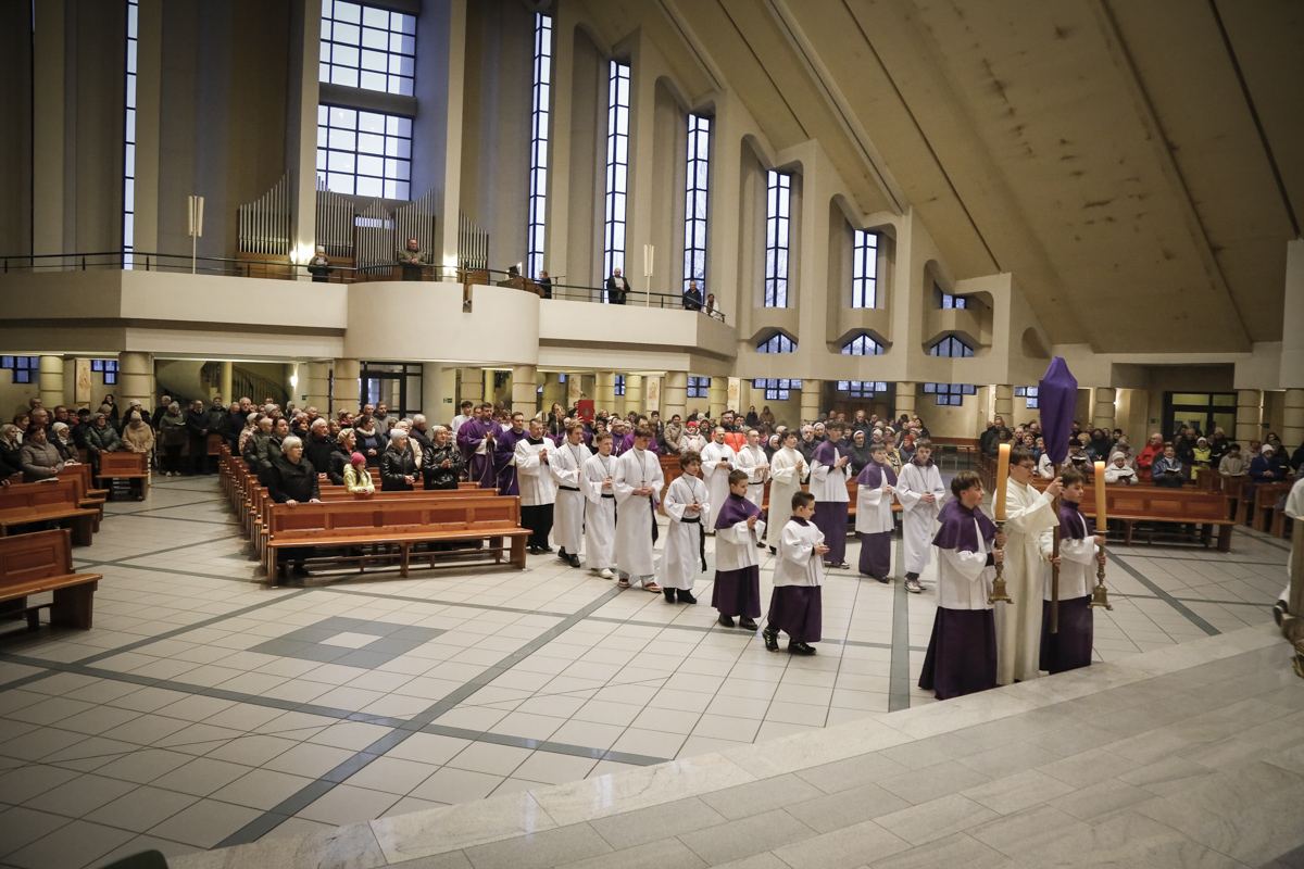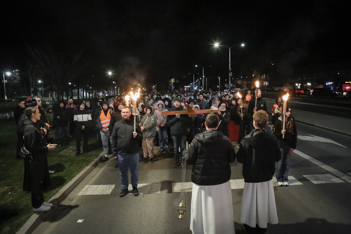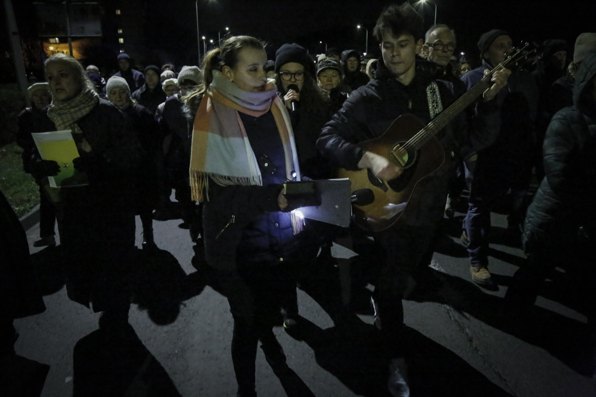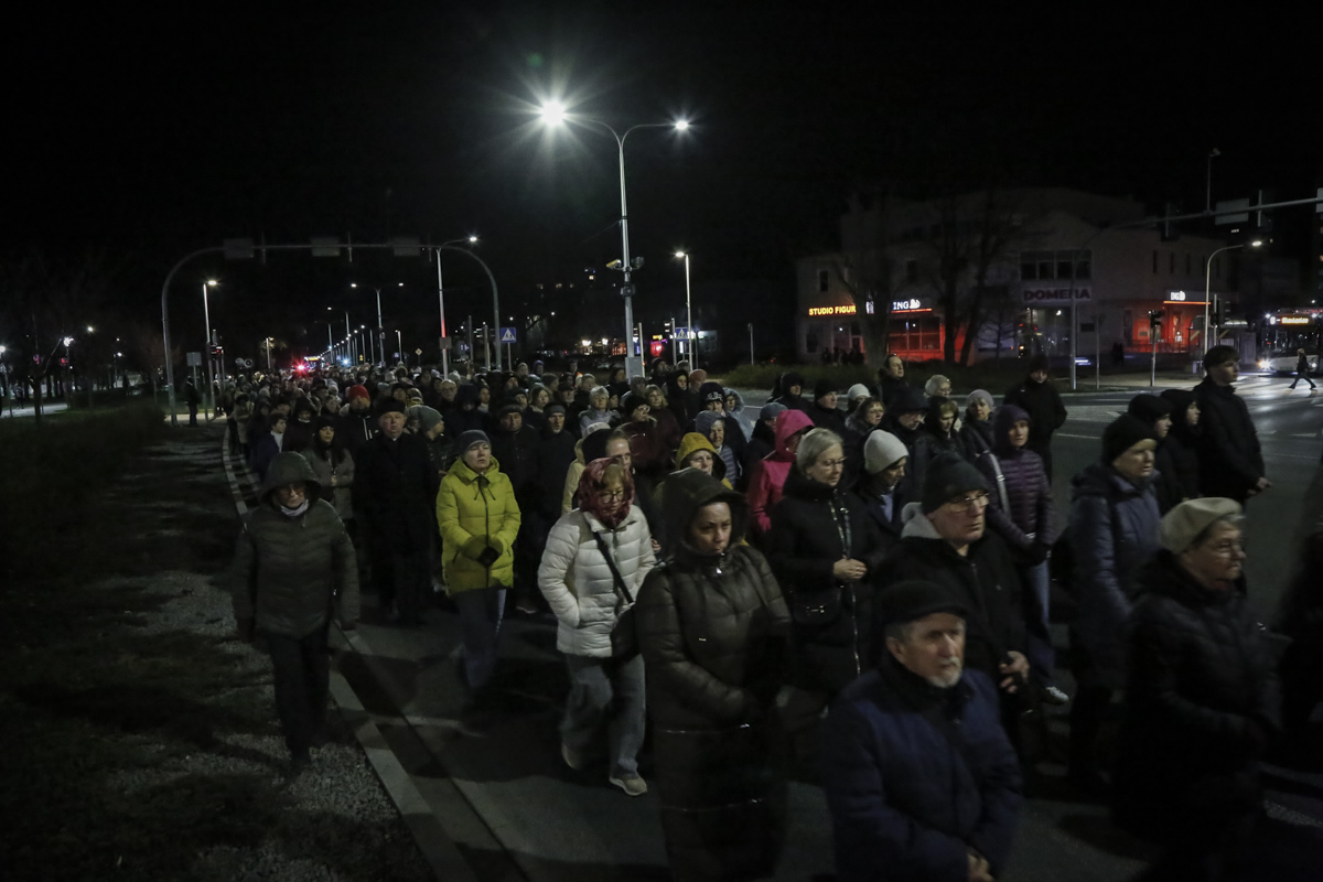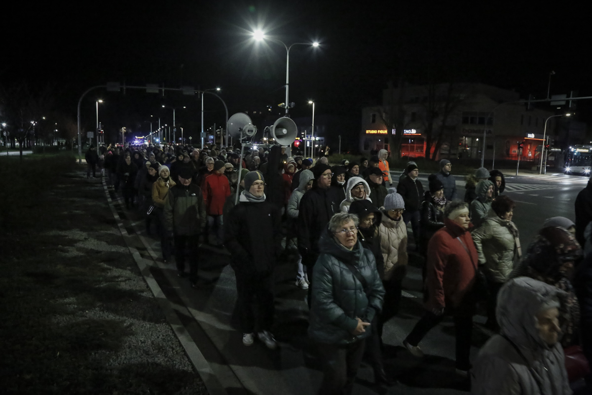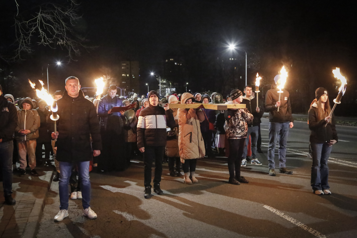 Dzisiejszy piątkowy wieczór był czasem, w którym mogliśmy dekanalnie przeżyć nabożeństwo Drogi Krzyżowej oraz razem uczestniczyć we Mszy Świętej sprawowanej przez naszego biskupa pomocniczego Rudolfa Pierskały w koncelebrze z księżmi z całego dekanatu. Podczas Mszy Świętej bp Rudolf skierował do nas słowa, które było wstępem do nabożeństwa Drogi Krzyżowej prowadzonego wśród ulic naszego miasta. W tym roku przeszliśmy z naszej parafii do parafii św. Mikołaja zatrzymując się przy stacjach Drogi Krzyżowej, która w 2007 została zatwierdzona przez papieża Benedykta XVI, a jej autorem był kardynał Gianfranco Ravasi. Stacje, które rozważaliśmy, pochodzą wyłącznie z Ewangelii. Każde wydarzenie tej drogi jest zapisane w Piśmie Świętym. Nie ma tu scen dopowiedzianych przez tradycję ani obrazów, które zrodziła pobożność kolejnych pokoleń. Jest tylko Ewangelia. To tak zwana biblijna Droga Krzyżowa. Przeszliśmy razem drogę Jezusa. Od ogrodu oliwnego aż po ciszę grobu. Ale ta droga nie kończy się tutaj. Bo krzyż nie jest ostatnim słowem Boga. Ostatnim słowem jest życie. "Kiedy wrócimy do swoich domów, do codziennych spraw, do zwyczajnych obowiązków, ta droga krzyżowa może zostać z nami w inny sposób. Może nauczy nas większej wrażliwości na ludzi, których spotykamy każdego dnia. Na tych, którzy niosą swoje krzyże w milczeniu. Na tych, którzy potrzebują pomocy. Na tych, którzy czekają na jedno dobre słowo. Bo droga Jezusa prowadzi przez ludzkie życie. Przez nasze ulice. Przez nasze domy. Przez nasze serca."