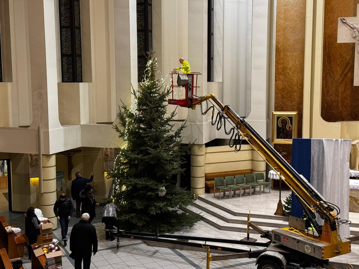 Przygotowanie wystroju Bożego Narodzenia w parafii to proces łączący tradycję i współczesność, obejmujący dekorację kościoła i prezbiterium, w którym pojawiły się ozdobione choinki, a w kaplicy bocznej tradycyjnie zbudowano szopkę bożonarodzeniową. Zaangażowanie wspólnoty, planowanie harmonogramu prac i dbałość o spójność stylu, tak by dekoracje wzmacniały przesłanie świąteczne i tworzyły ciepłą atmosferę, często z wykorzystaniem naturalnych elementów i dzieł rąk wiernych tworzy ten niepowtarzalny klimat. Dziękujemy wszystkim, którzy przyczynili się do stworzenia tego nastroju świątecznego - wielkie Bóg zapłać!