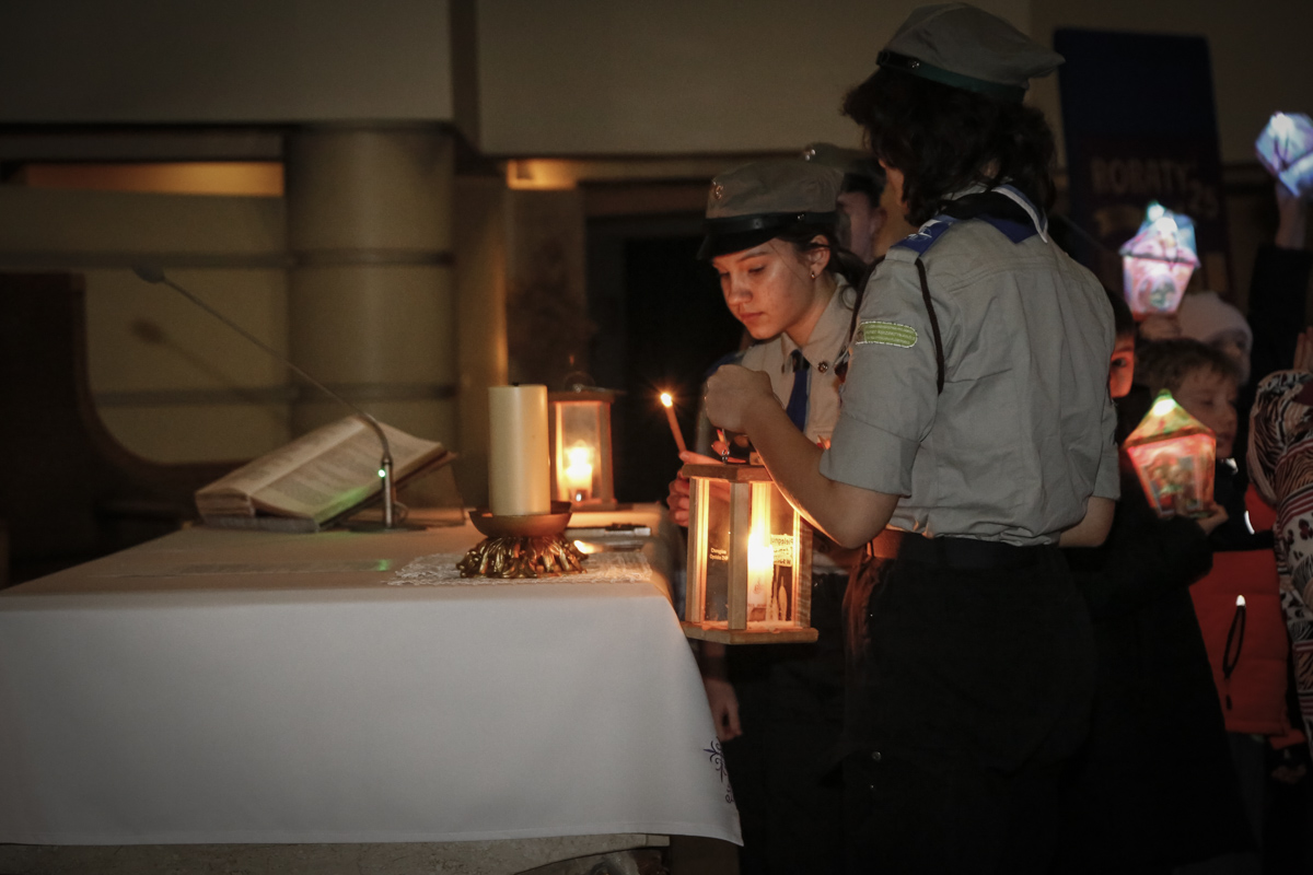 Betlejemskie Światło Pokoju to tradycja, która sięga 1986 roku. Każdego roku harcerze i skauci z wielu krajów przenoszą płomień zapalony w Grocie Narodzenia Pańskiego, tworząc międzynarodową sztafetę nadziei i pokoju. Podczas piątkowych rorat o godz. 16:30 zostało to światło przekazane naszej parafii przez harcerzy, którzy podczas śpiewu Gloria odpalili świece na ołtarzu i wieńcu adwentowym. Tegoroczne hasło akcji – "Pielęgnuj dobro w sobie" – przypomina, że dobro w świecie zaczyna się od dobra w człowieku. Zabierzmy dalej to Światło, żeby mogło trafić do każdego domu i serca. Niech tegoroczne przesłanie przypomni nam, że każdy z nas ma w sobie dobro i potrafi znaleźć siłę, by pokonywać własne słabości. Dbajmy o to dobro i dzielmy się nim z innymi, budując wspólnotę.