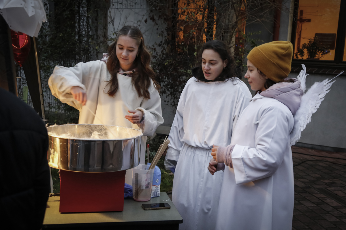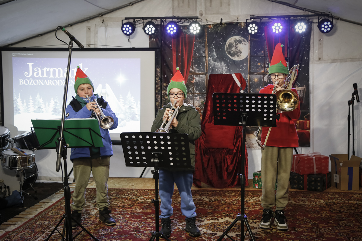 Dzisiejszy Jarmark Parafialny był prawdziwie bajkowym wydarzeniem. Przez cały czas towarzyszyła nam radość, muzyka i dziecięcy entuzjazm. Na scenie rozbrzmiewały piękne śpiewy, a młodzi artyści zachwycili grą na trąbkach, puzonach, flecie poprzecznym oraz pełnią energii i uśmiechu. Nie zabrakło również wyjątkowego momentu wizyty św. Mikołaja, który sprawił dzieciom ogromną radość. Później usłyszeliśmy Orkiestrę z okolic Krapkowic, a następnie wzruszające występy dziewcząt, w tym poruszającą grę na saksofonie.