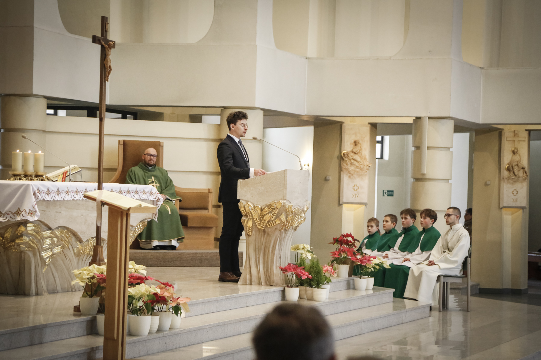 W weekend miały miejsce warsztaty muzyki liturgicznej prowadzone przez Pawła Bębenka, który jest znanym śpiewakiem, kompozytorem i dyrygentem związanym ze środowiskiem muzycznym przy krakowskim klasztorze Ojców Dominikanów. Jest też członkiem Stowarzyszenia Polskich Muzyków Kościelnych. Zwieńczeniem warsztatów było uczestnictwo i śpiew w czasie mszy świętej o godz.11.30. Natomiast po Mszy Świętej wykonali również kilka utworów wprowadzając nas w czas zbliżającego się Wielkiego Postu.