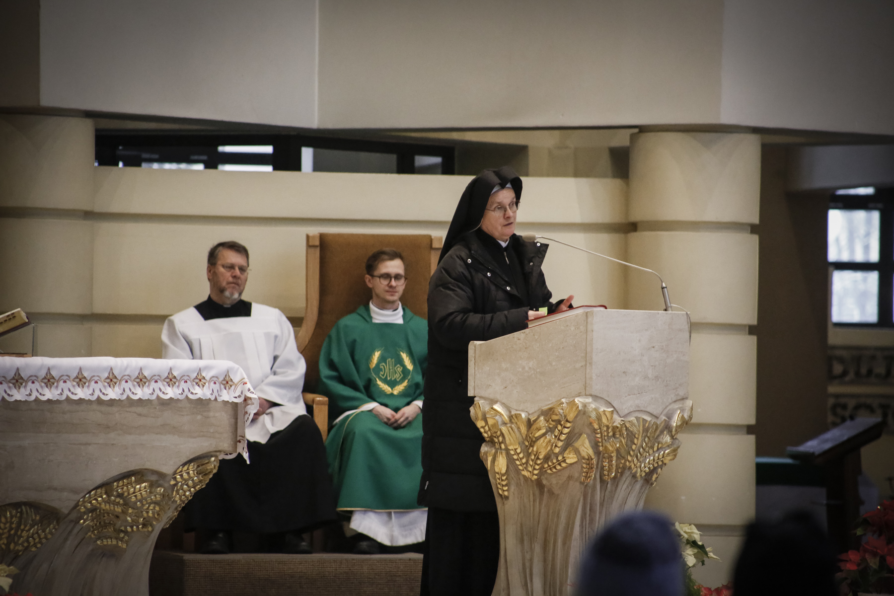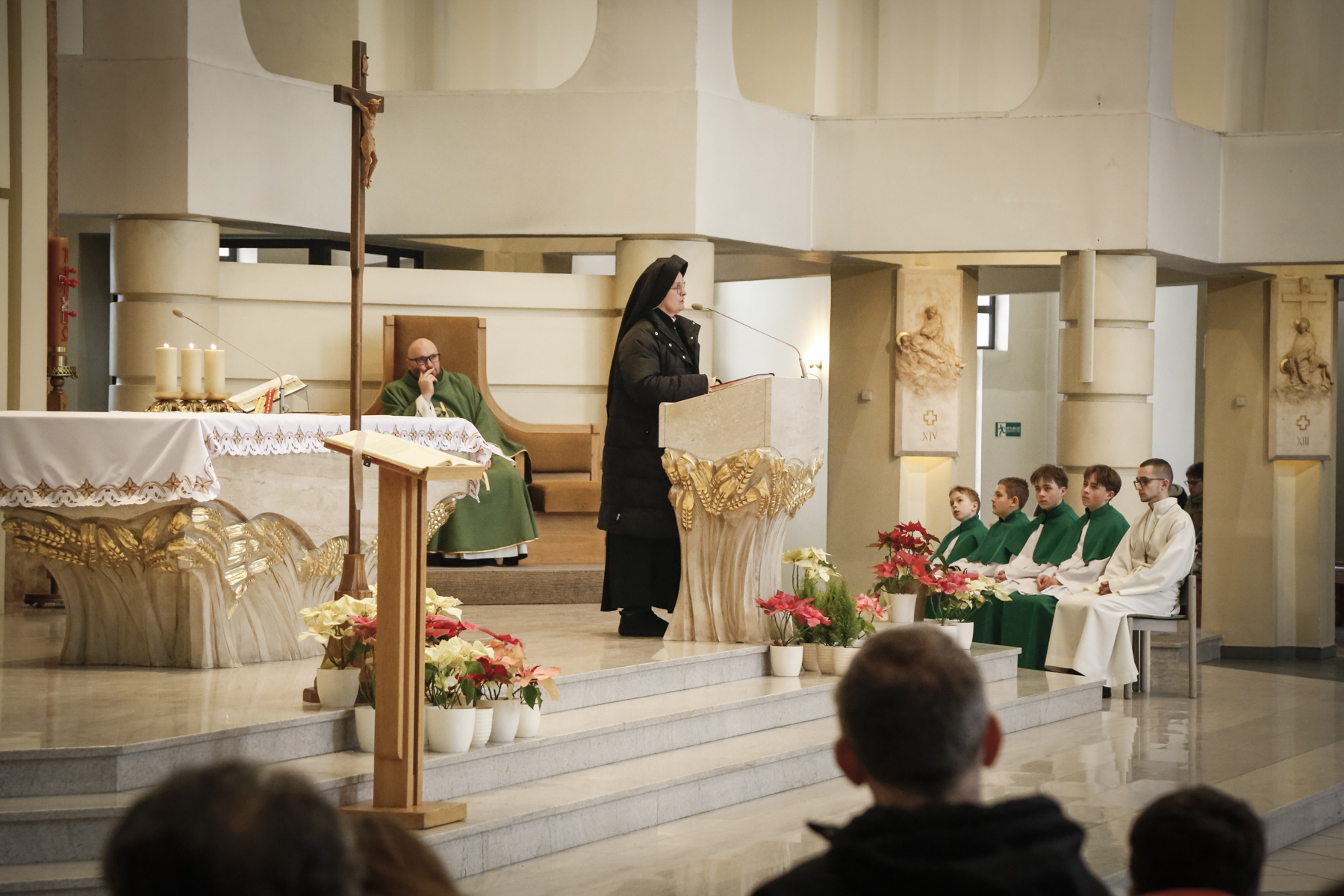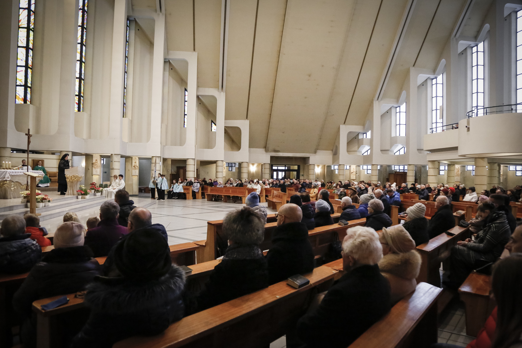 Ta niedziela to również spotkanie z siostrą Krzysztofą, która skierowała dzisiaj do nas słowo przybliżając nam troski i potrzeby obszaru Betlejem i Jerozolimy. Po Mszach można było również nabyć pamiątki wykonane z drzewa oliwnego, których dochód jest przeznaczony na cele wsparcia katolików żyjących na terenie Izraela.