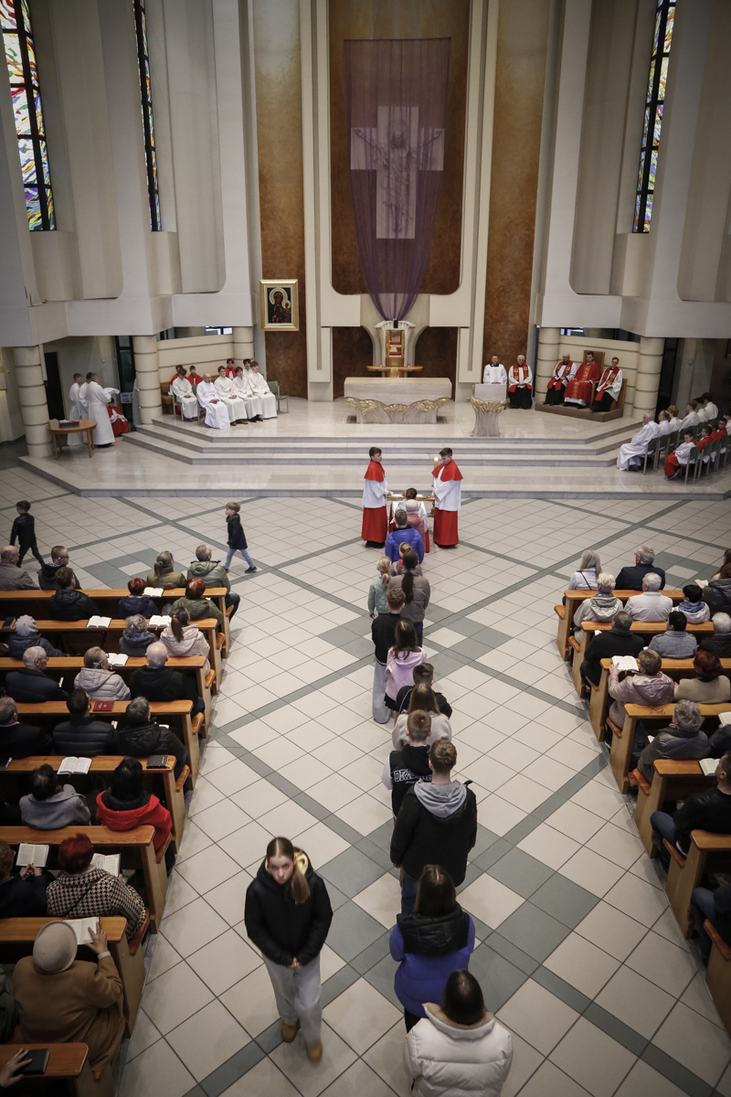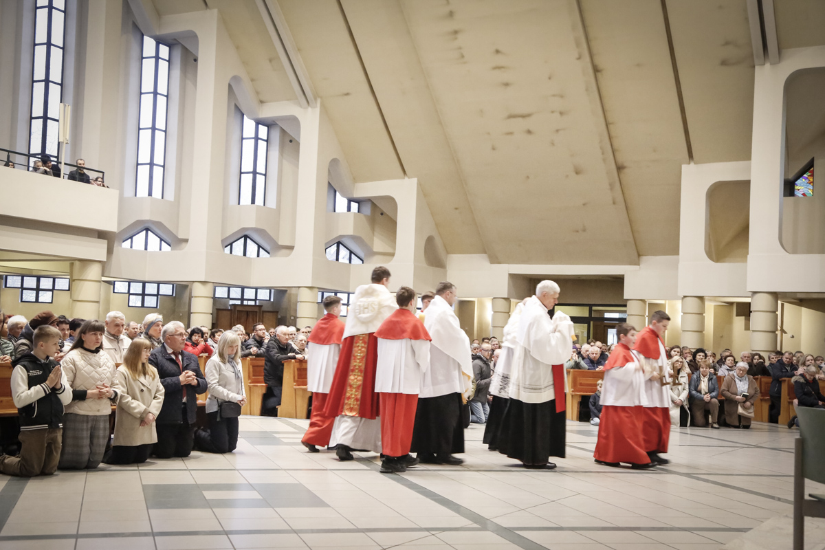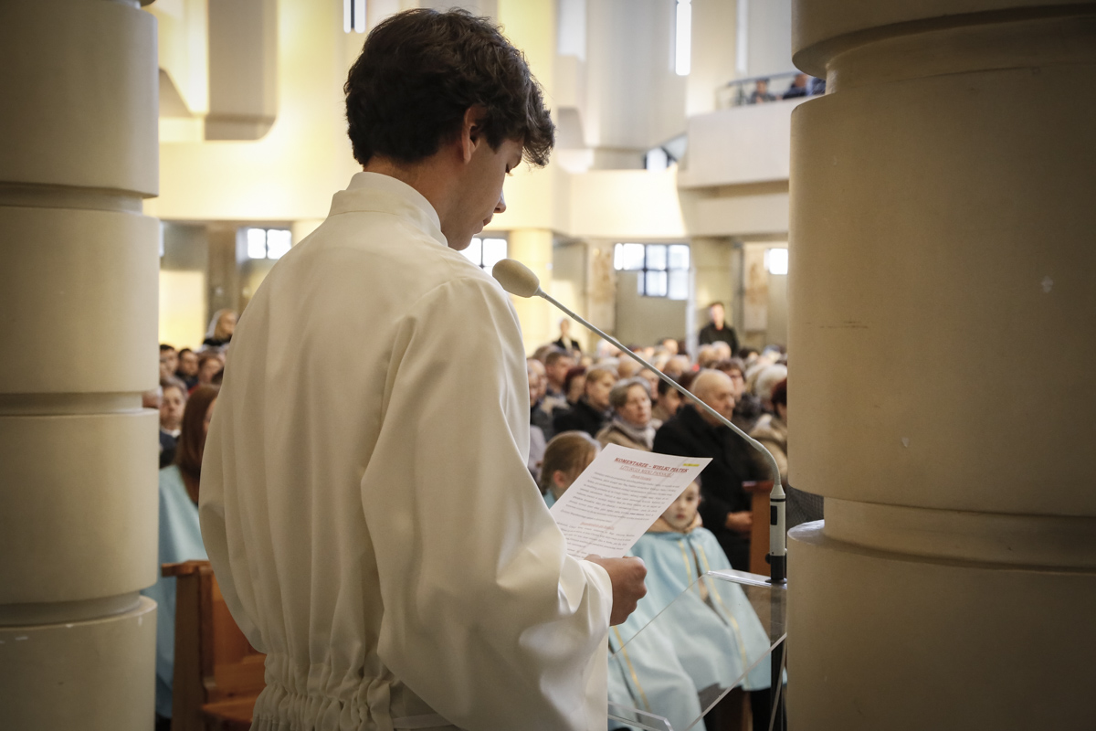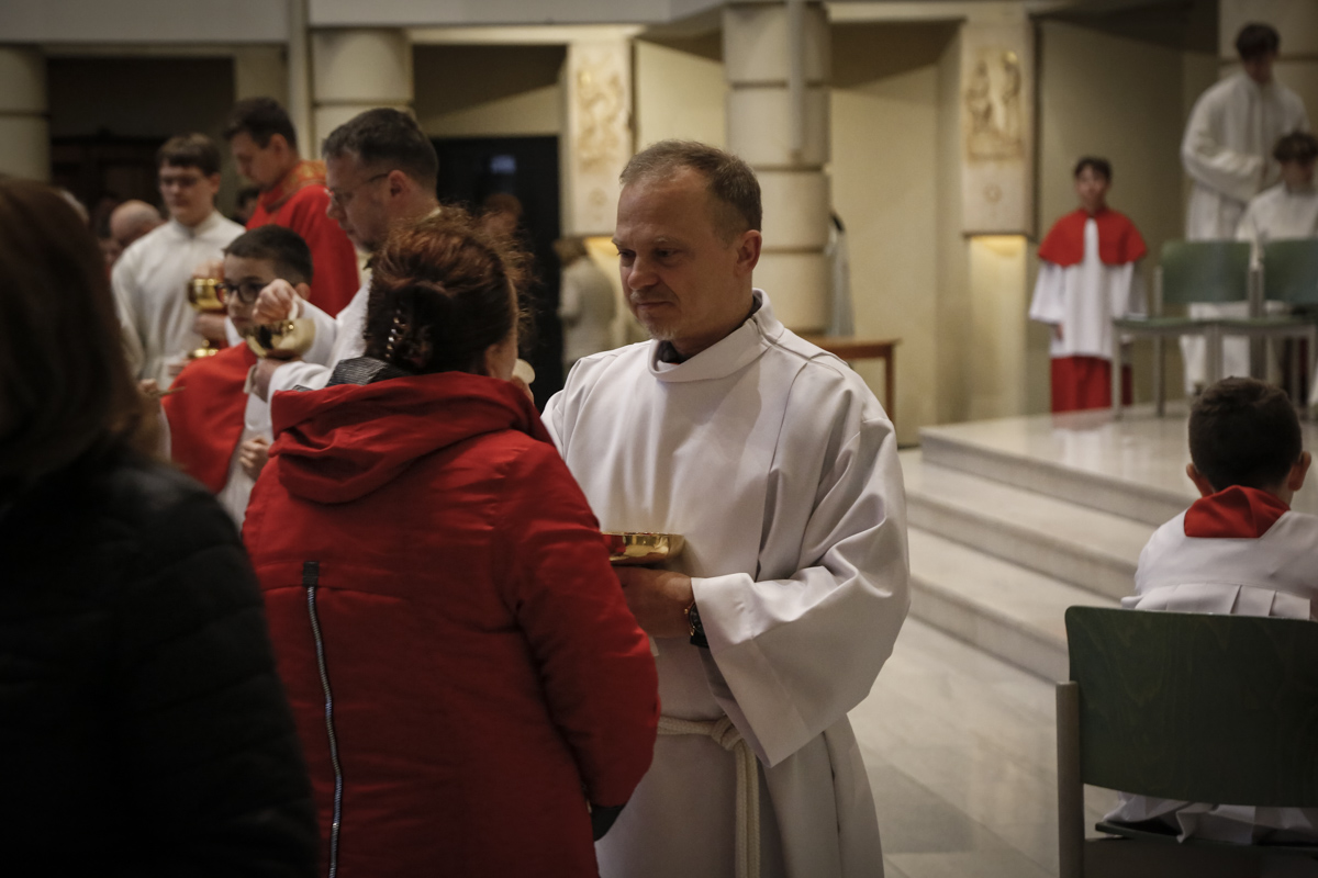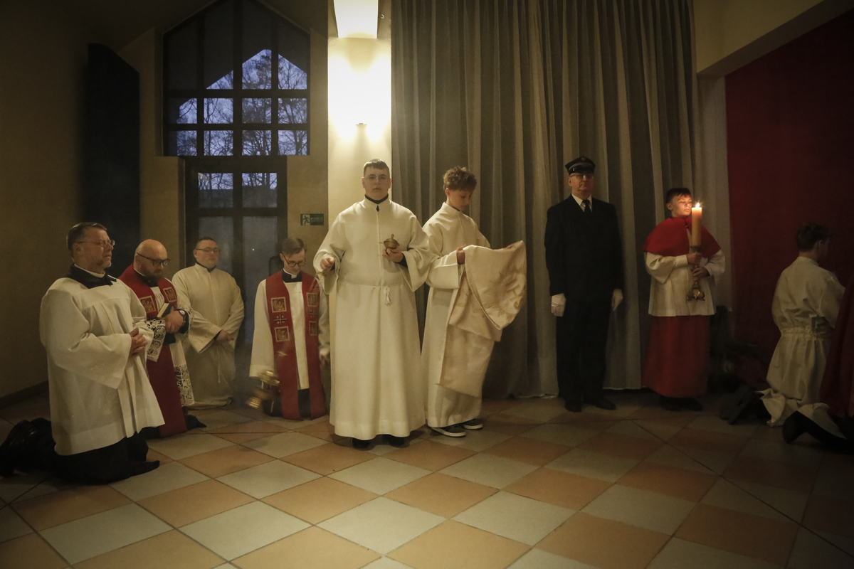 Wielki Piątek to jedyny dzień w roku, w którym Kościół nie sprawuje Mszy świętej. To czas głębokiej ciszy, zadumy nad męką Chrystusa i adoracji narzędzia naszego zbawienia – Krzyża. Centralnym punktem dnia jest wieczorna Liturgia Męki Pańskiej sprawowana u nas o godz. 18:00 pod przewodnictwem ks. Michała, który wygłosił słowo do wiernych. Poniżej można wsłuchać się w jej fragmenty.