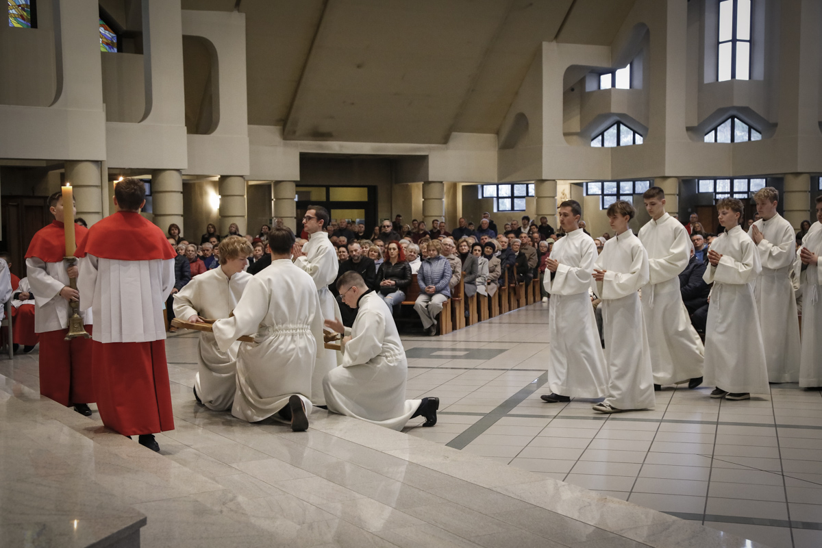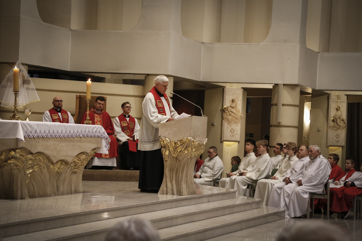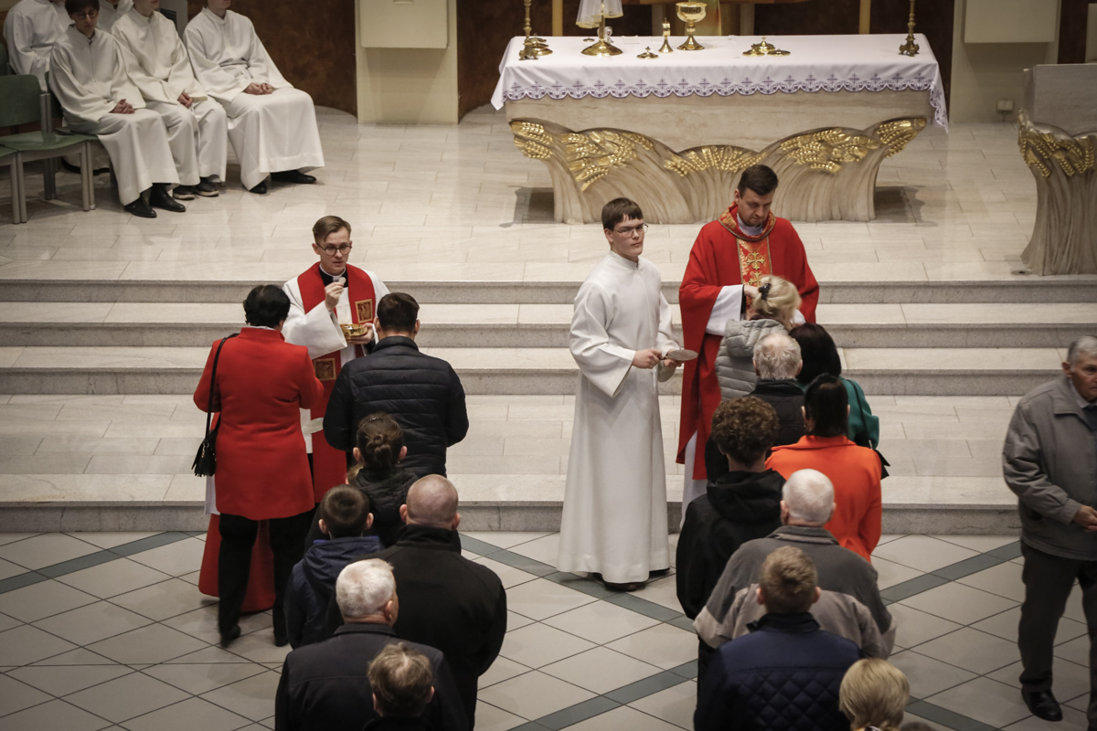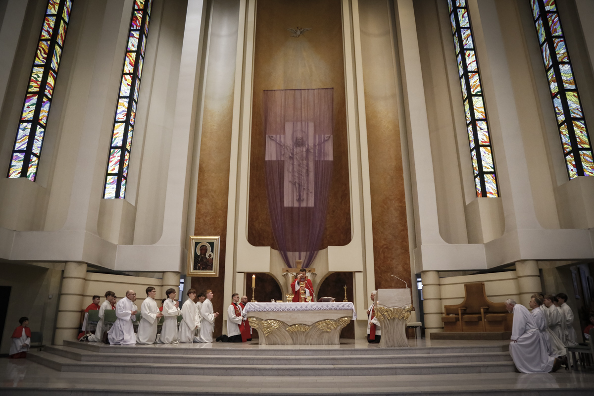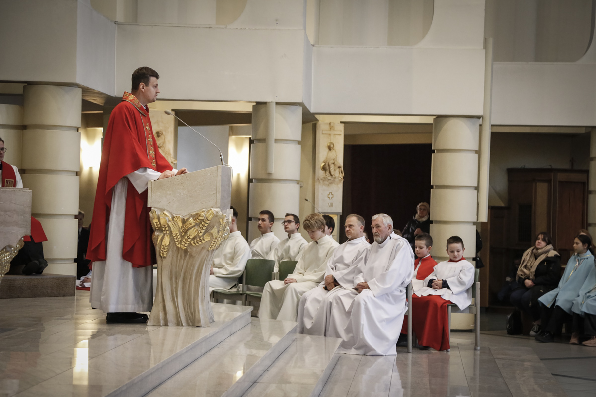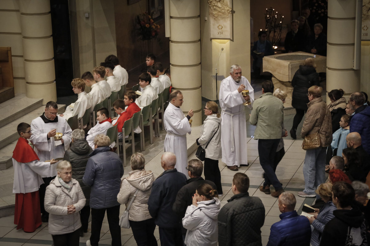 Wielki Piątek to jedyny dzień w roku, w którym Kościół nie sprawuje Mszy świętej. To czas głębokiej ciszy, zadumy nad męką Chrystusa i adoracji narzędzia naszego zbawienia – Krzyża. Centralnym punktem dnia jest wieczorna Liturgia Męki Pańskiej sprawowana u nas o godz. 18:00 pod przewodnictwem ks. Michała, który wygłosił słowo do wiernych. Poniżej można wsłuchać się w jej fragmenty.