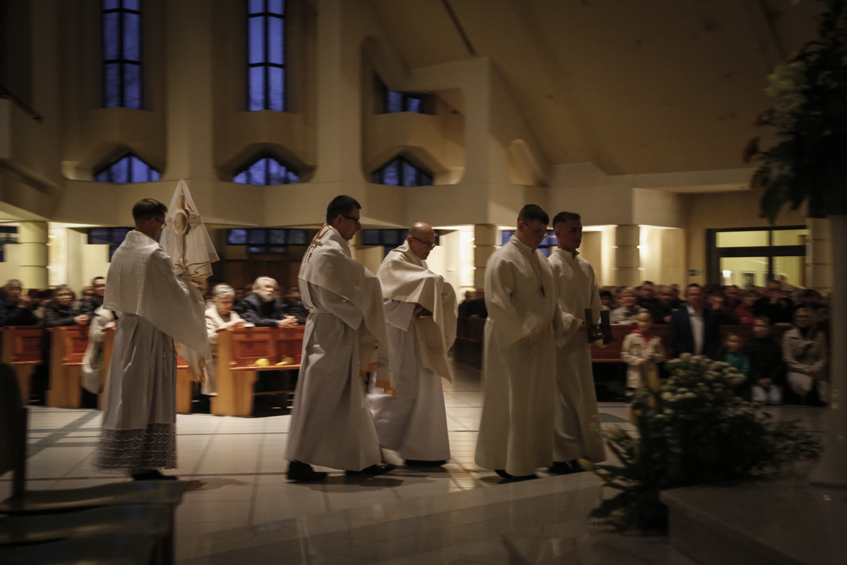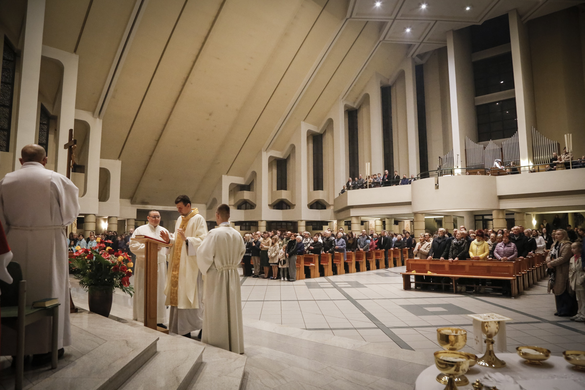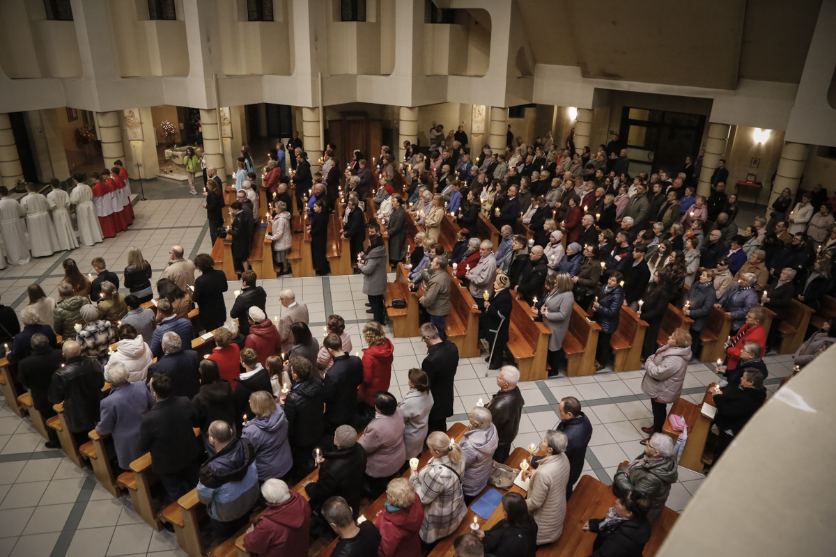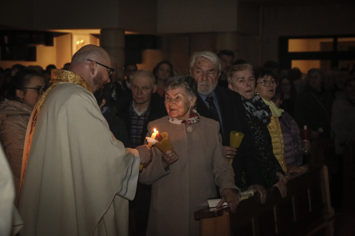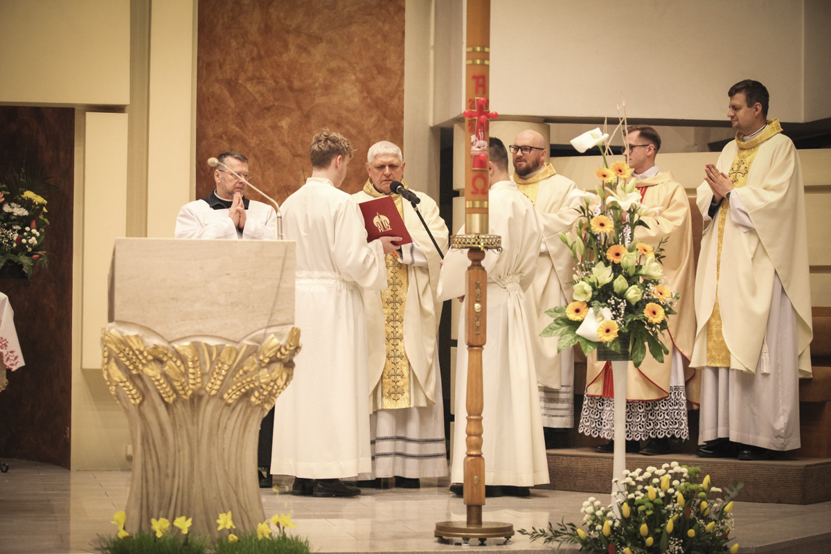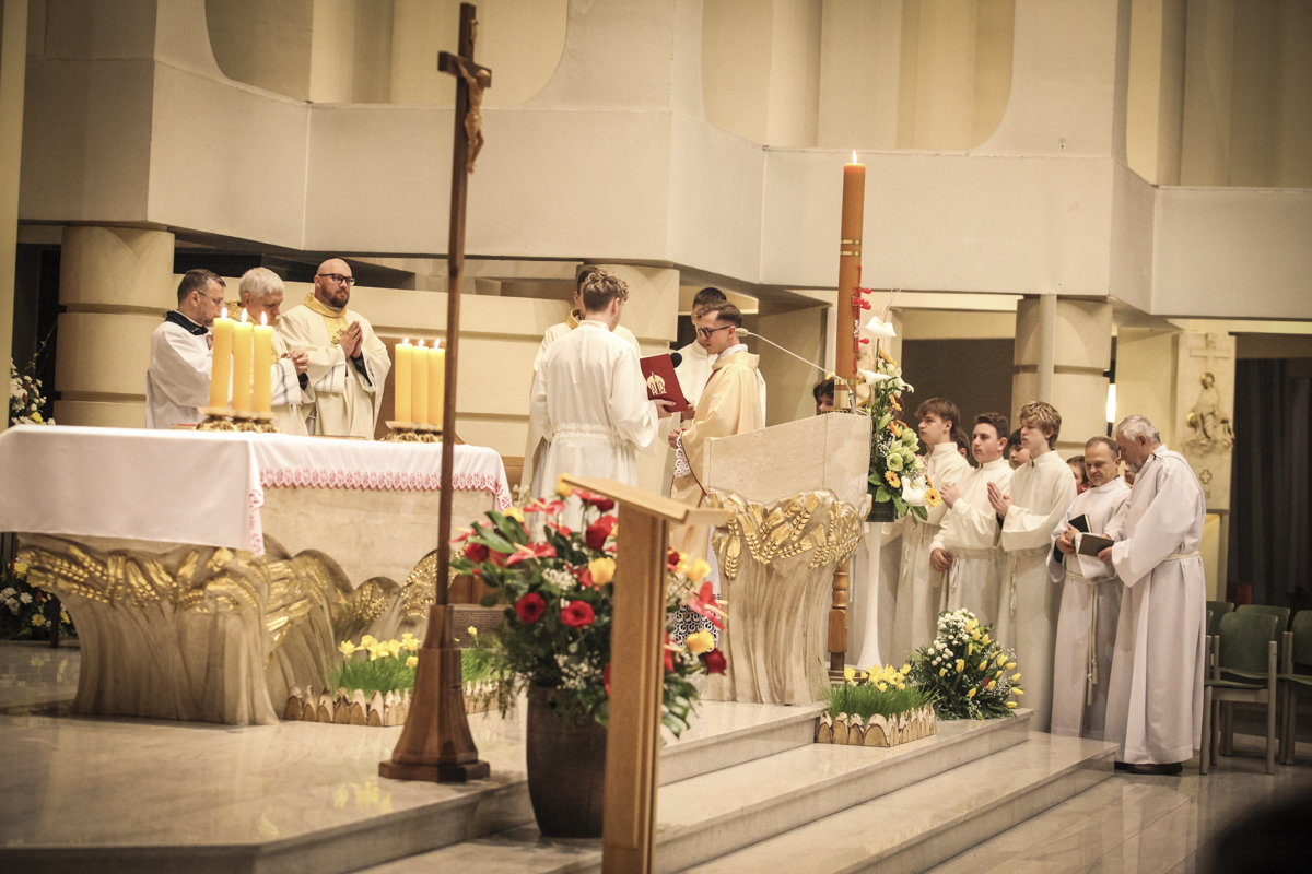 Po usłyszeniu Ewangelii oraz kazania następił obrzęd poświęcenia wody chrzcielnej, podczas którego cała wspólnota odnowiła swoje przyrzeczenia chrzcielne, deklarując wiarę i wyrzeczenie się zła. Uwieńczeniem tej wyjątkowej nocy była Liturgia Eucharystyczna, będąca pierwszą w pełni wielkanocną ucztą ofiarną. Posłuchaj fragmentów ze Mszy Świętej w Wigilię Paschalną.