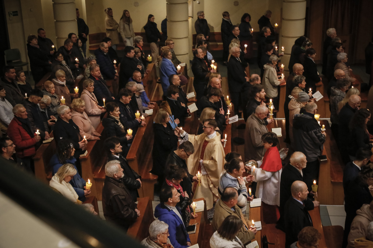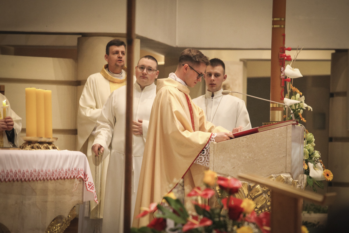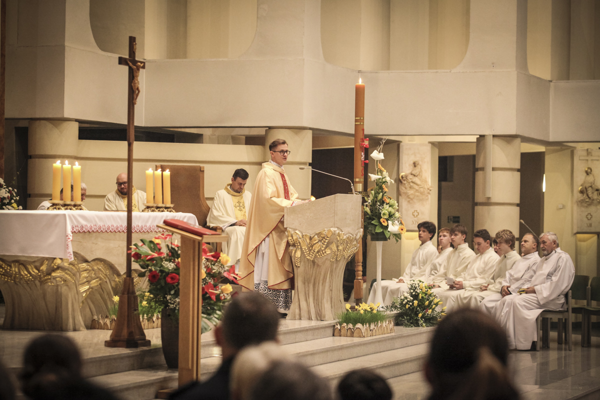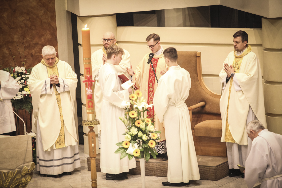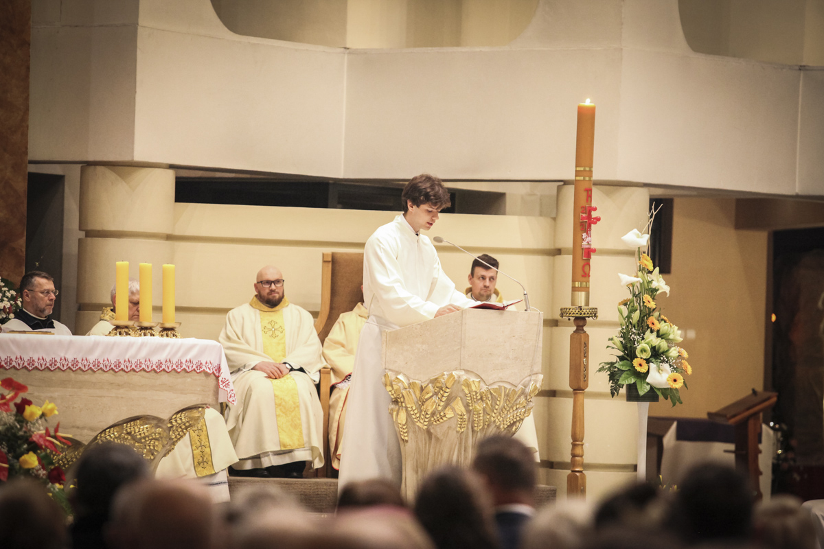 Po usłyszeniu Ewangelii oraz kazania następił obrzęd poświęcenia wody chrzcielnej, podczas którego cała wspólnota odnowiła swoje przyrzeczenia chrzcielne, deklarując wiarę i wyrzeczenie się zła. Uwieńczeniem tej wyjątkowej nocy była Liturgia Eucharystyczna, będąca pierwszą w pełni wielkanocną ucztą ofiarną. Posłuchaj fragmentów ze Mszy Świętej w Wigilię Paschalną.