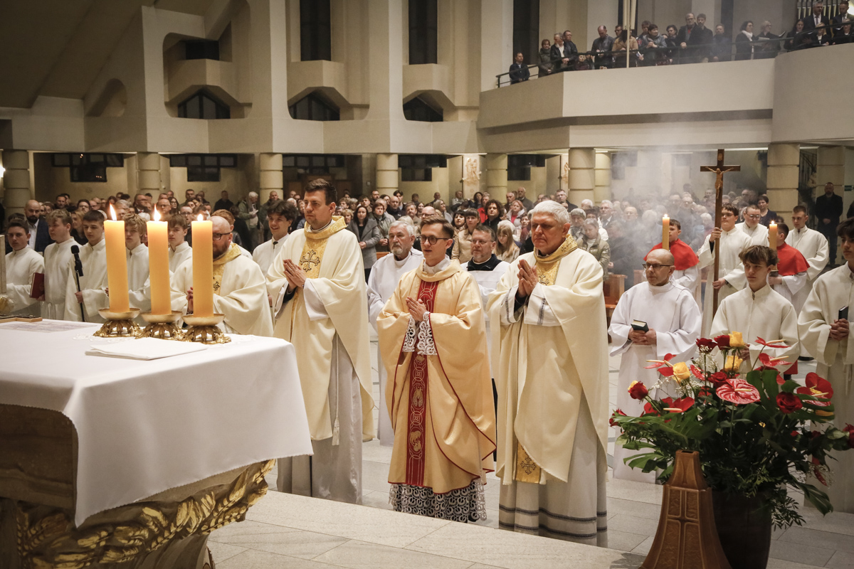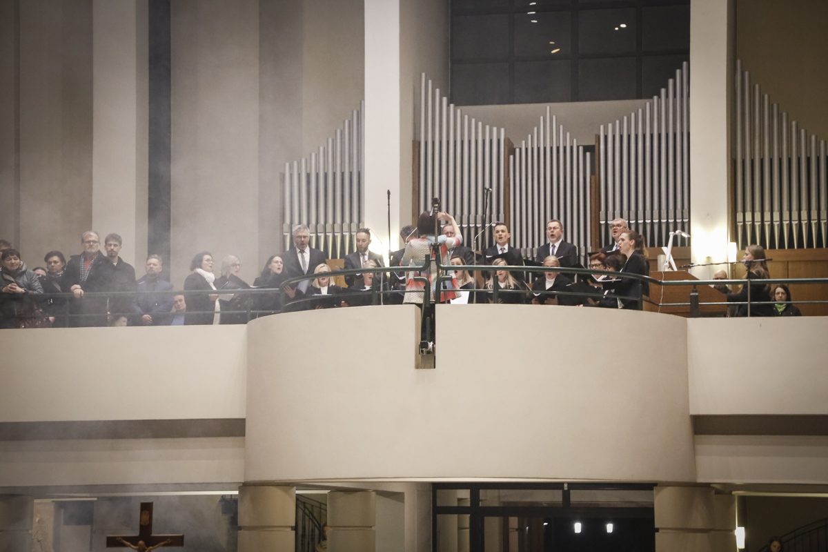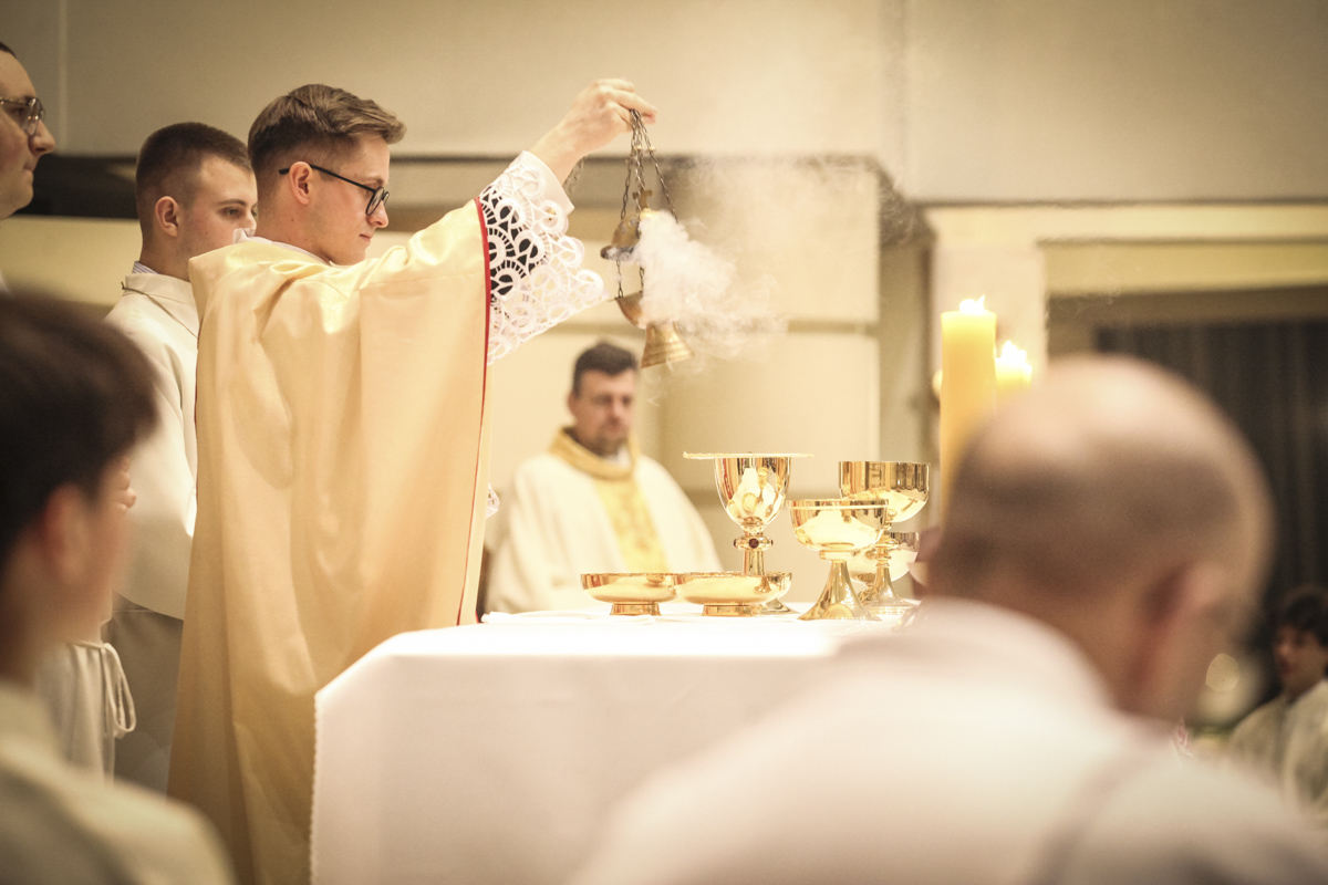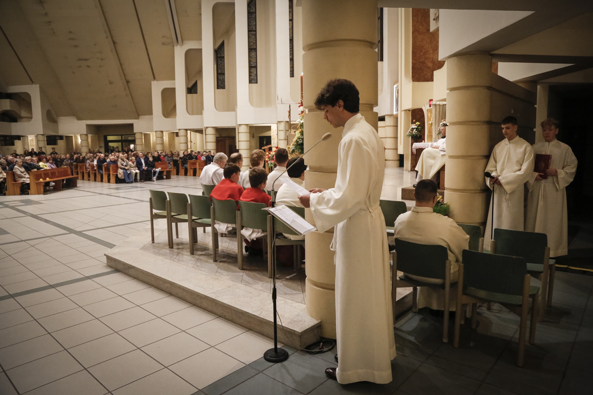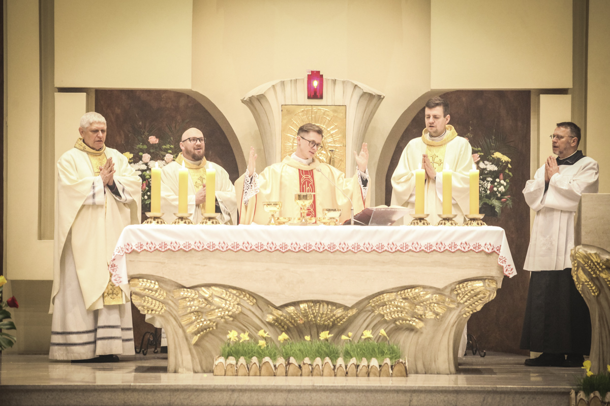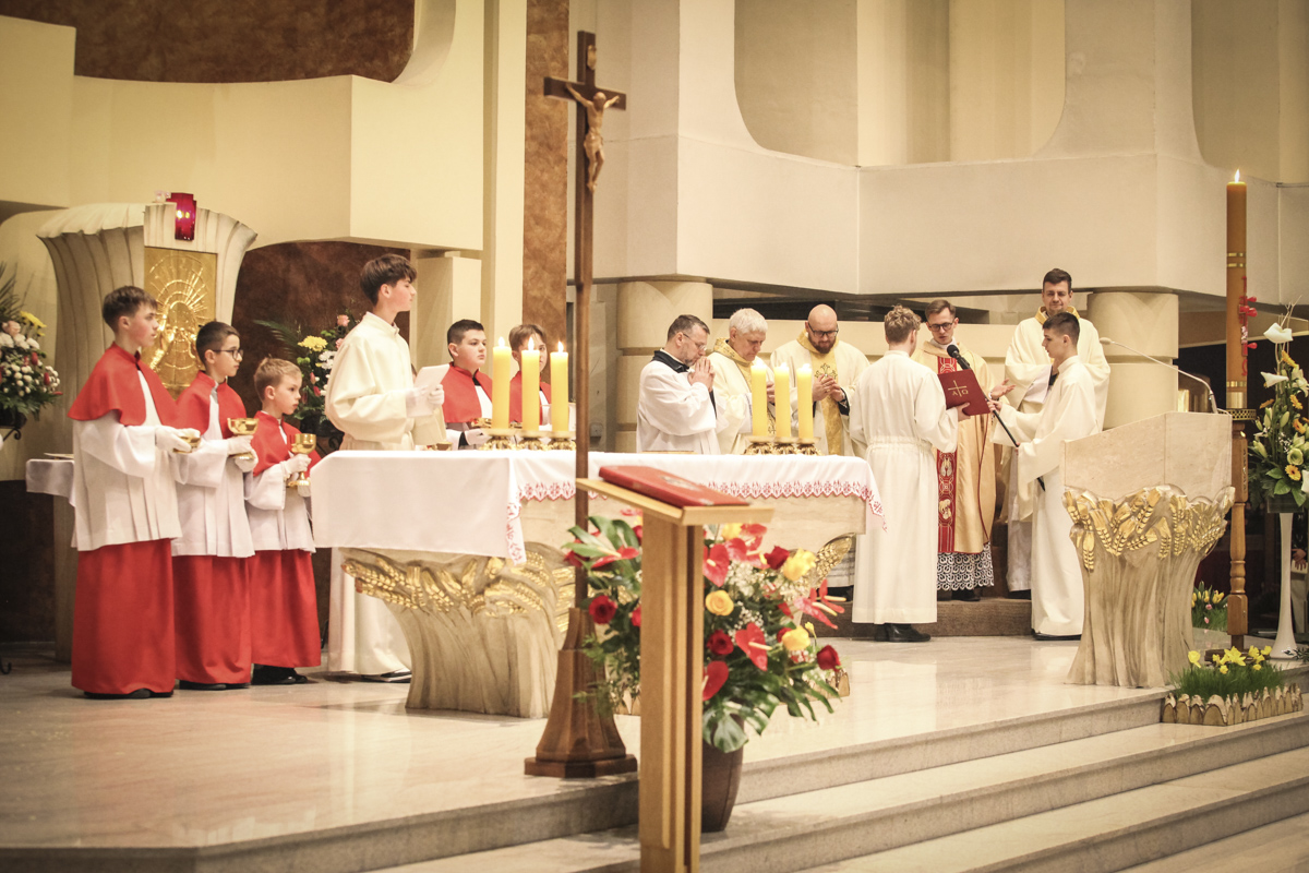 Po usłyszeniu Ewangelii oraz kazania następił obrzęd poświęcenia wody chrzcielnej, podczas którego cała wspólnota odnowiła swoje przyrzeczenia chrzcielne, deklarując wiarę i wyrzeczenie się zła. Uwieńczeniem tej wyjątkowej nocy była Liturgia Eucharystyczna, będąca pierwszą w pełni wielkanocną ucztą ofiarną. Posłuchaj fragmentów ze Mszy Świętej w Wigilię Paschalną.