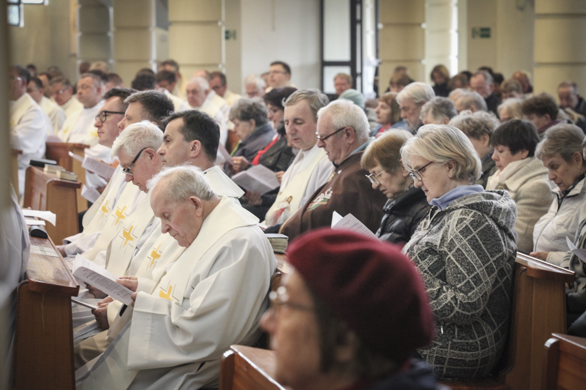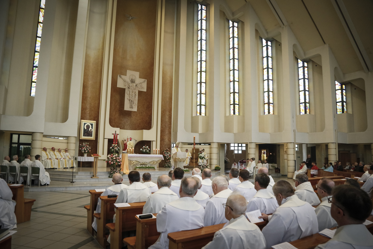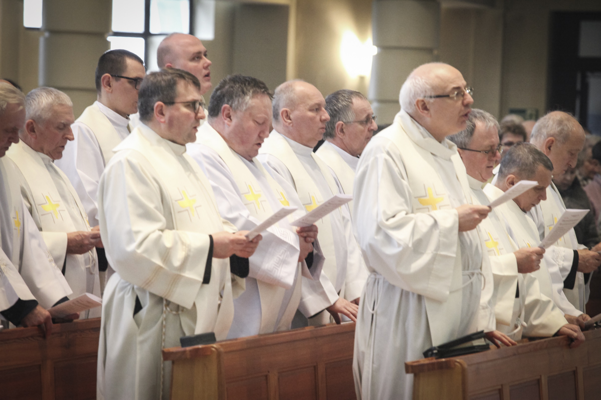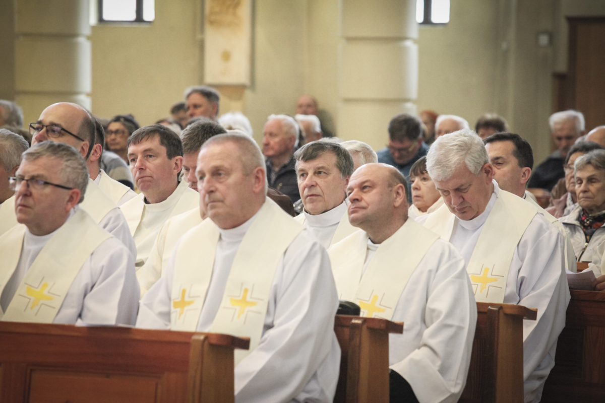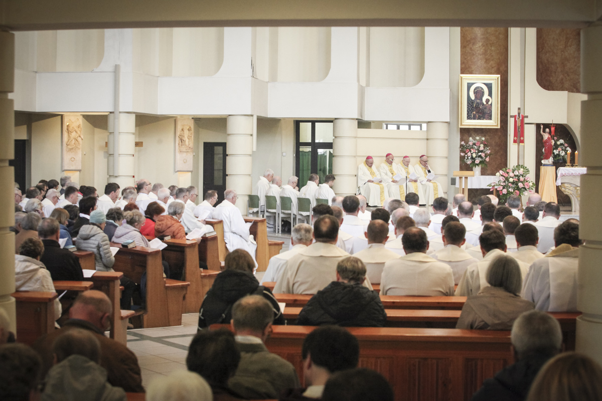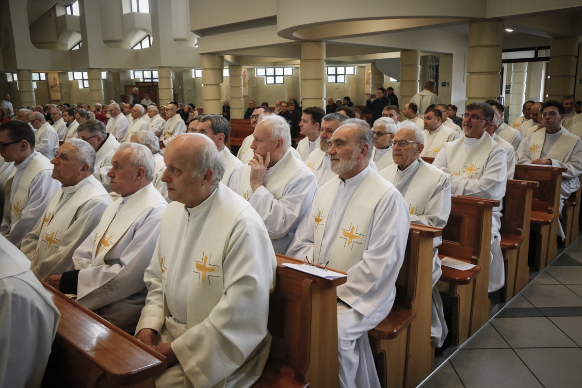 Centralnym punktem spotkania była uroczysta Eucharystia połączona z nieszporami. Liturgii przewodniczył bp Roman Pindel, biskup bielsko-żywiecki, który również wygłosił homilię. W modlitwie uczestniczyli biskup opolski Andrzej Czaja, biskupi pomocniczy: Rudolf Pierskała i Waldemar Musioł, biskup senior Paweł Stobrawa oraz licznie zgromadzeni kapłani diecezjalni i zakonni. Poniżej można wsłuchać się we fragmenty tej uroczystej Mszy Świętej.