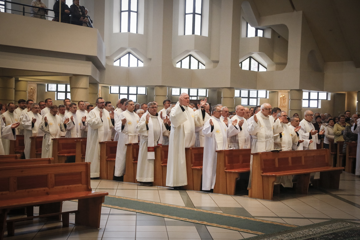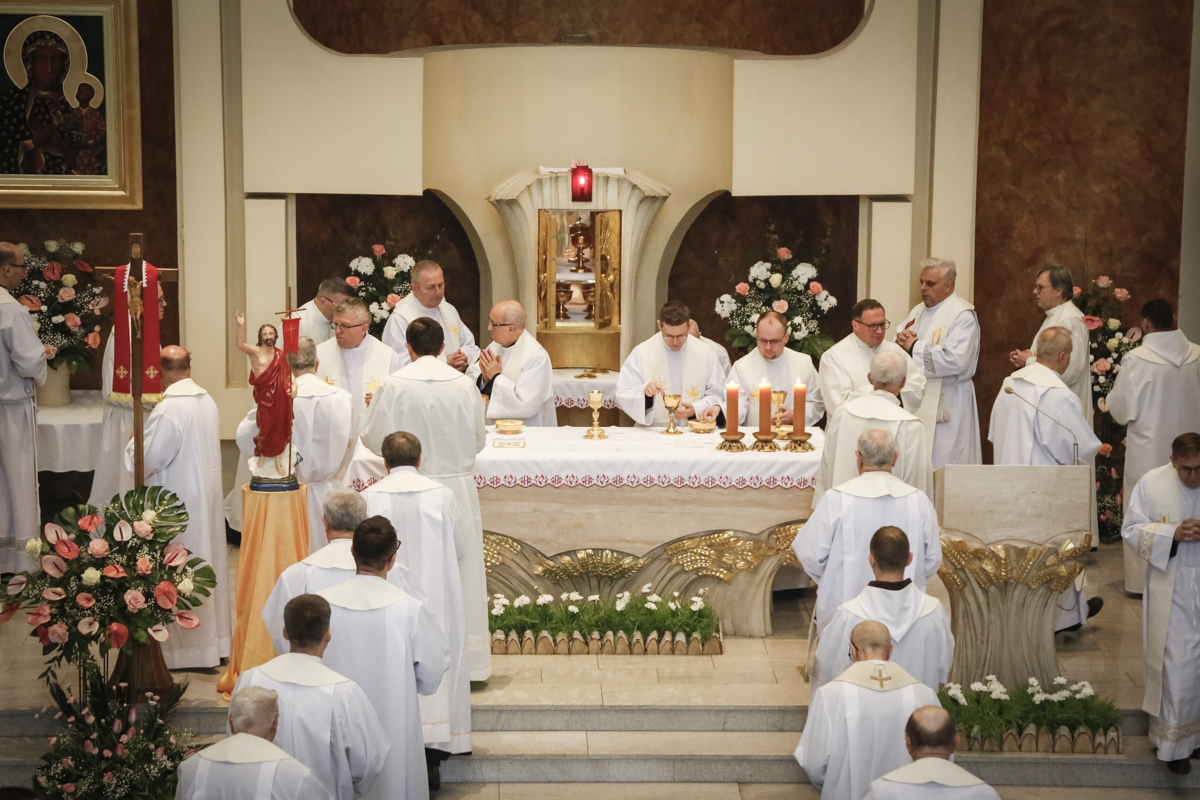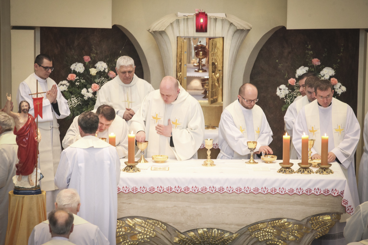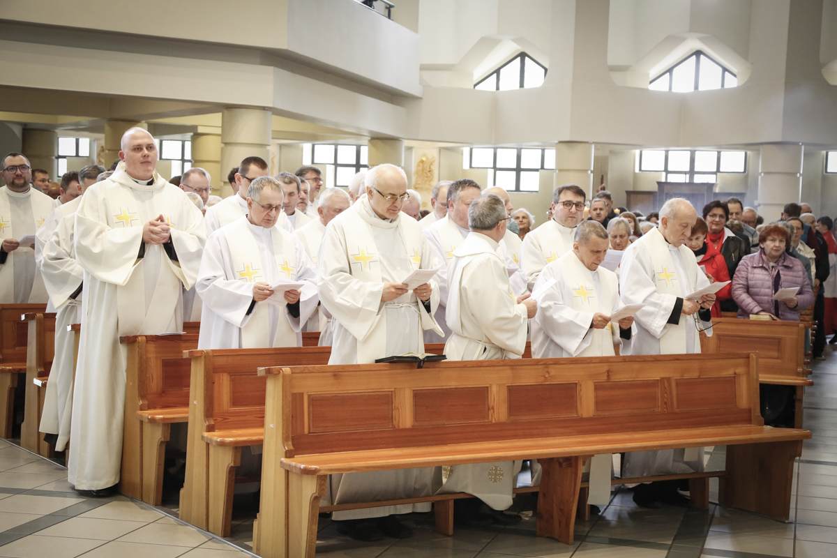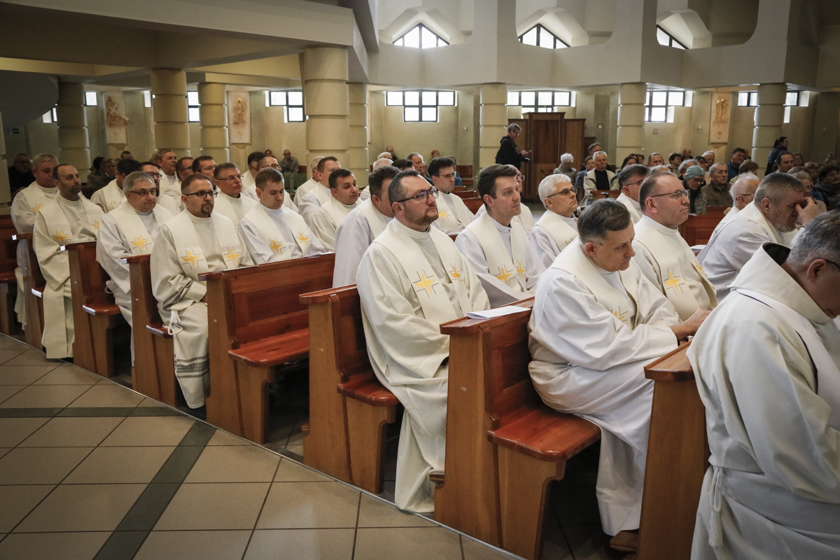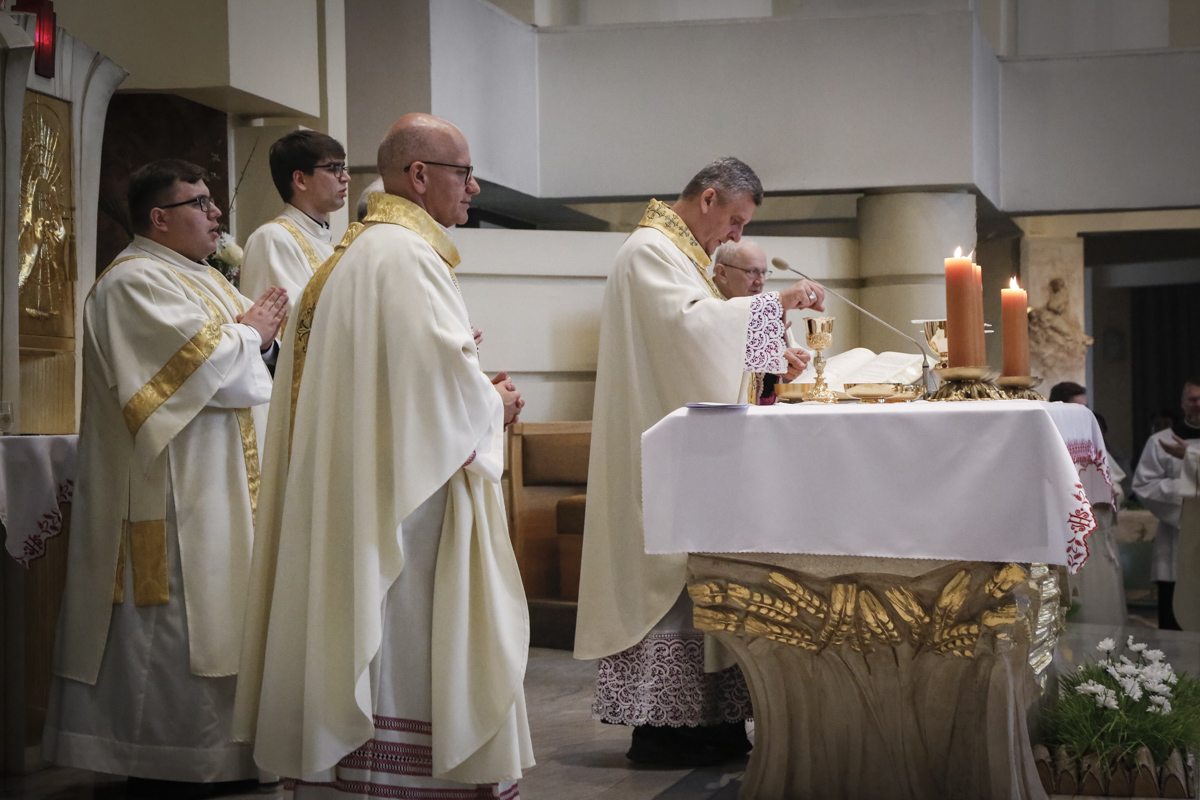 Centralnym punktem spotkania była uroczysta Eucharystia połączona z nieszporami. Liturgii przewodniczył bp Roman Pindel, biskup bielsko-żywiecki, który również wygłosił homilię. W modlitwie uczestniczyli biskup opolski Andrzej Czaja, biskupi pomocniczy: Rudolf Pierskała i Waldemar Musioł, biskup senior Paweł Stobrawa oraz licznie zgromadzeni kapłani diecezjalni i zakonni. Poniżej można wsłuchać się we fragmenty tej uroczystej Mszy Świętej.