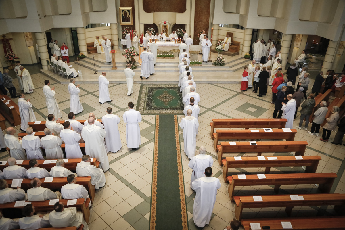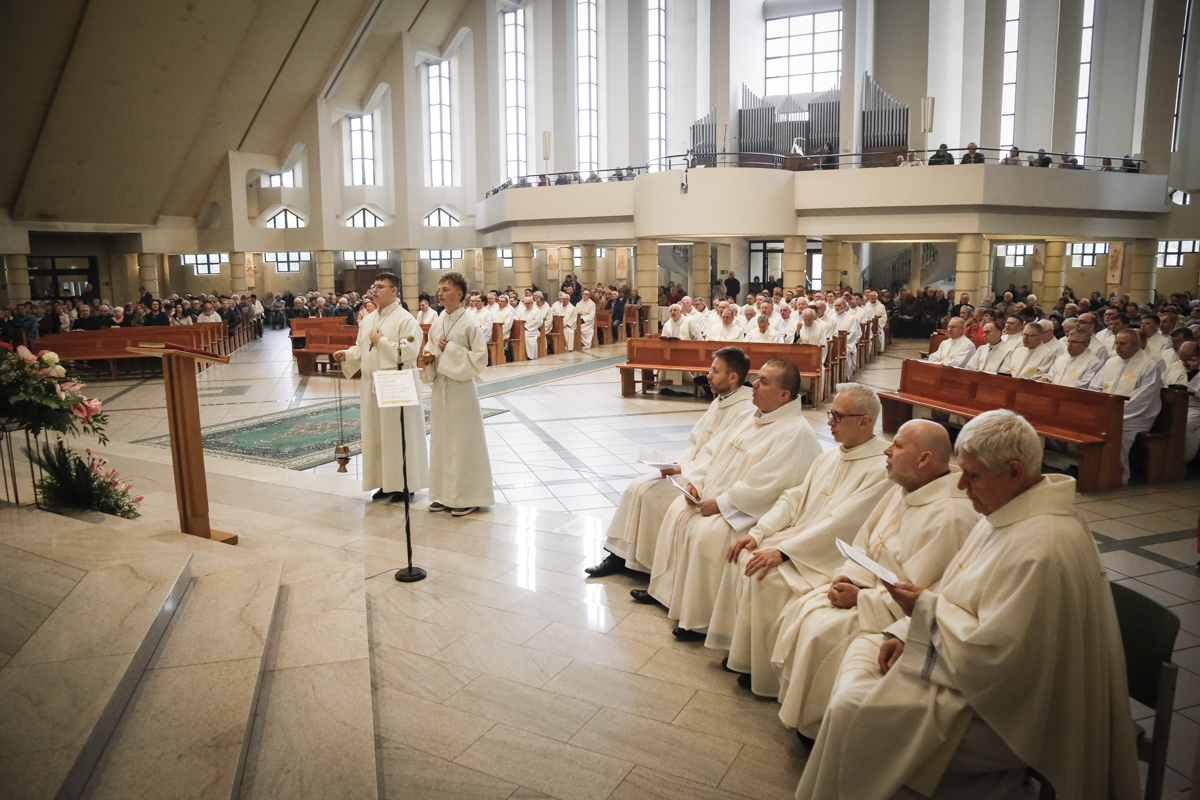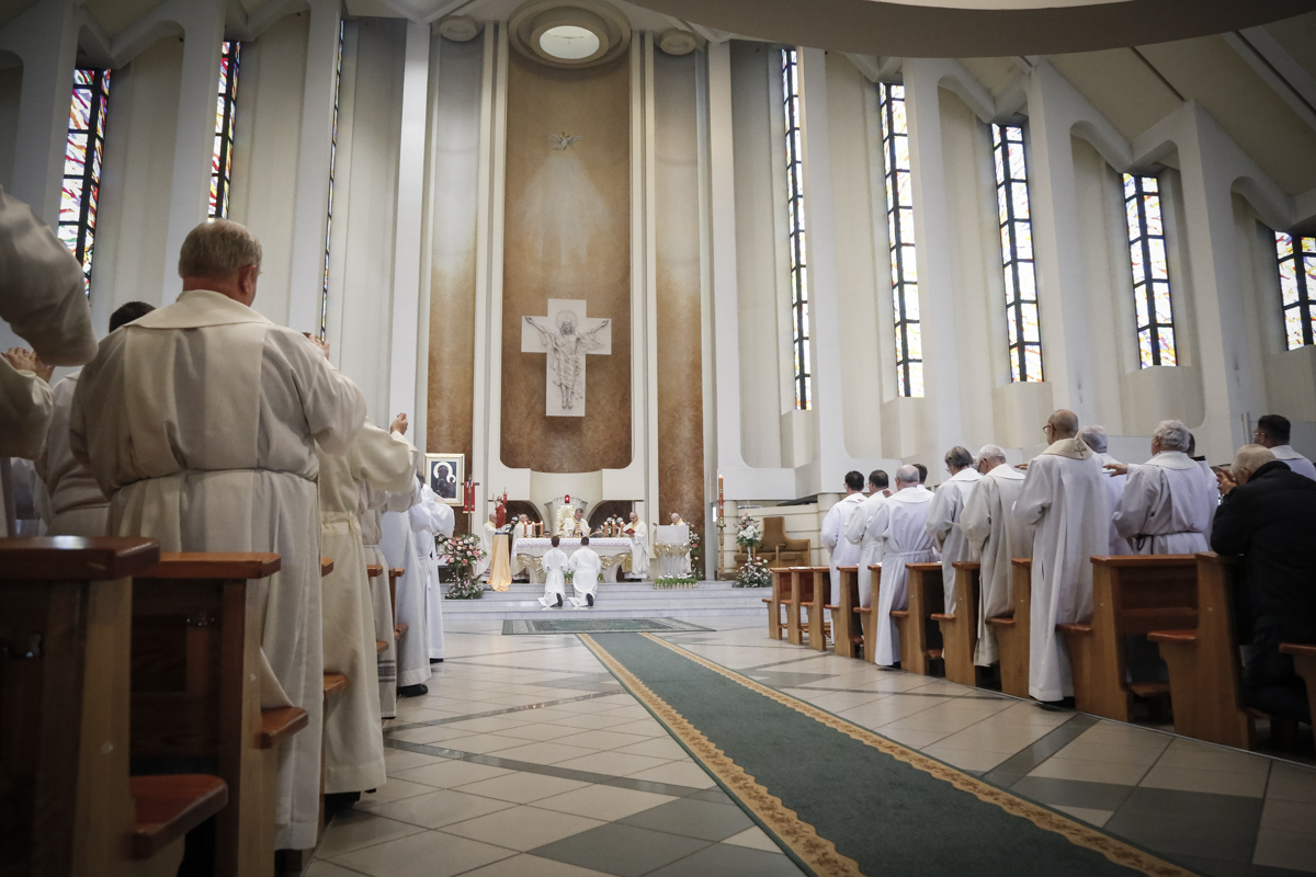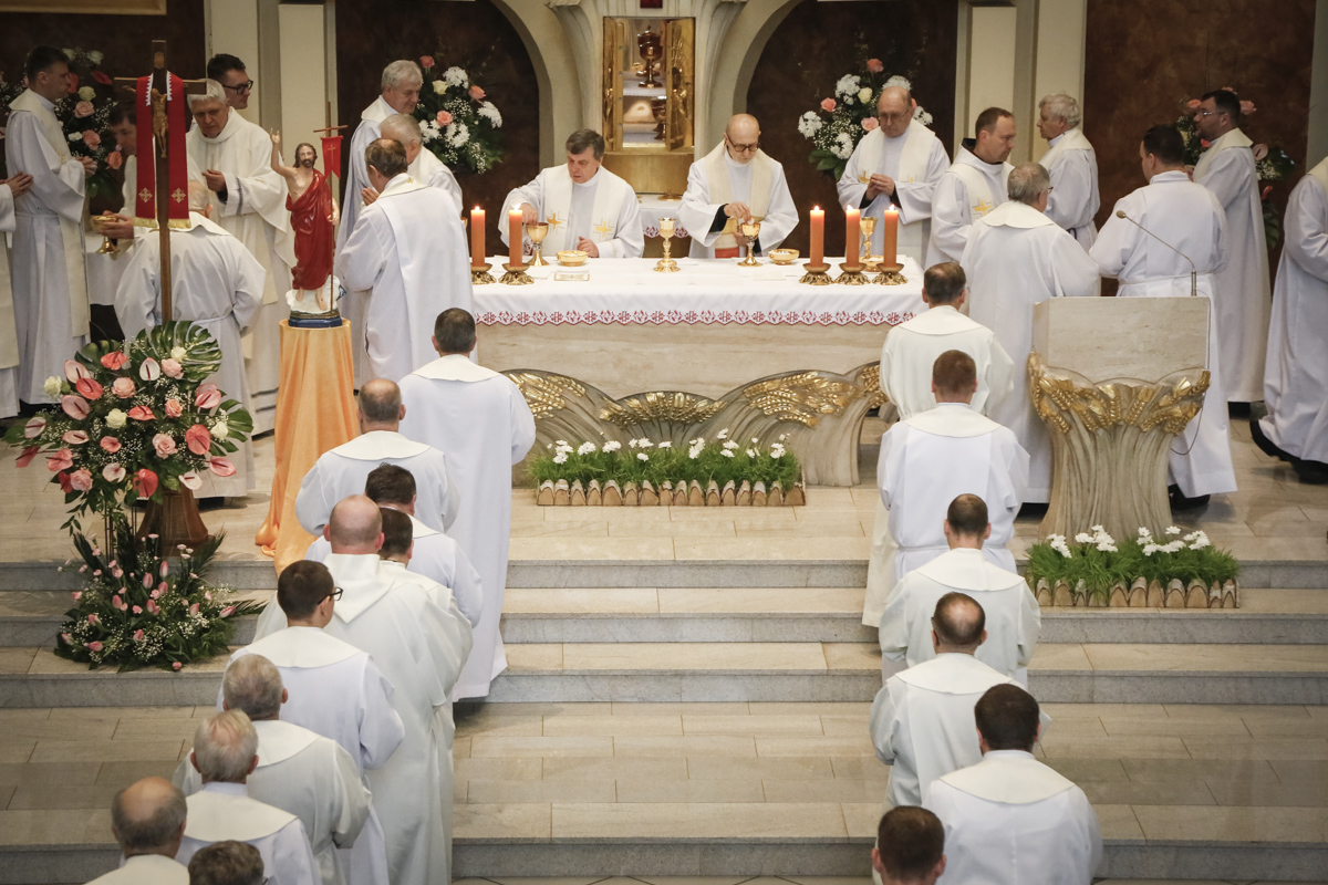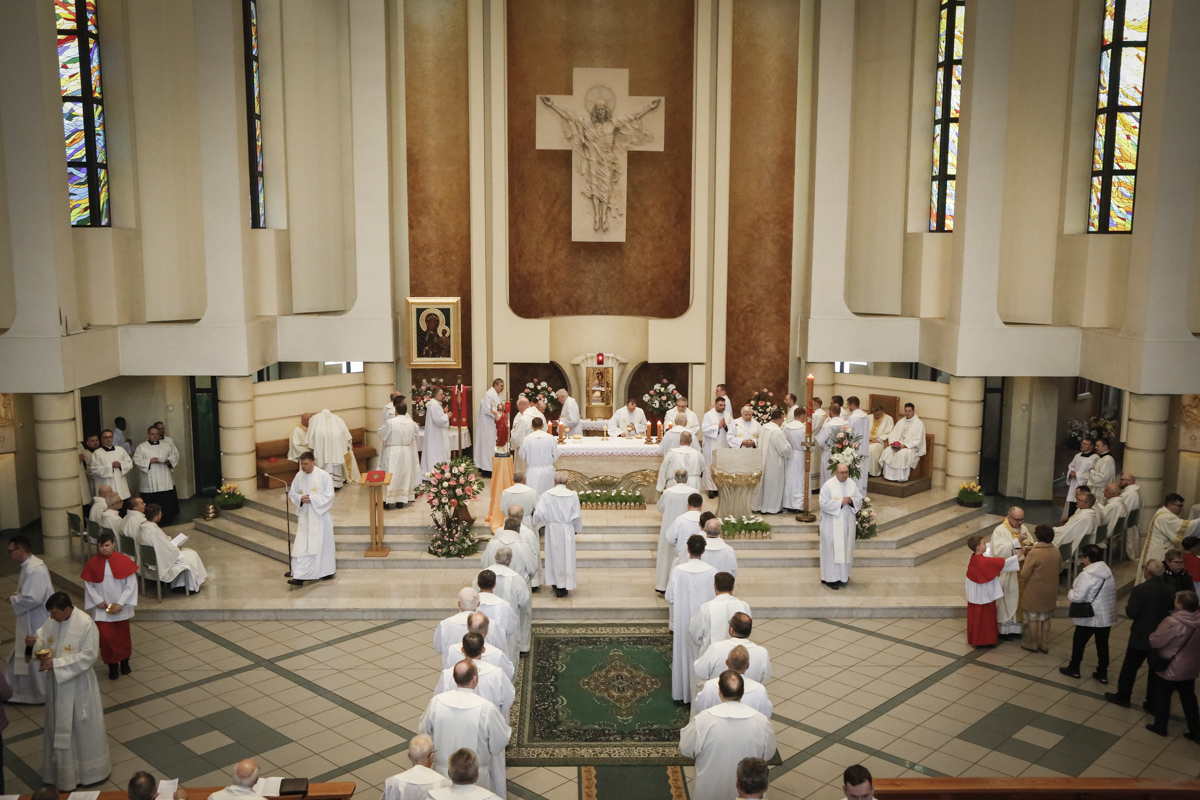 Centralnym punktem spotkania była uroczysta Eucharystia połączona z nieszporami. Liturgii przewodniczył bp Roman Pindel, biskup bielsko-żywiecki, który również wygłosił homilię. W modlitwie uczestniczyli biskup opolski Andrzej Czaja, biskupi pomocniczy: Rudolf Pierskała i Waldemar Musioł, biskup senior Paweł Stobrawa oraz licznie zgromadzeni kapłani diecezjalni i zakonni. Poniżej można wsłuchać się we fragmenty tej uroczystej Mszy Świętej.