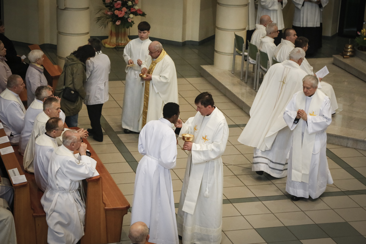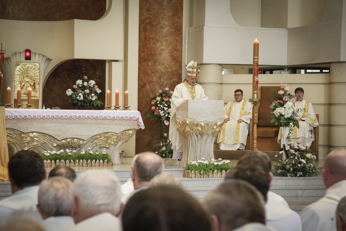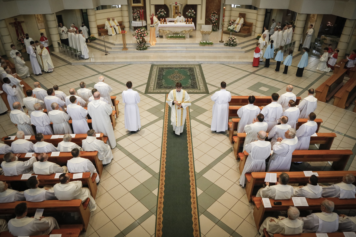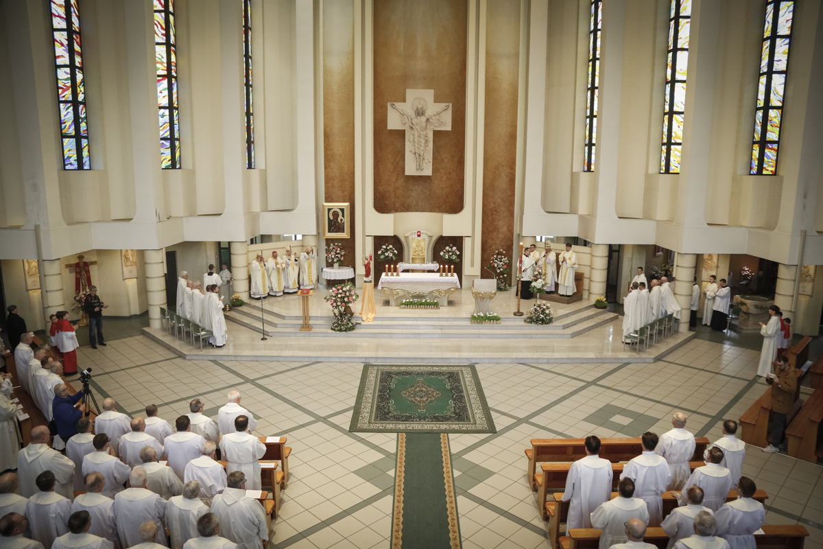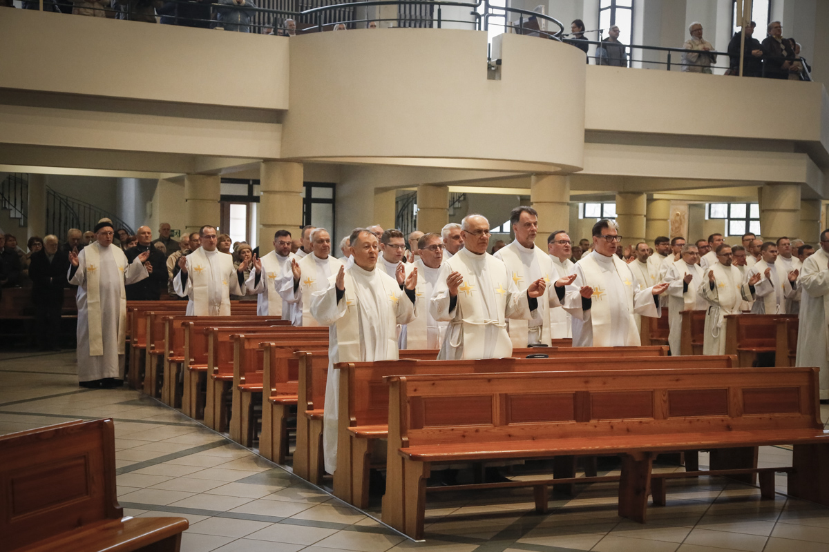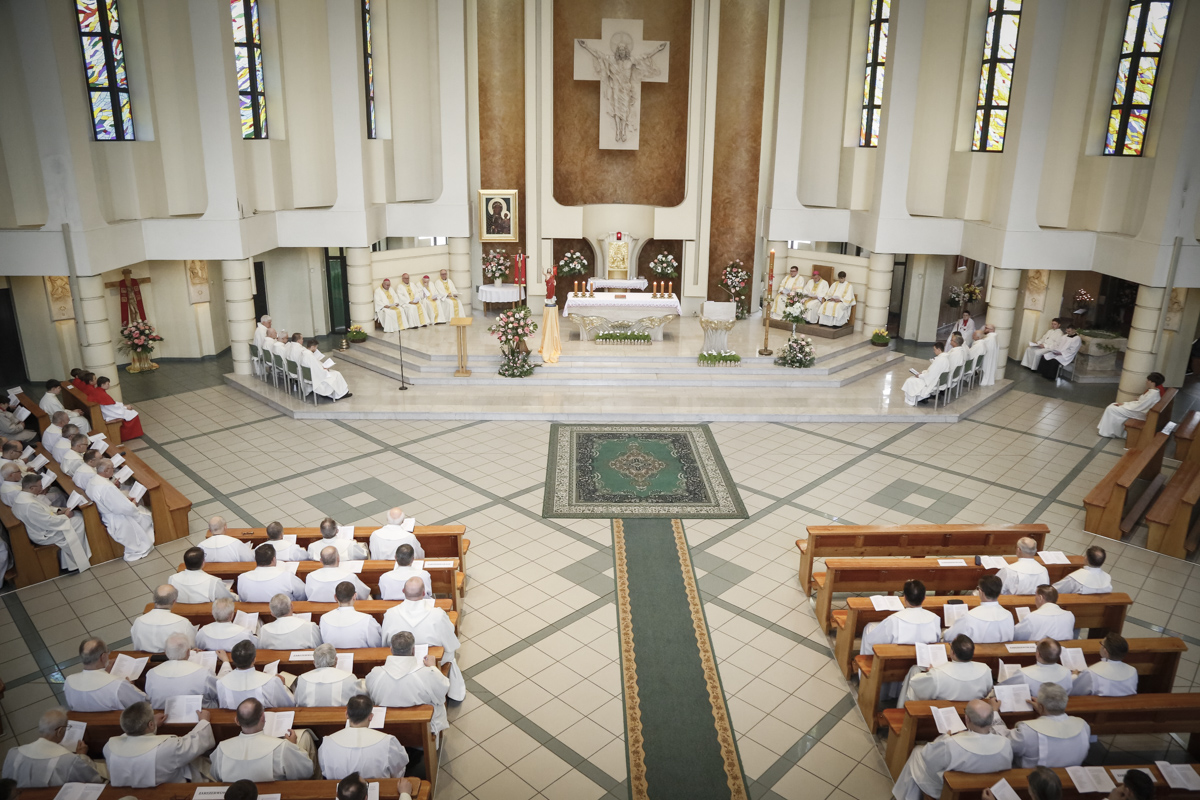 Centralnym punktem spotkania była uroczysta Eucharystia połączona z nieszporami. Liturgii przewodniczył bp Roman Pindel, biskup bielsko-żywiecki, który również wygłosił homilię. W modlitwie uczestniczyli biskup opolski Andrzej Czaja, biskupi pomocniczy: Rudolf Pierskała i Waldemar Musioł, biskup senior Paweł Stobrawa oraz licznie zgromadzeni kapłani diecezjalni i zakonni. Poniżej można wsłuchać się we fragmenty tej uroczystej Mszy Świętej.