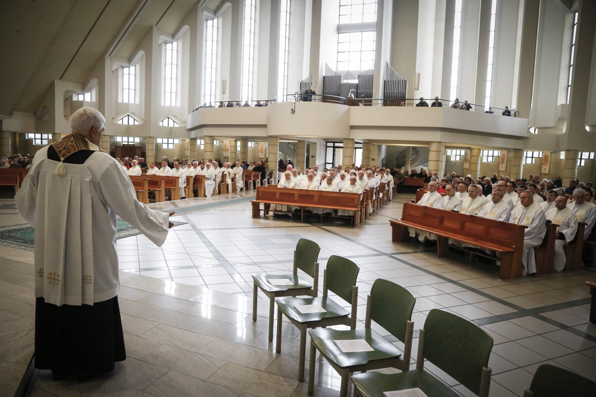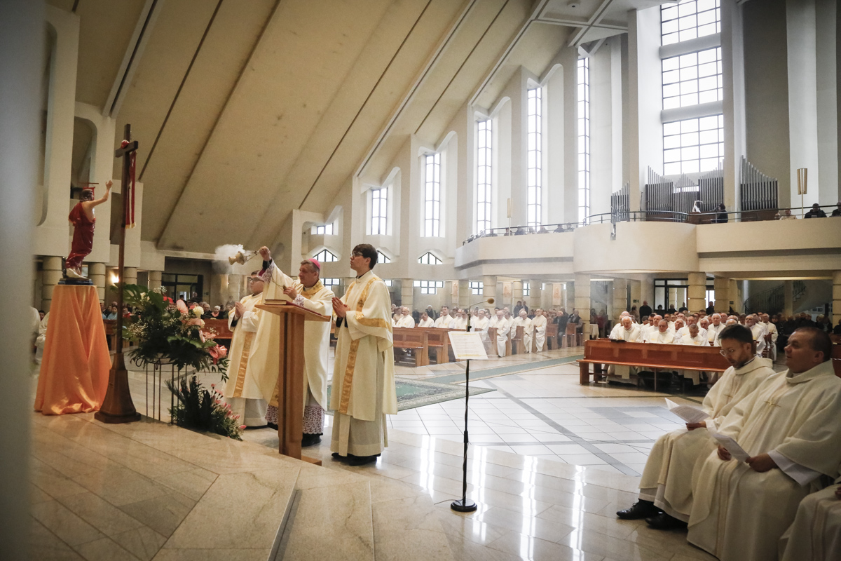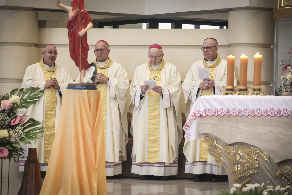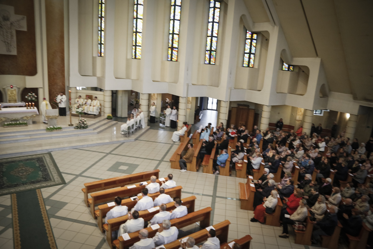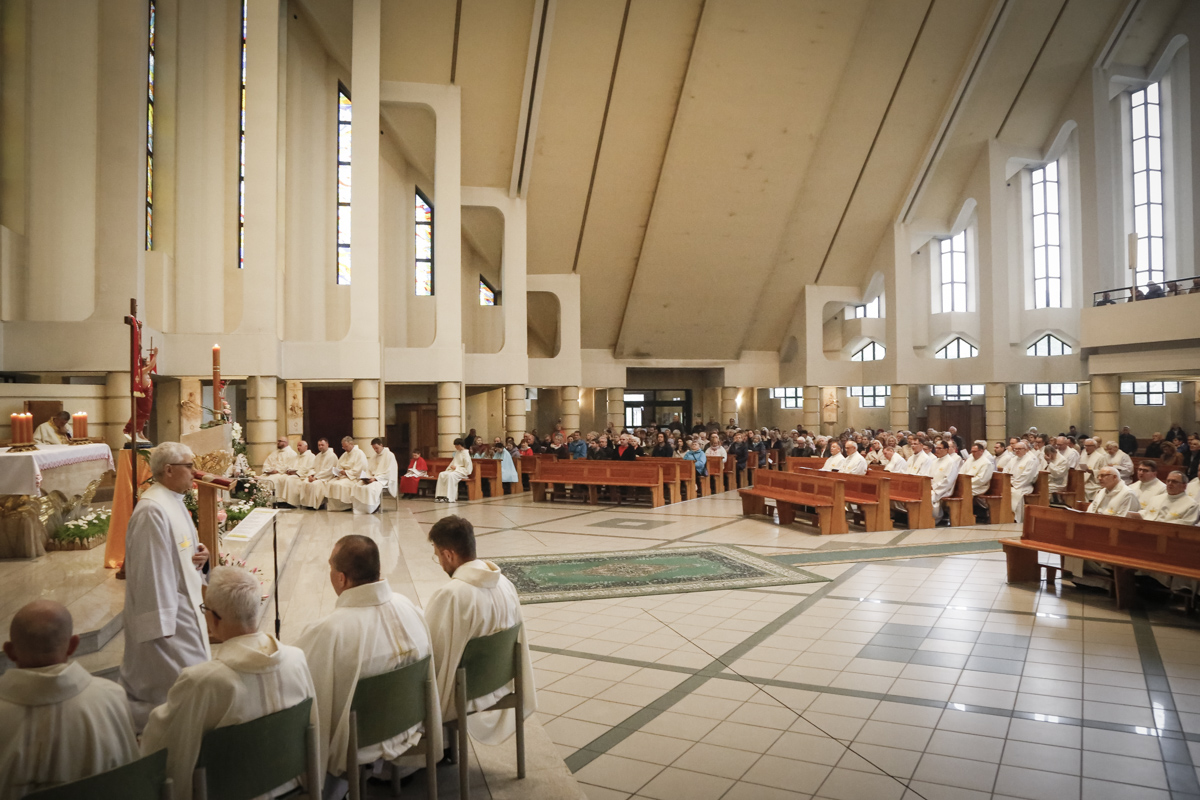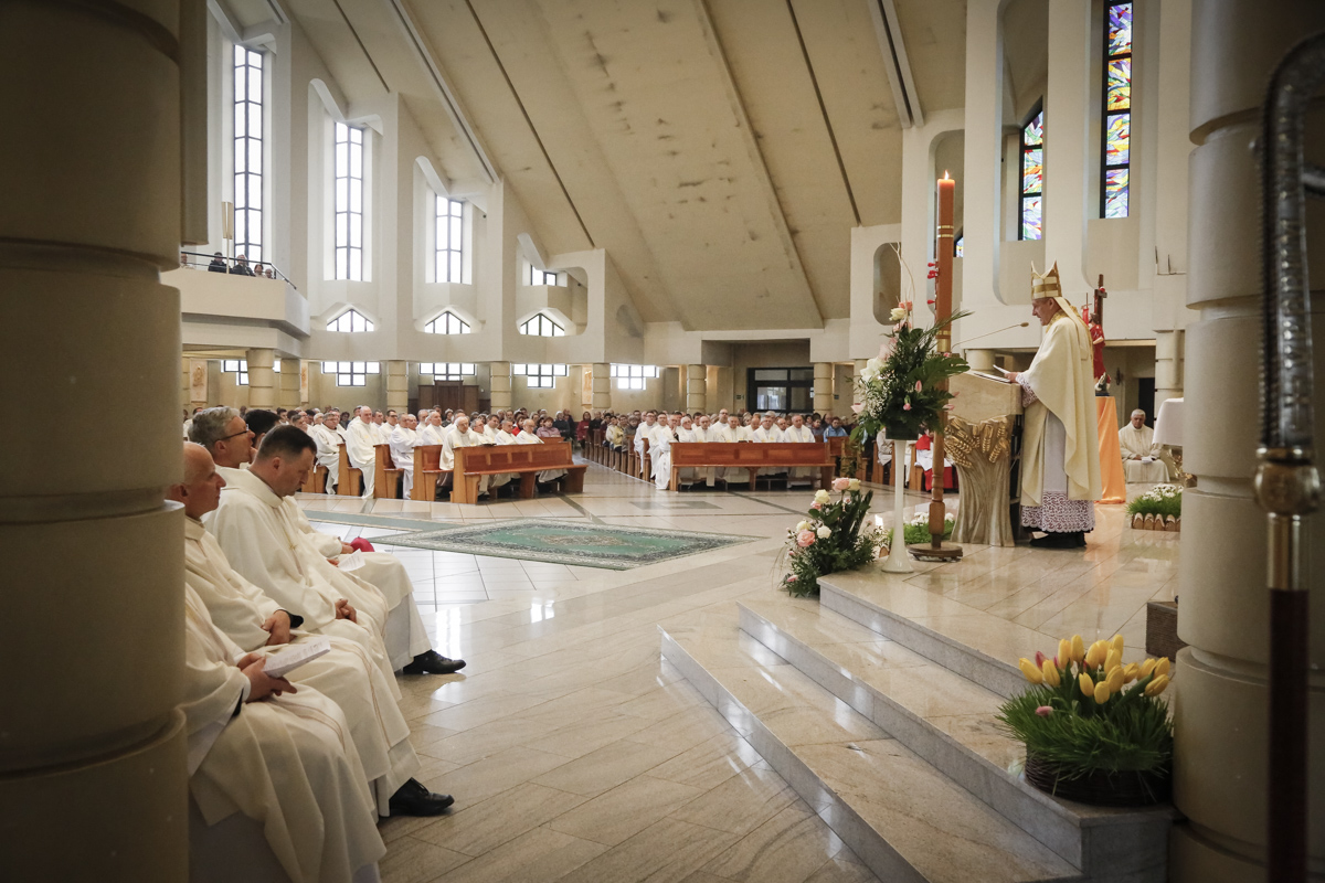 Centralnym punktem spotkania była uroczysta Eucharystia połączona z nieszporami. Liturgii przewodniczył bp Roman Pindel, biskup bielsko-żywiecki, który również wygłosił homilię. W modlitwie uczestniczyli biskup opolski Andrzej Czaja, biskupi pomocniczy: Rudolf Pierskała i Waldemar Musioł, biskup senior Paweł Stobrawa oraz licznie zgromadzeni kapłani diecezjalni i zakonni. Poniżej można wsłuchać się we fragmenty tej uroczystej Mszy Świętej.